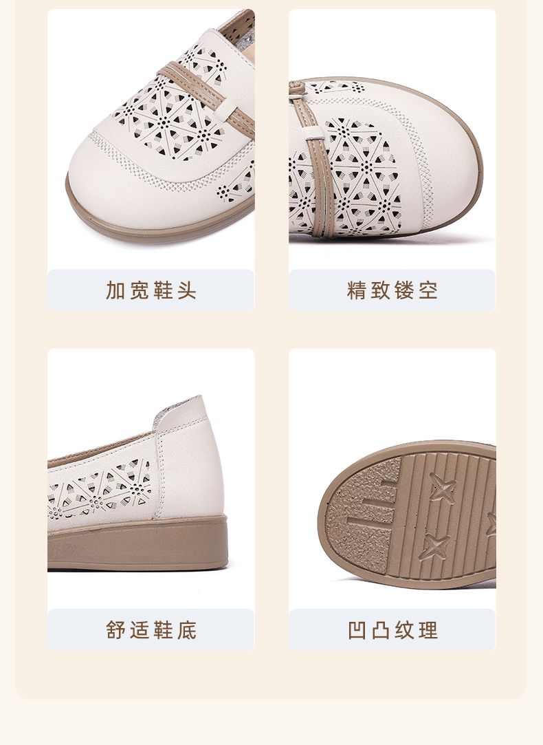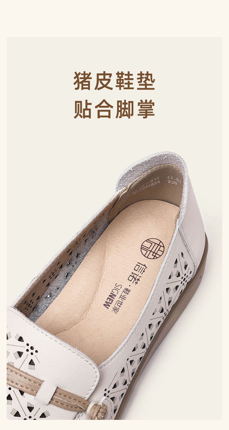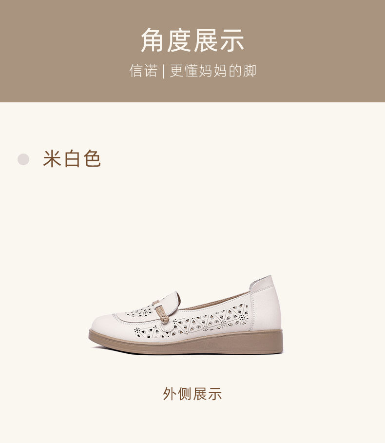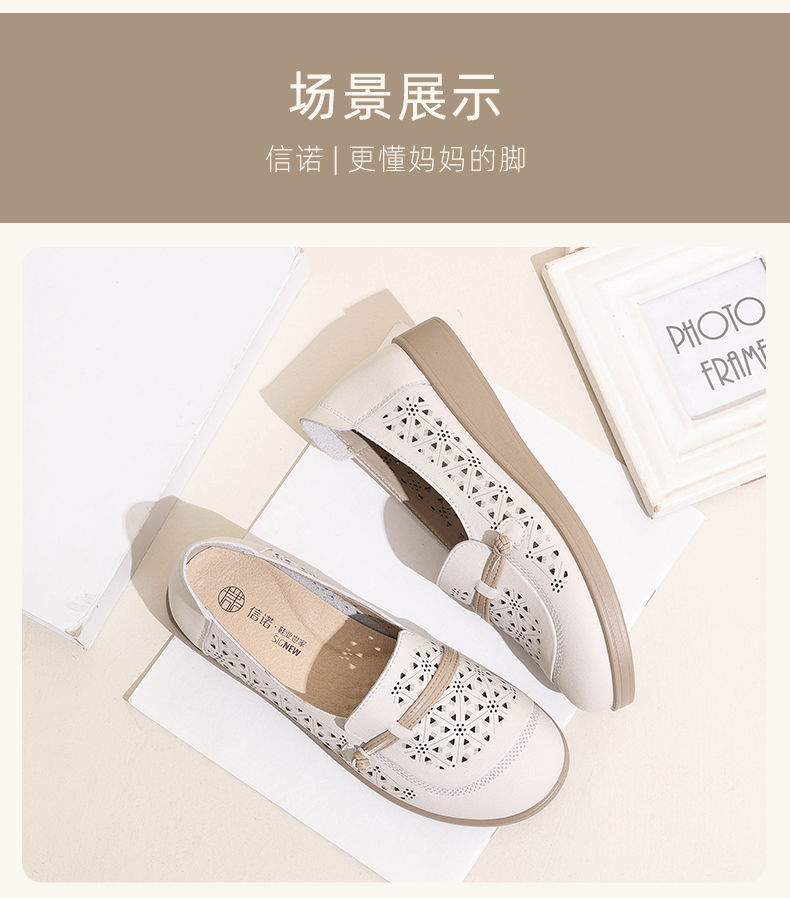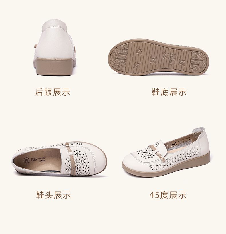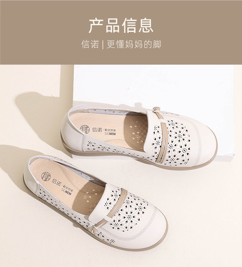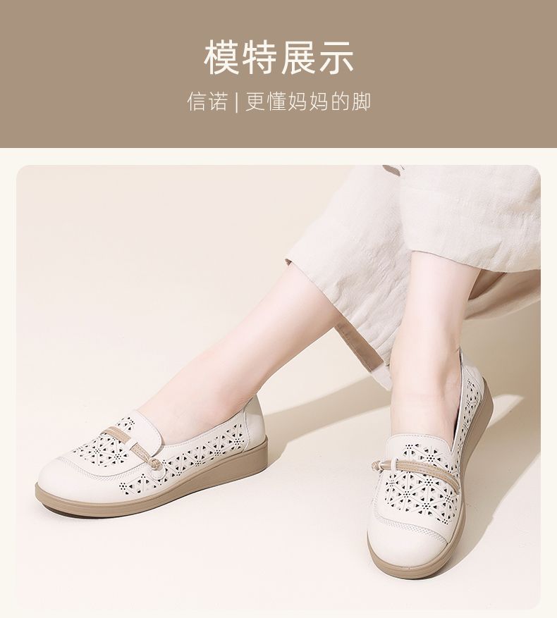信诺 真皮舒适女鞋 2024新款夏季妈妈鞋子凉鞋软底中老年镂空单鞋24C6801-017