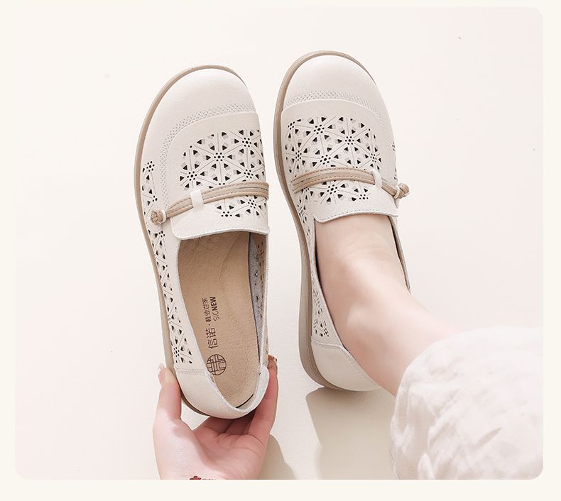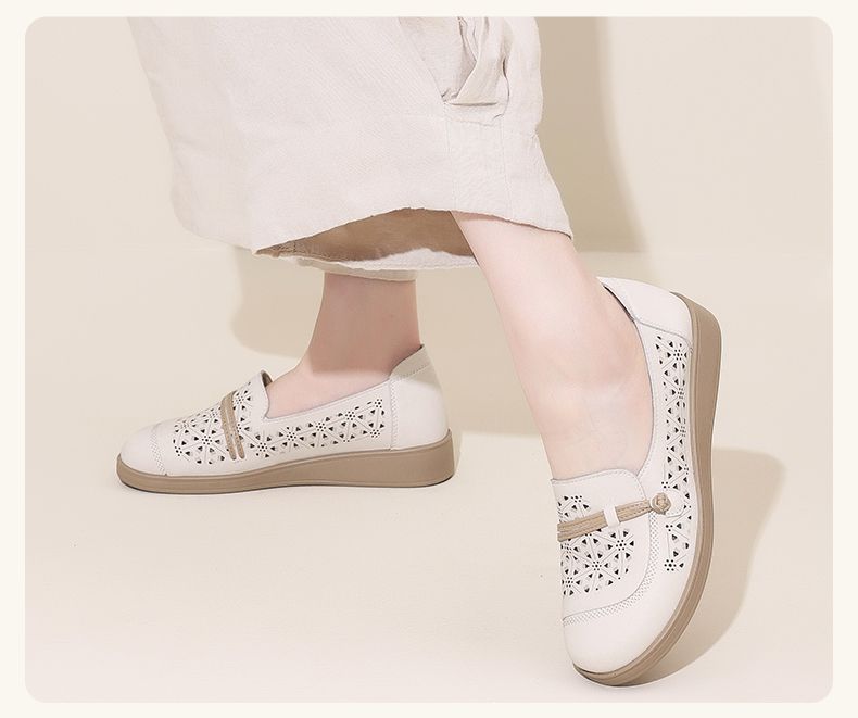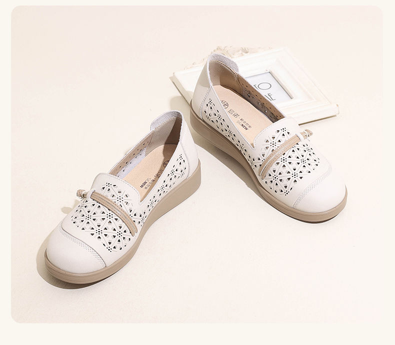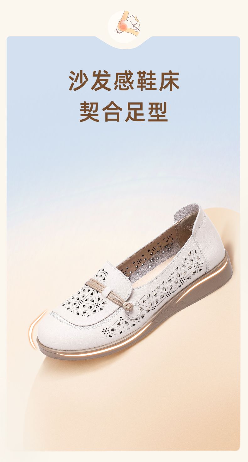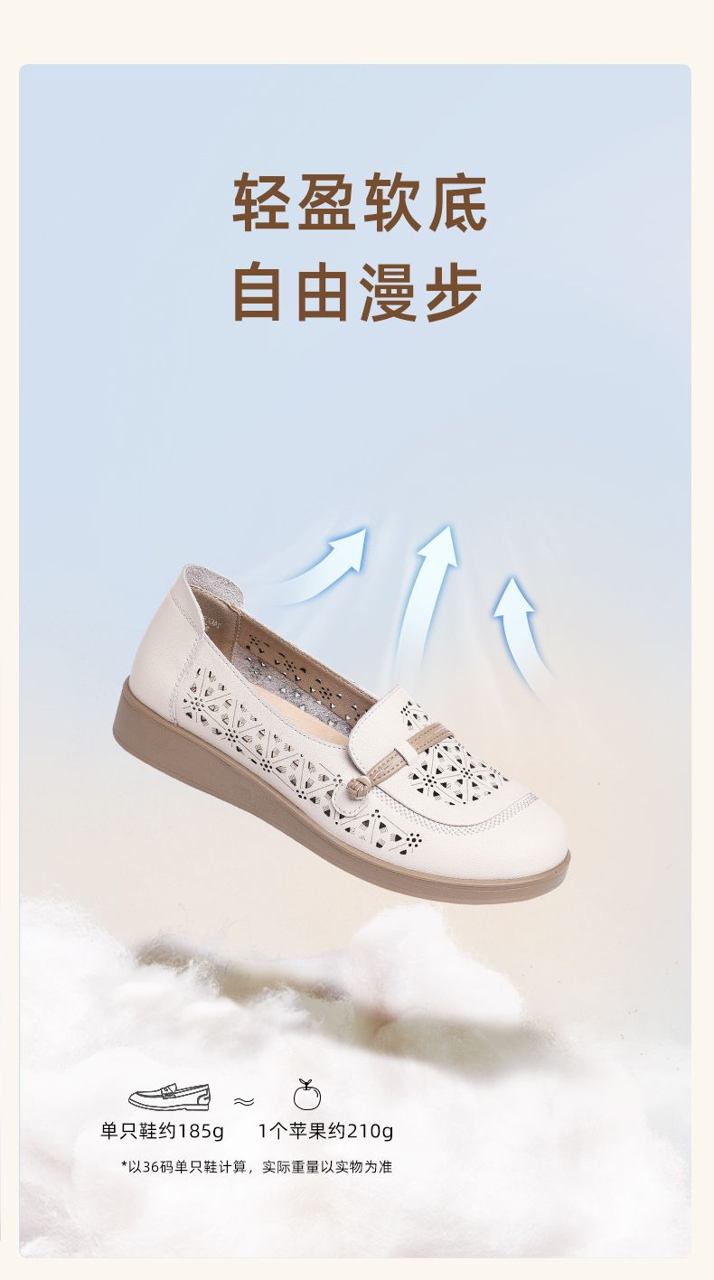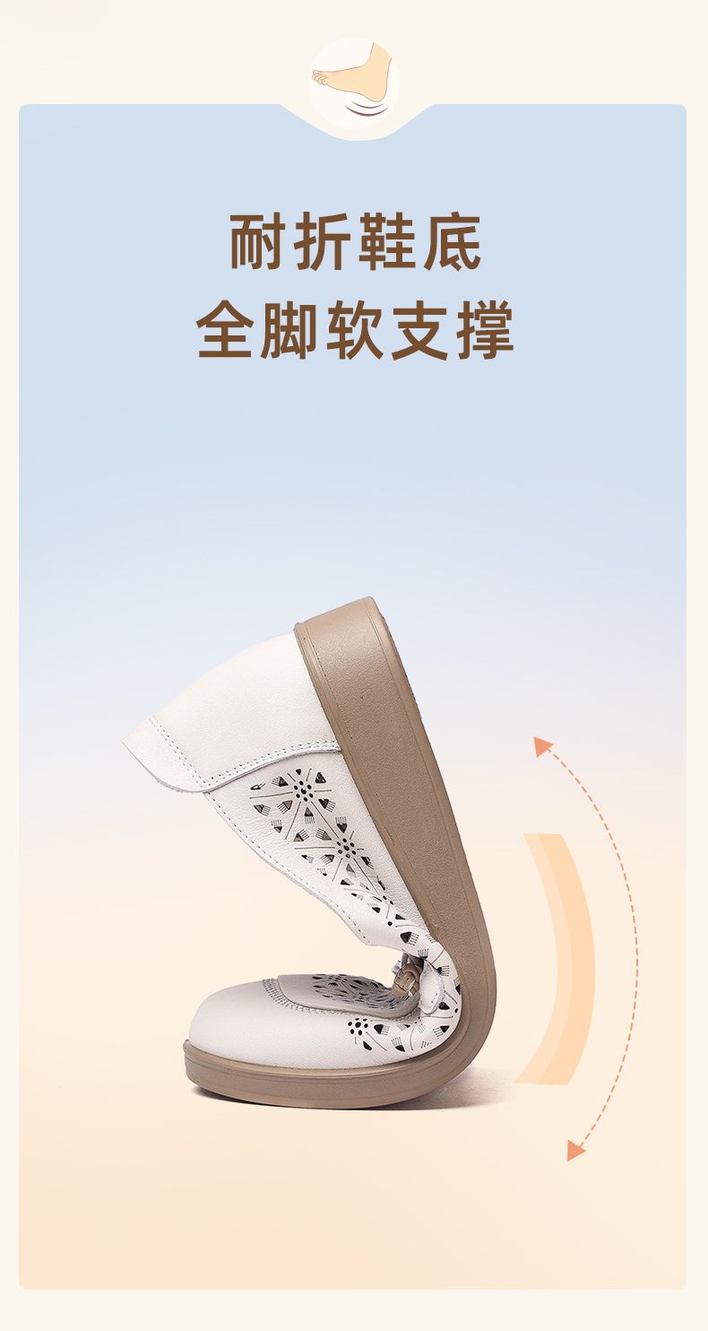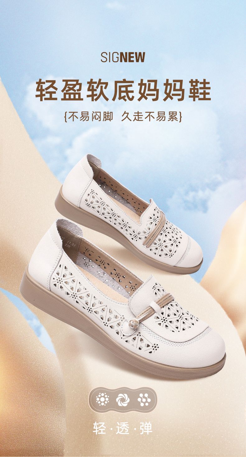 信诺 真皮舒适女鞋 2024新款夏季妈妈鞋子凉鞋软底中老年镂空单鞋24C6801-017