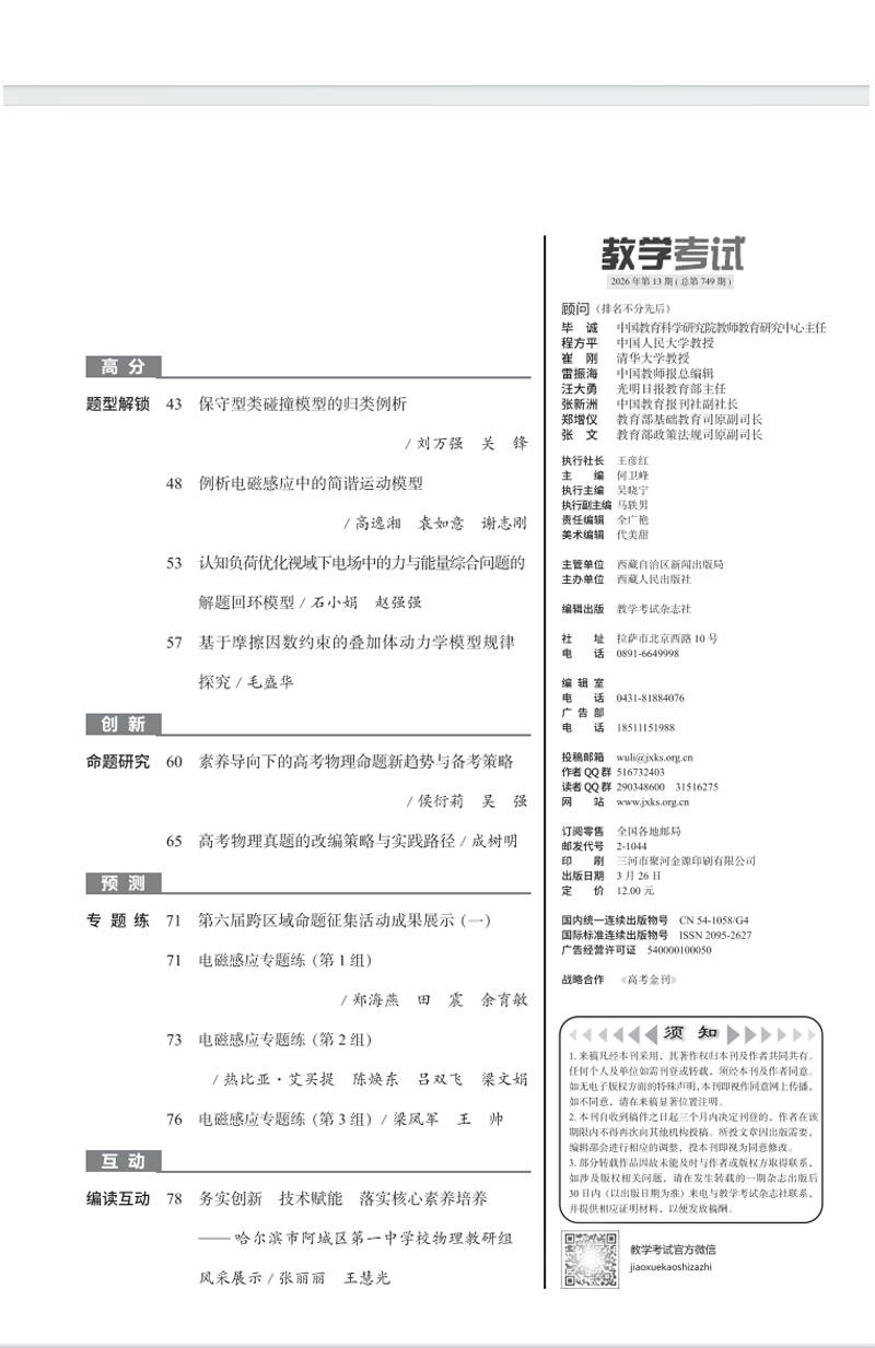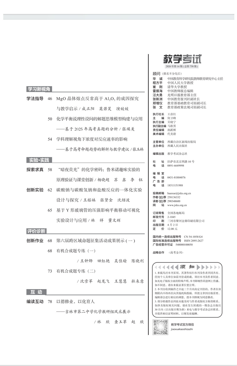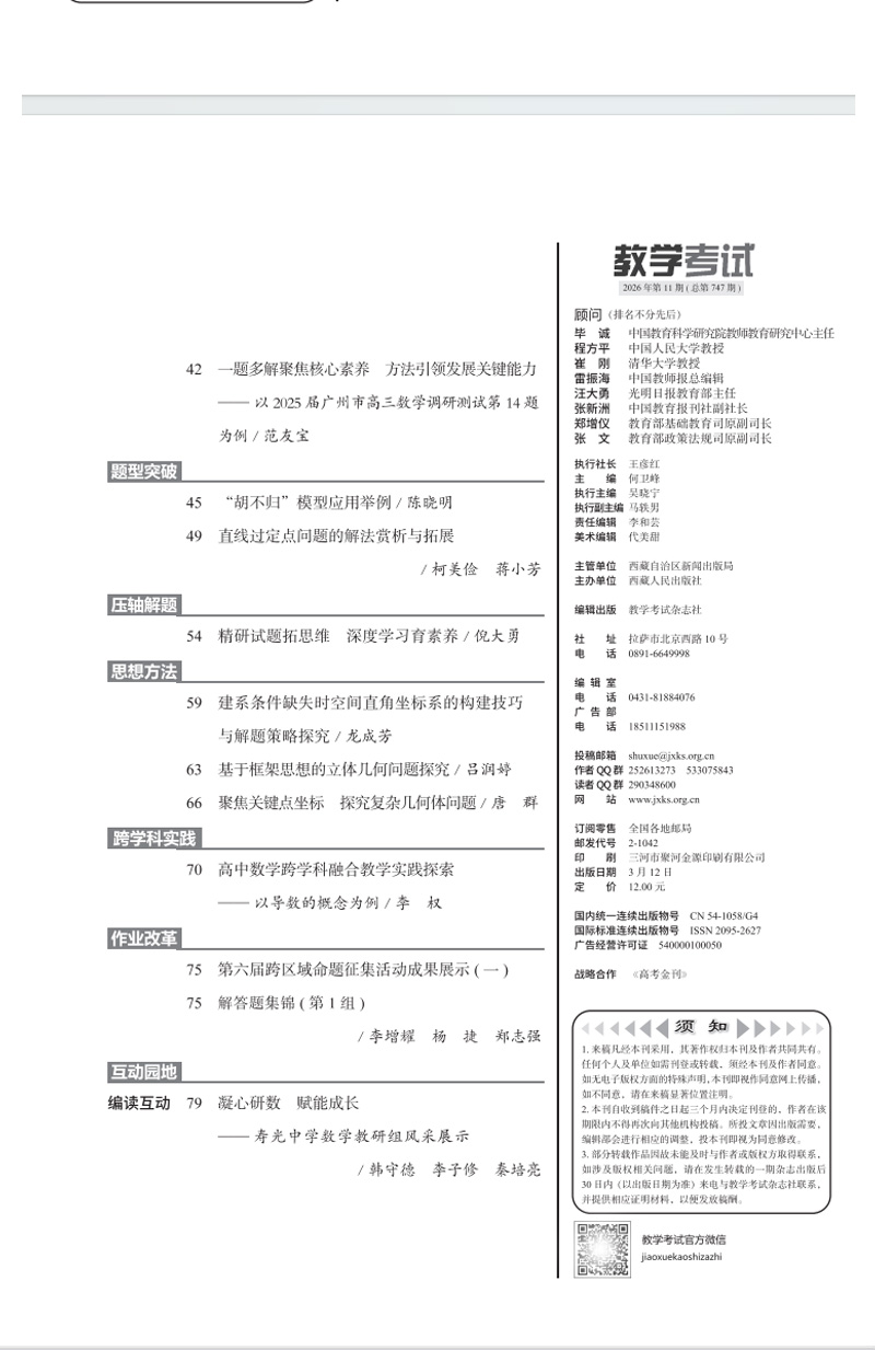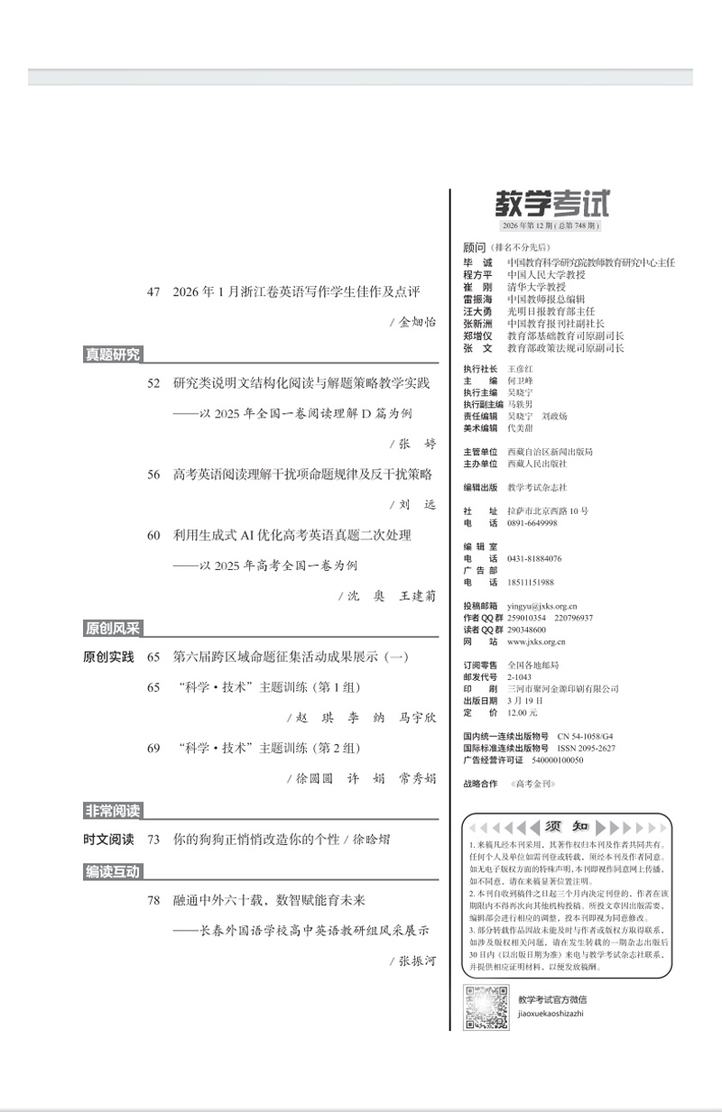 2026教学考试杂志第2期 语文 数学 英语 物理 化学 生物 政治 历史 地理