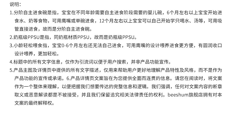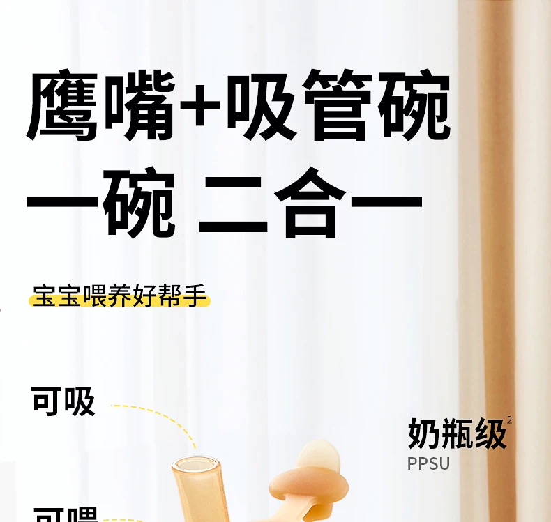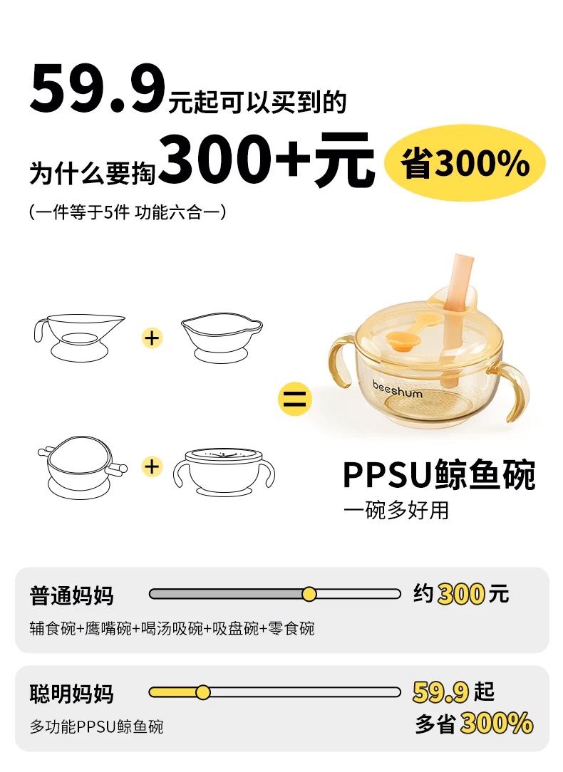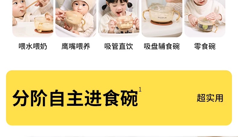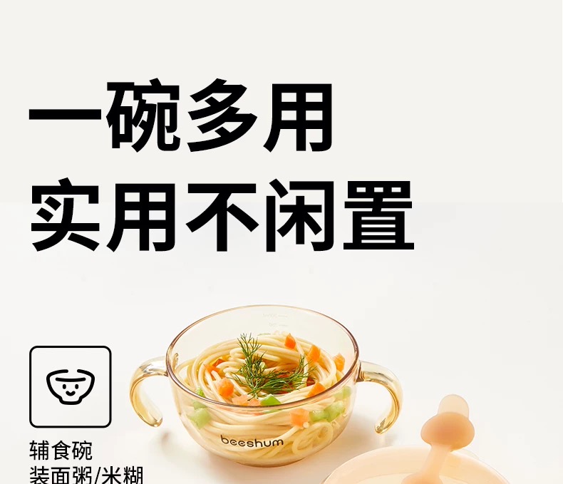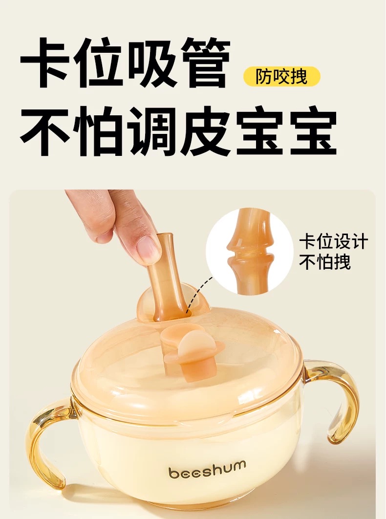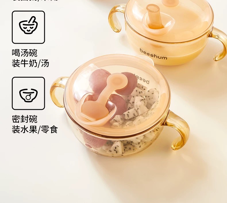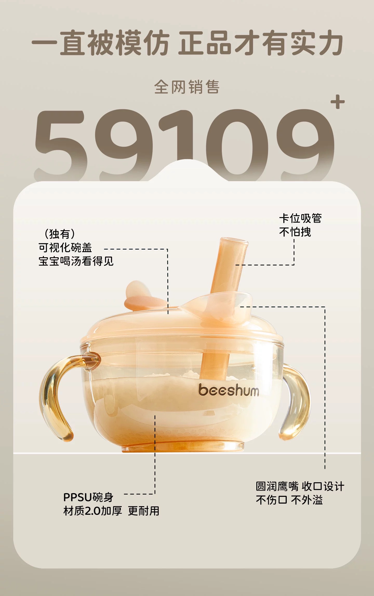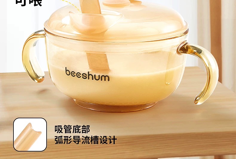 beeshum婴儿辅食碗米糊杯宝宝喝汤吸管碗婴幼儿喝粥PPSU专用套装