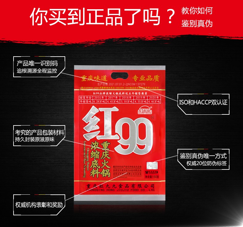 150g 红99 重庆特产红九九牛油火锅底料串串香锅麻辣烫川菜调料