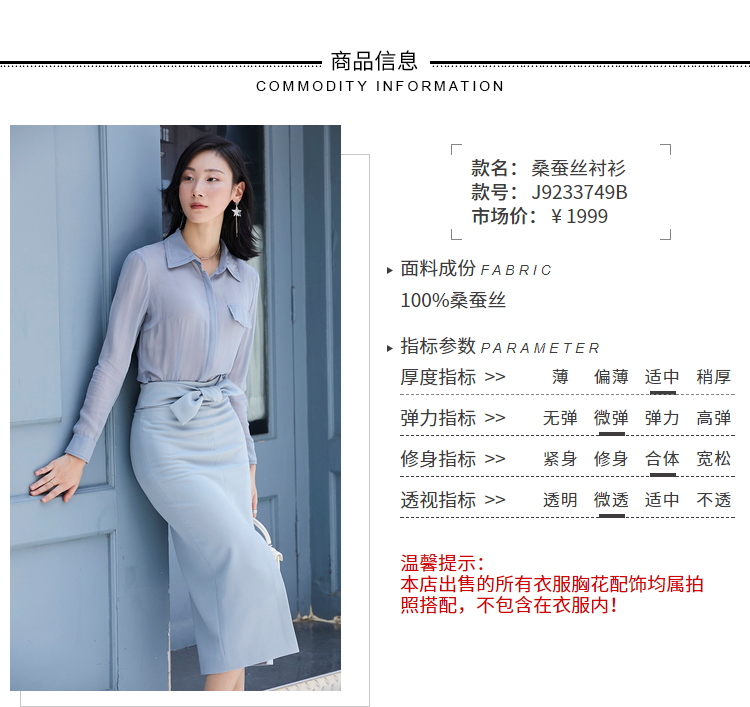 “呼吸蓝天”100%桑蚕丝衬衫 透气 飘逸 轻柔 J9233749A(四季可穿)颈袖添香