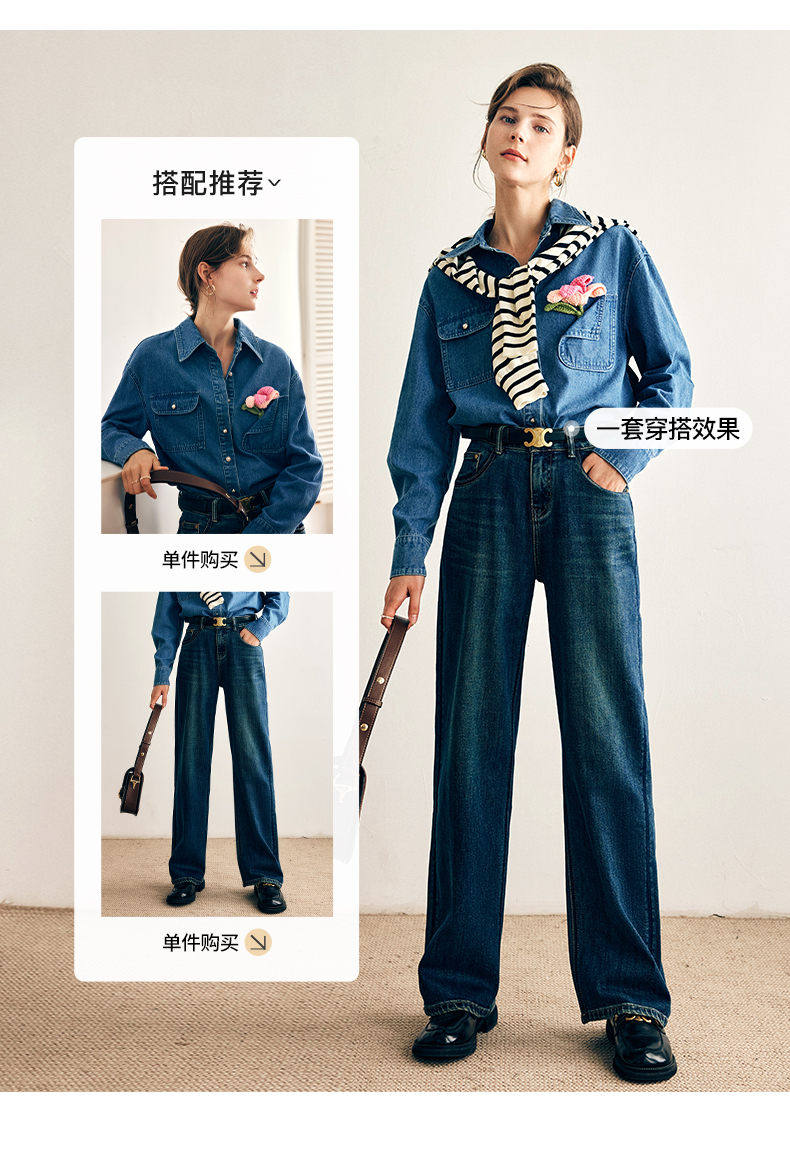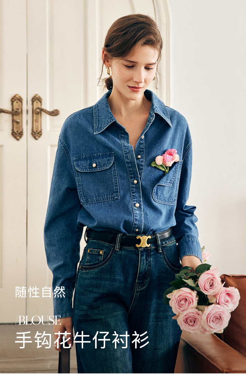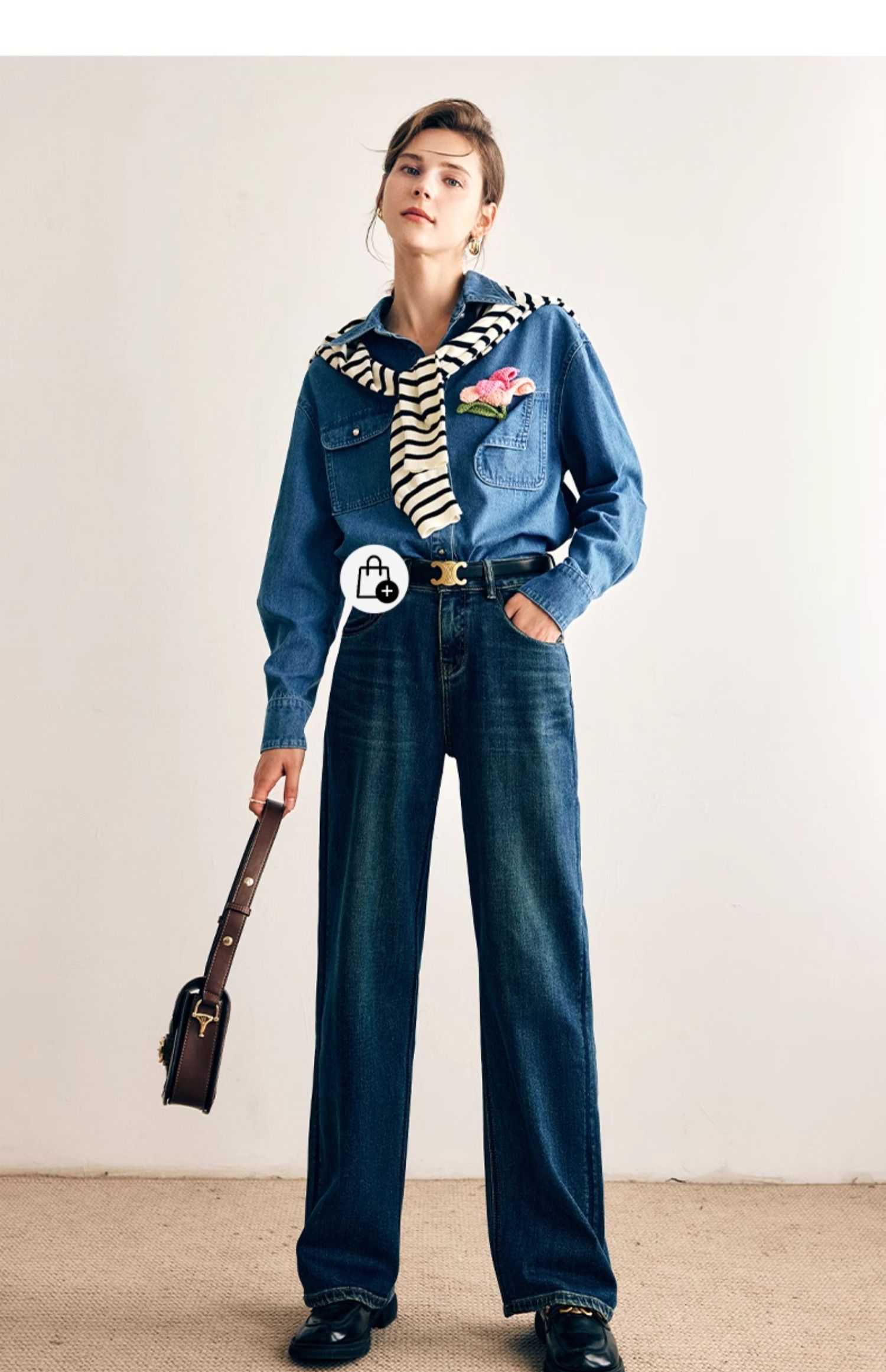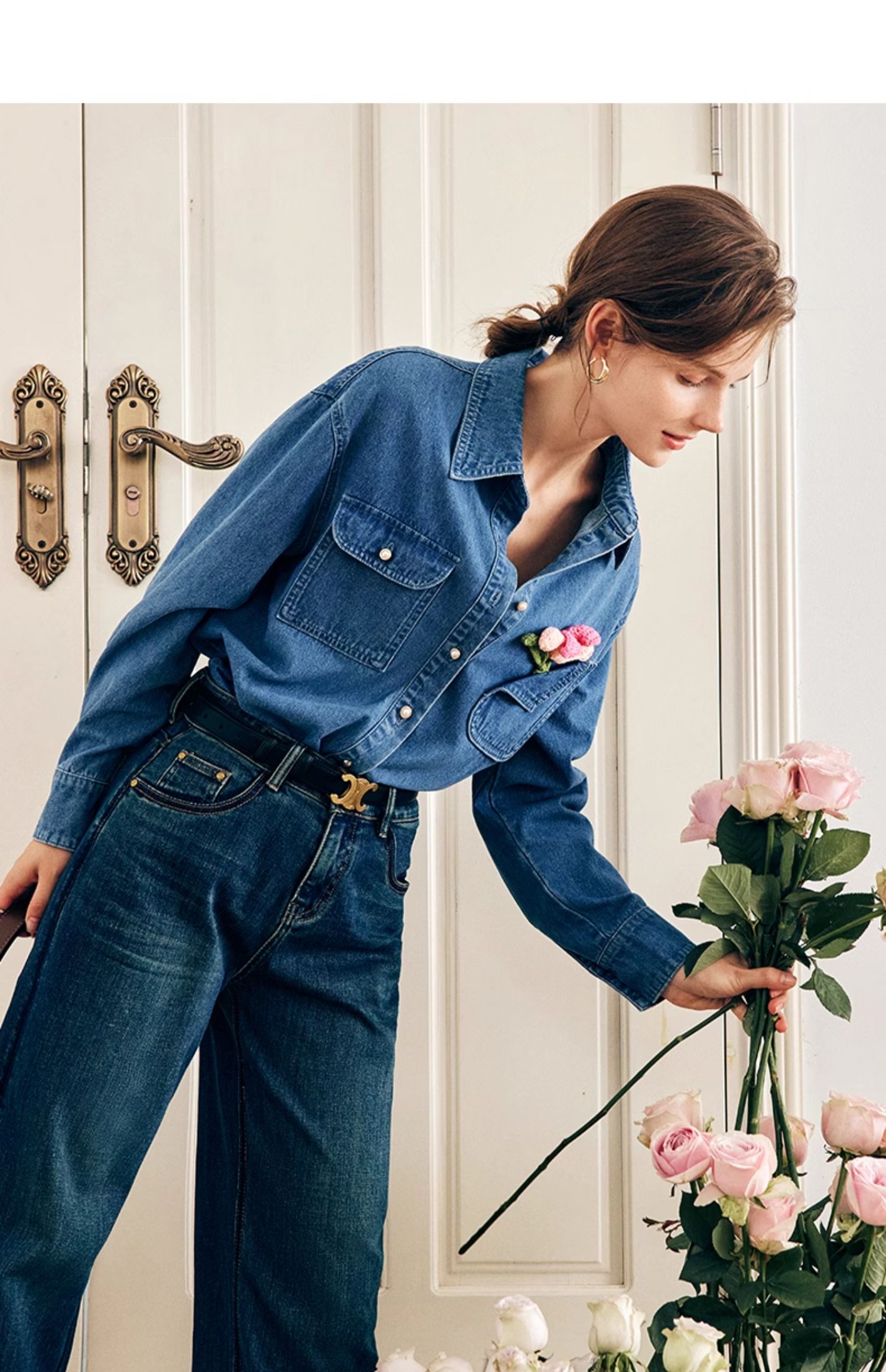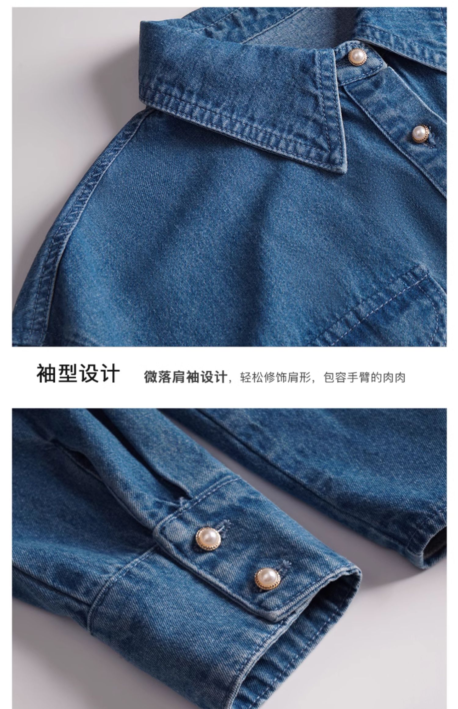 OLrain欧芮儿法式长袖牛仔衬衫女春季2025年新款复古宽松休闲衬衣