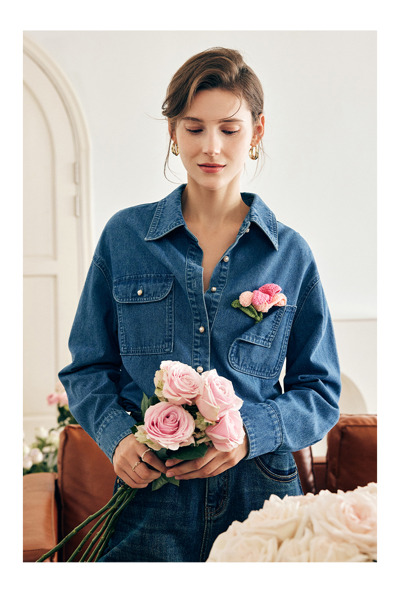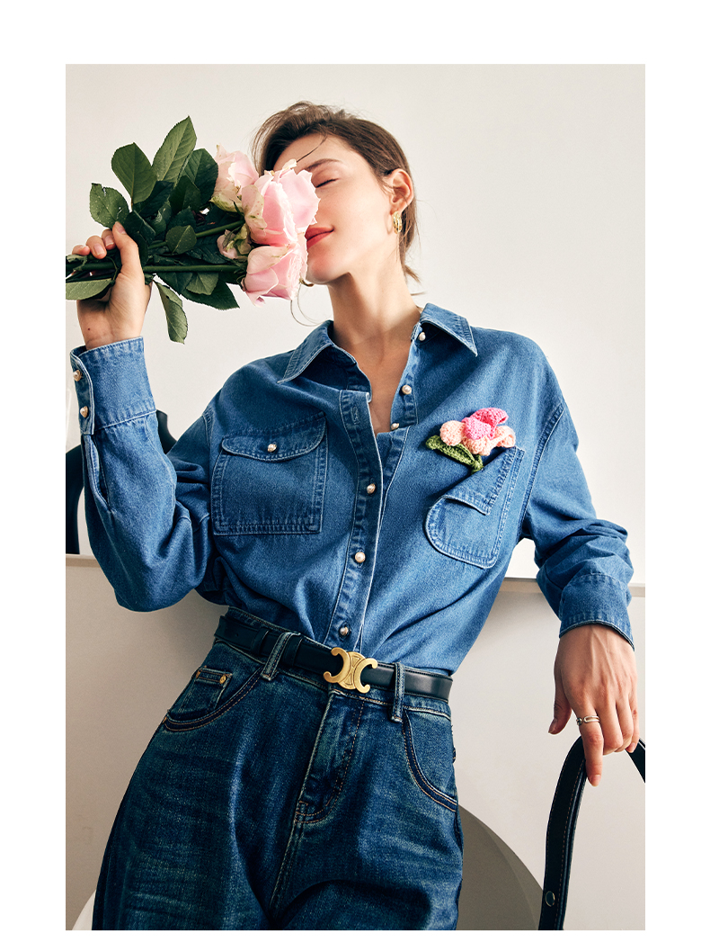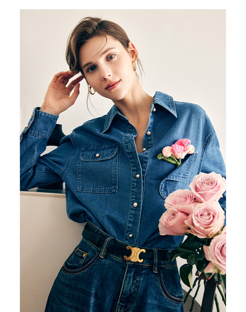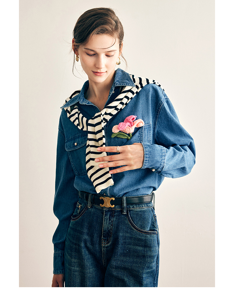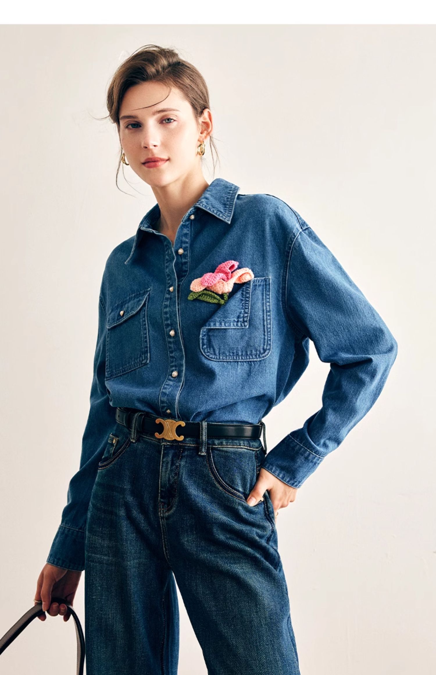 OLrain欧芮儿法式长袖牛仔衬衫女春季2025年新款复古宽松休闲衬衣