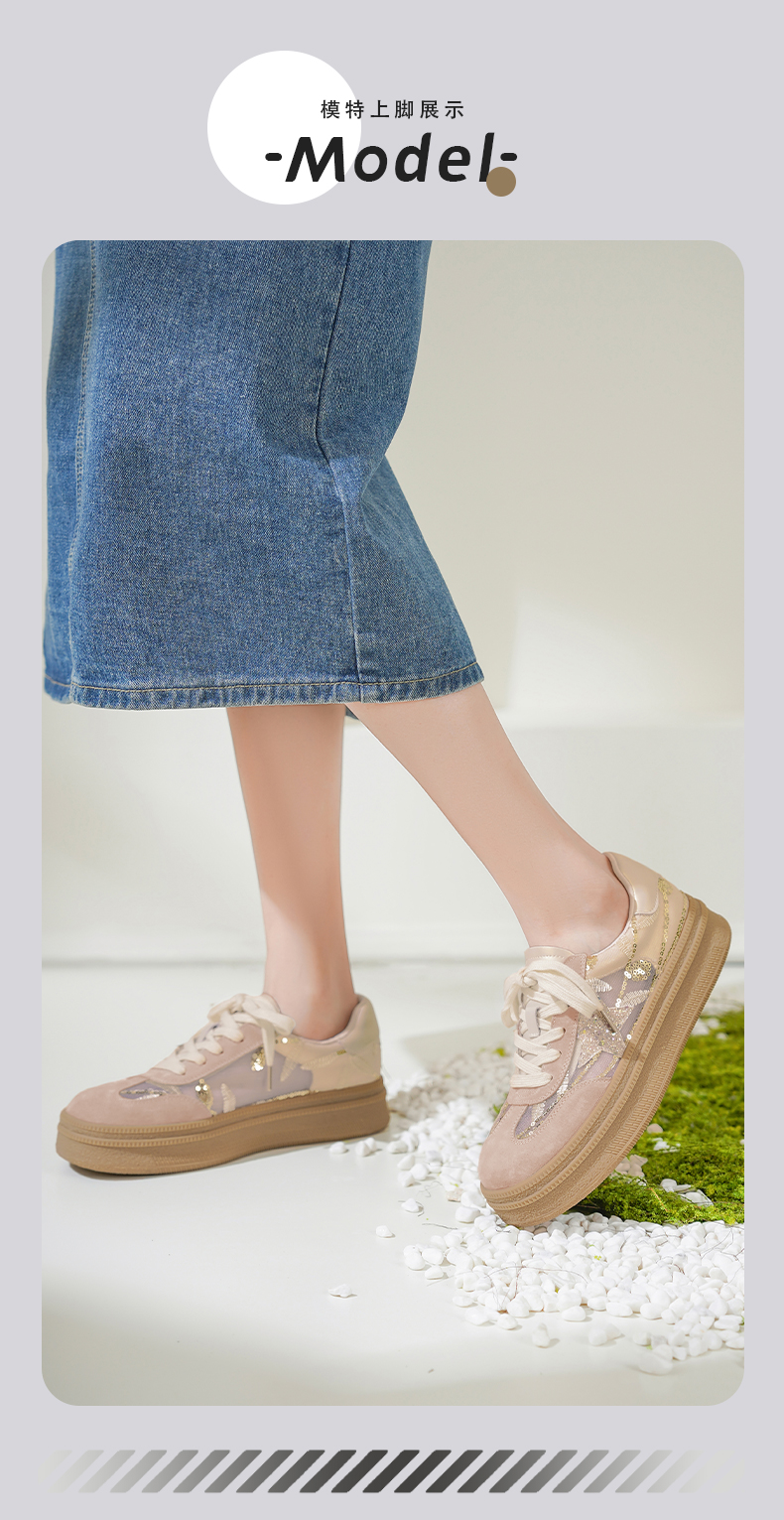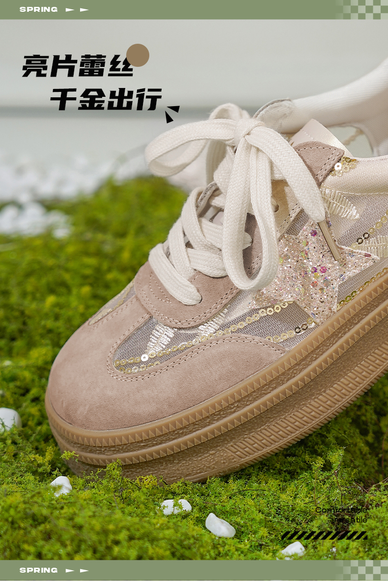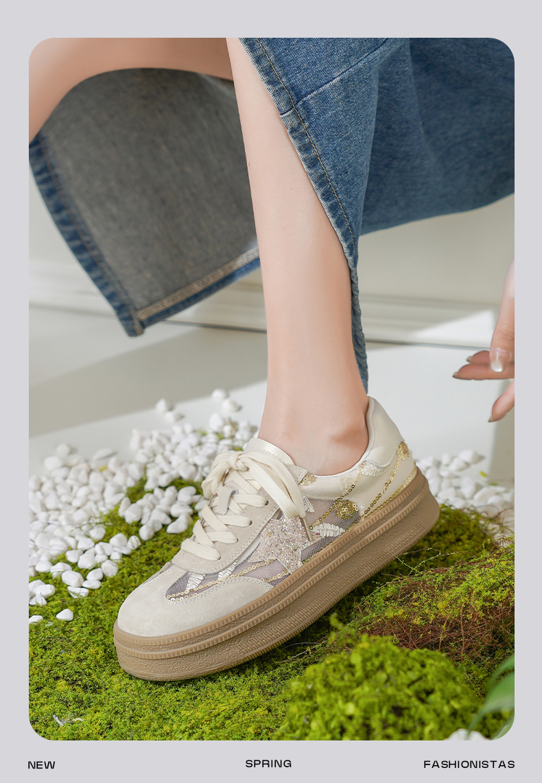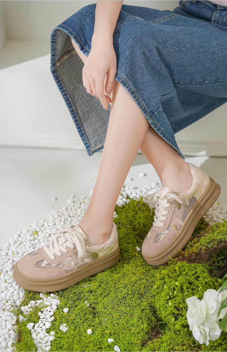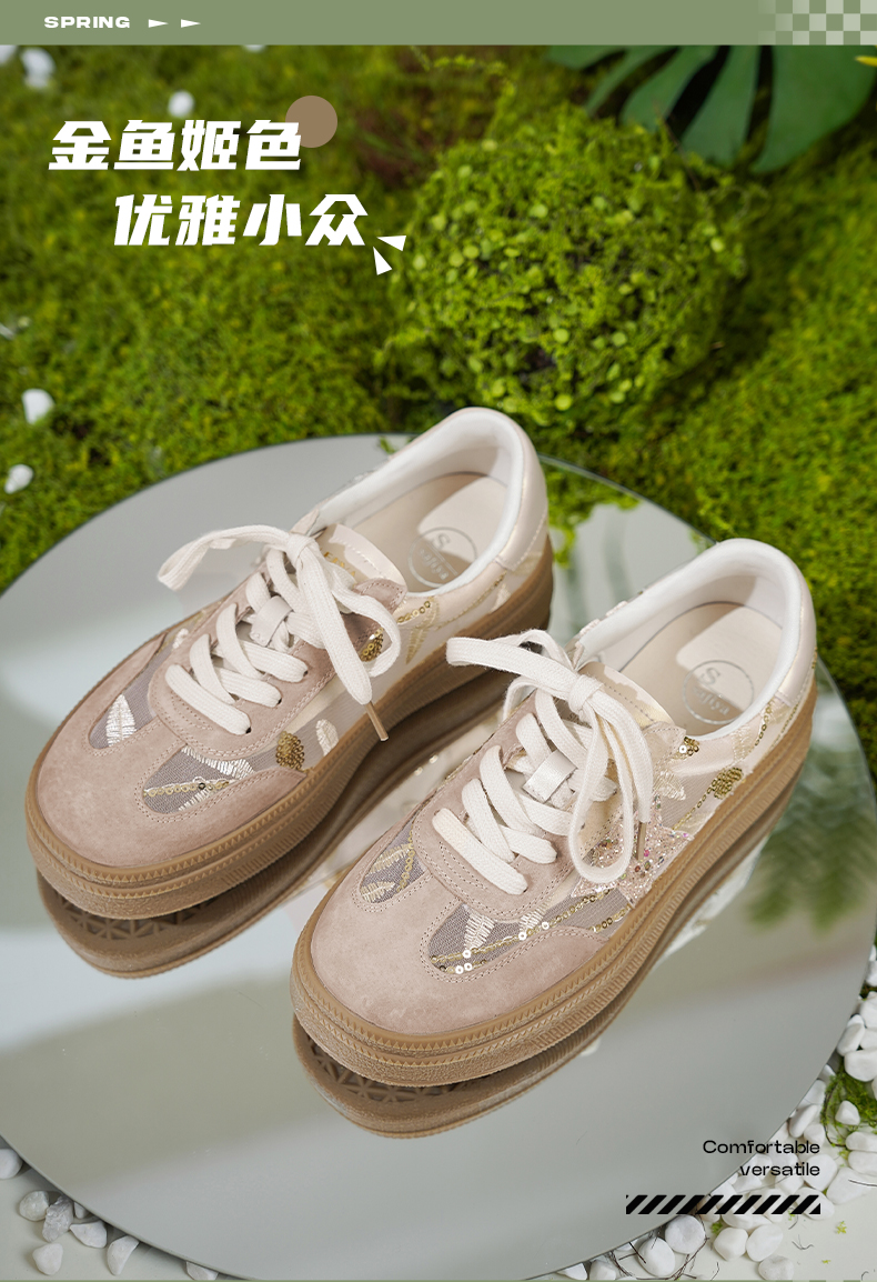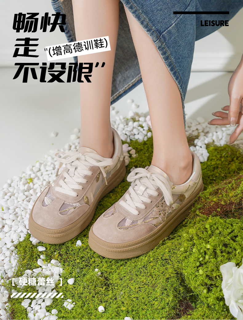 预售10天|Safiya/索菲娅2025千金风厚底百搭拼色蕾丝休闲增高德训鞋SFD1112215