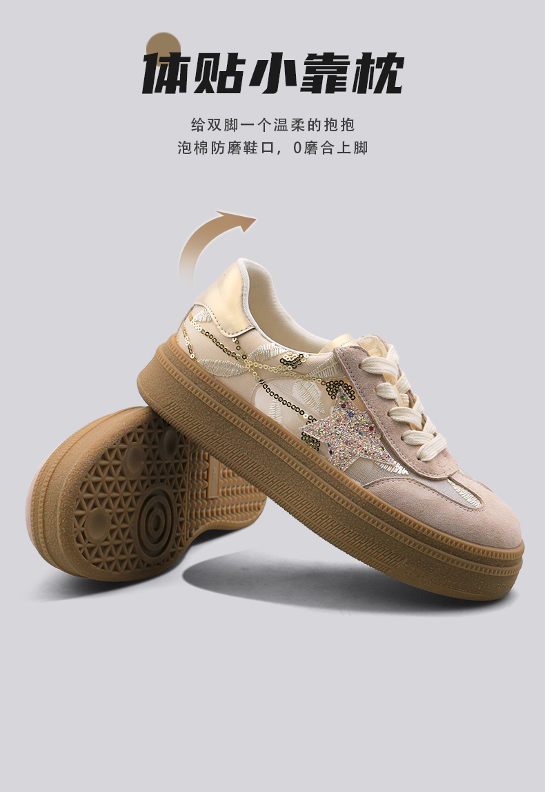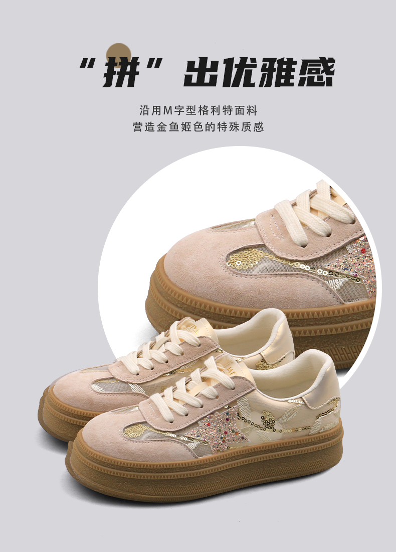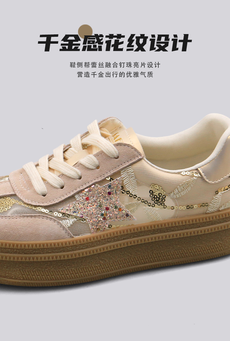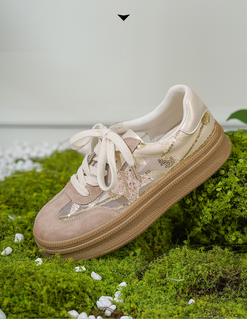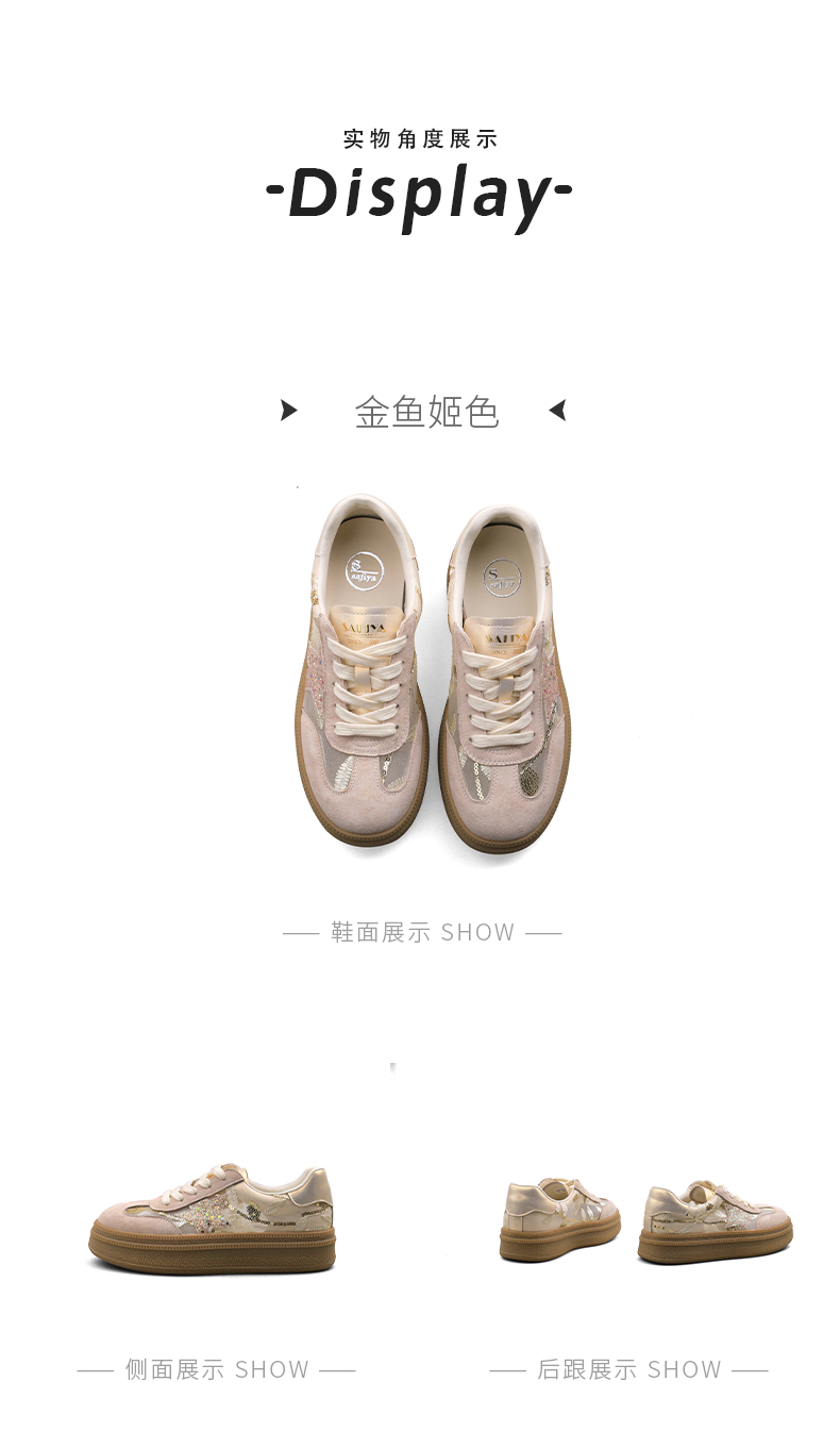 预售10天|Safiya/索菲娅2025千金风厚底百搭拼色蕾丝休闲增高德训鞋SFD1112215