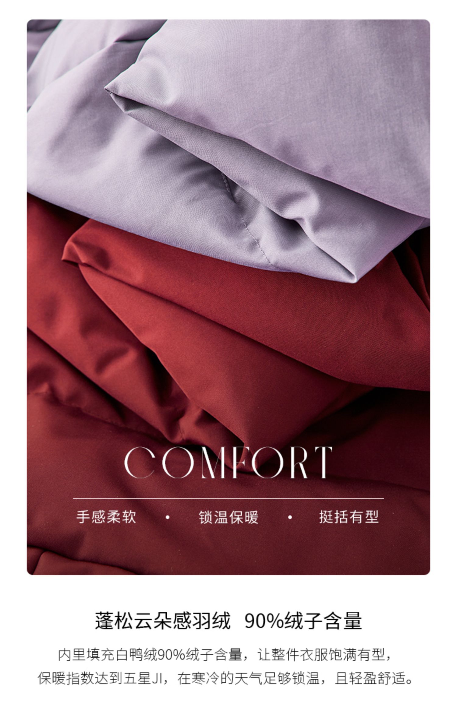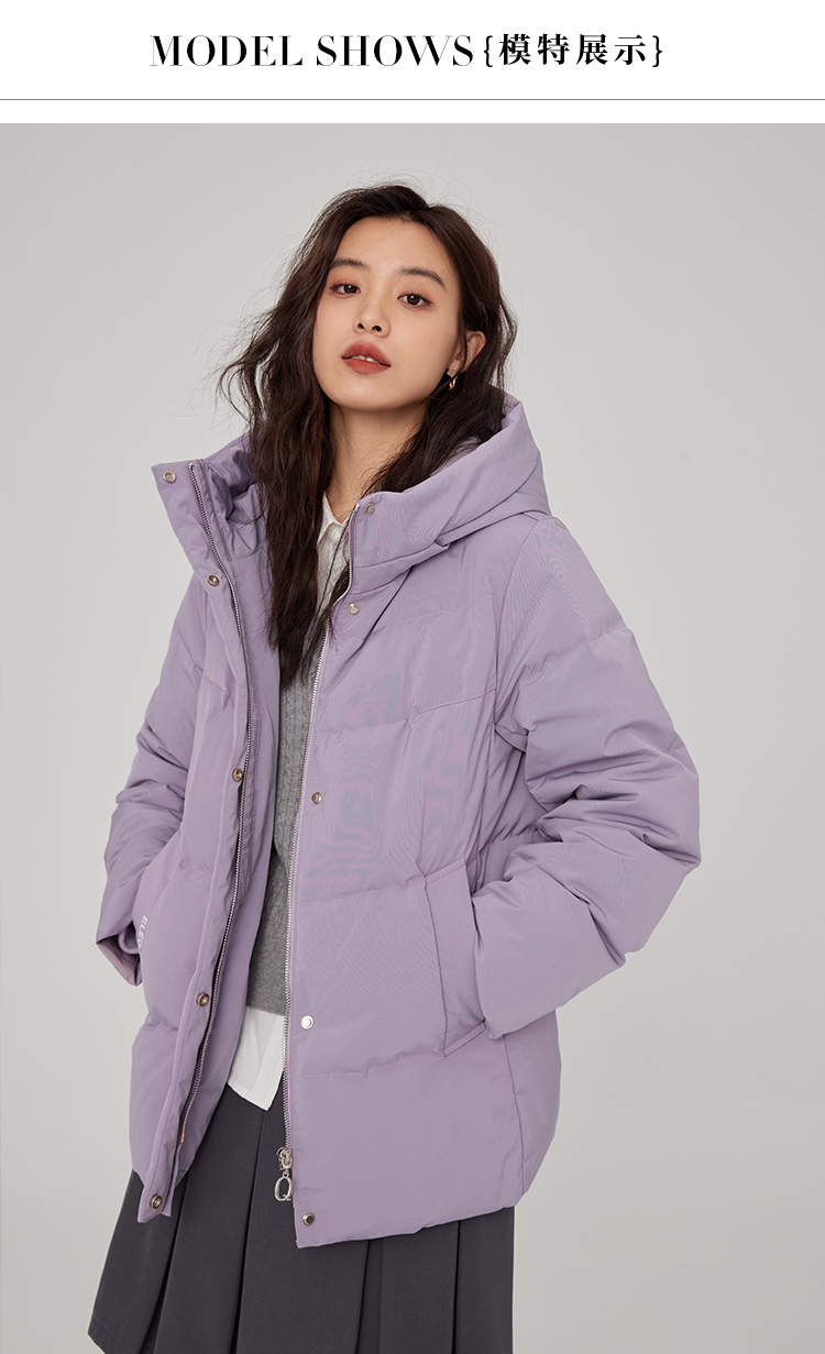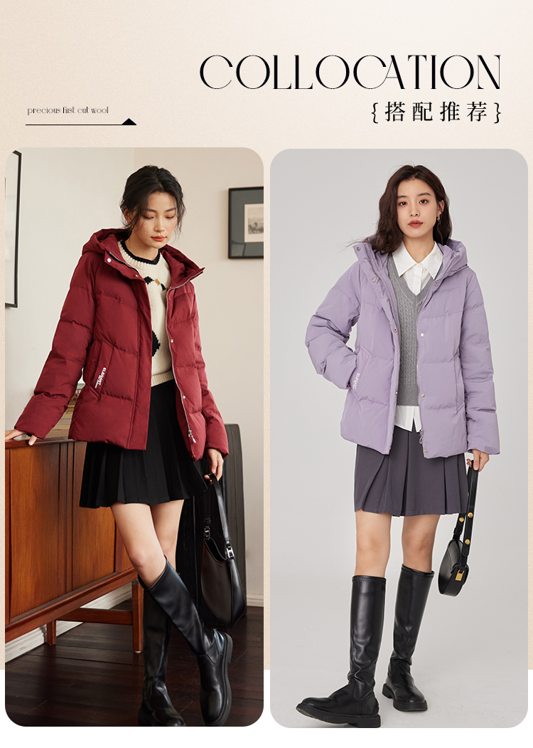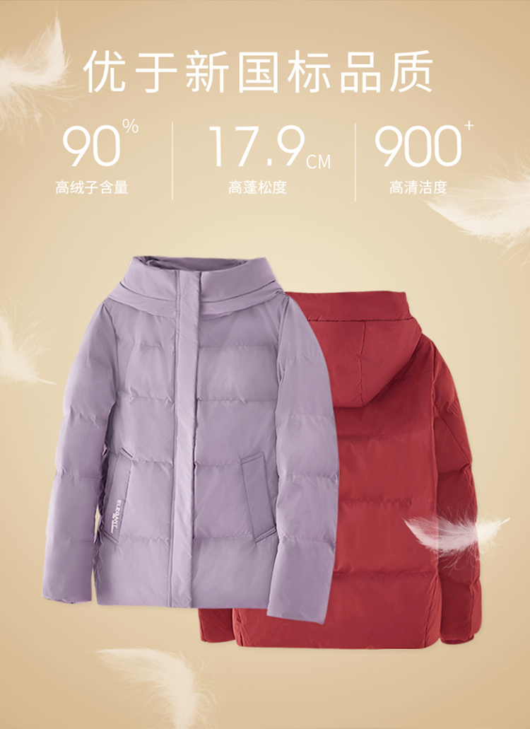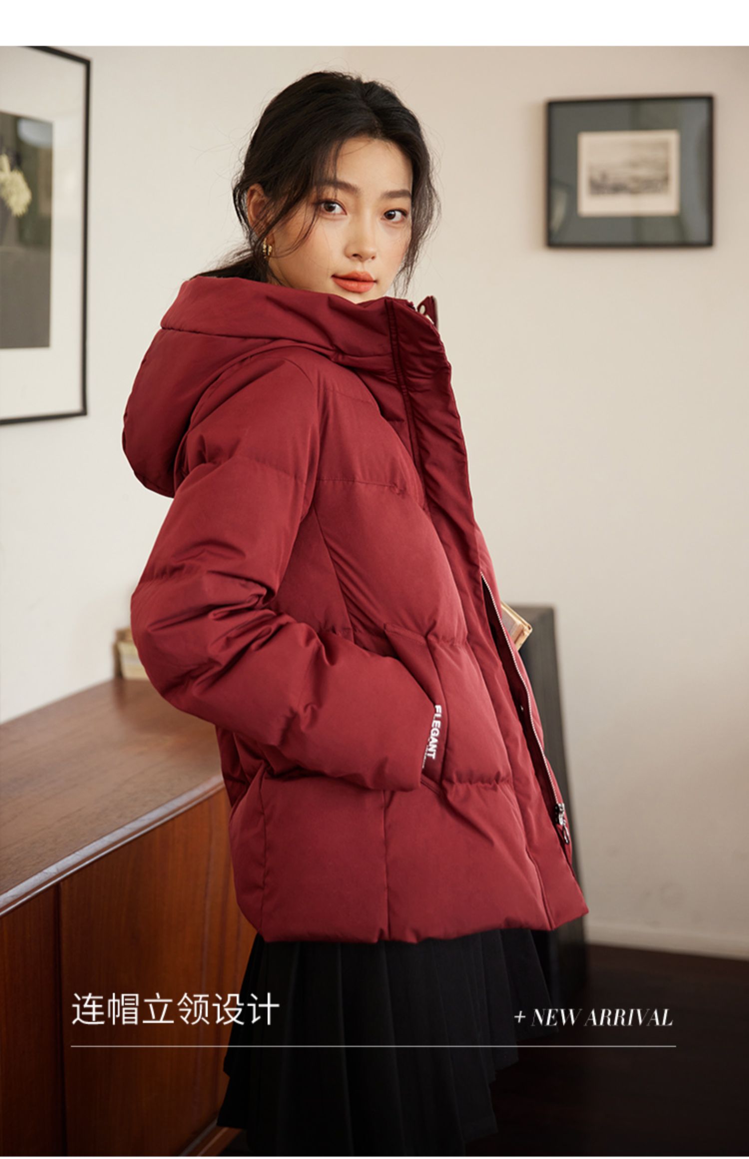 【年终特卖】熙世界枣红色羽绒服女款2025冬季新款90%白鸭绒保暖短款外套连帽