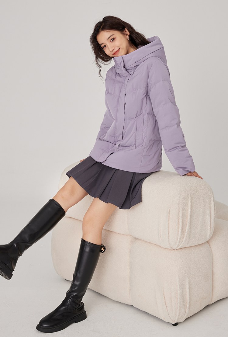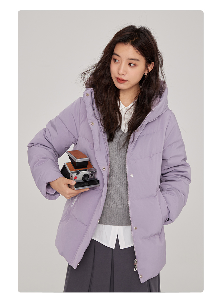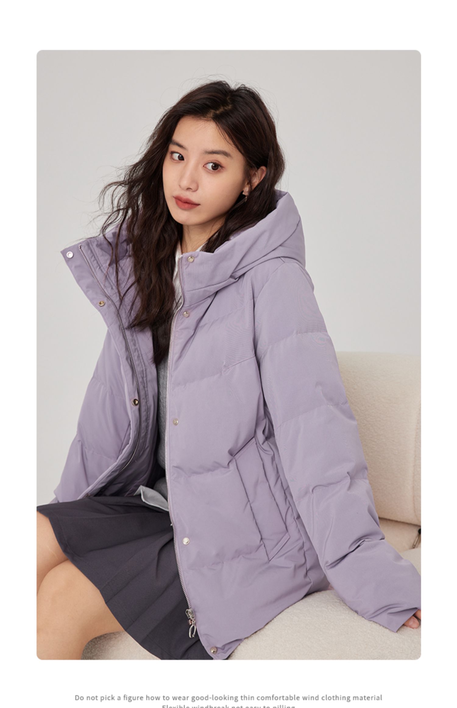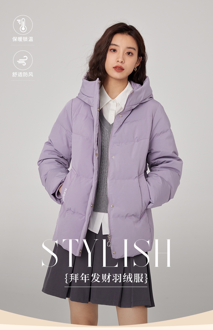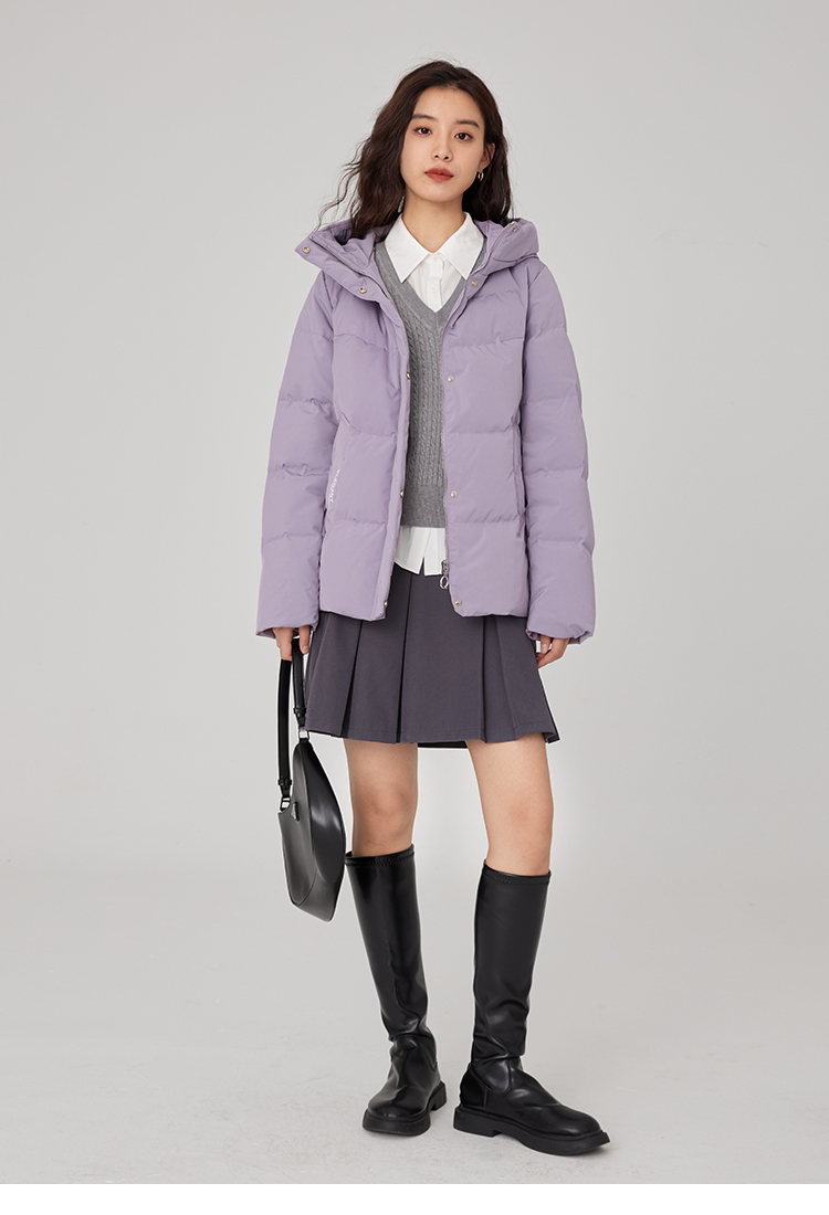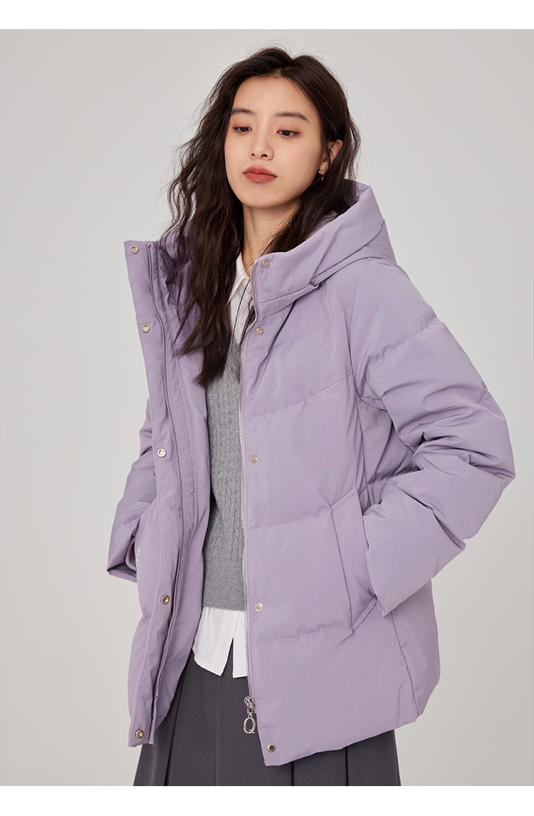 【年终特卖】熙世界枣红色羽绒服女款2025冬季新款90%白鸭绒保暖短款外套连帽