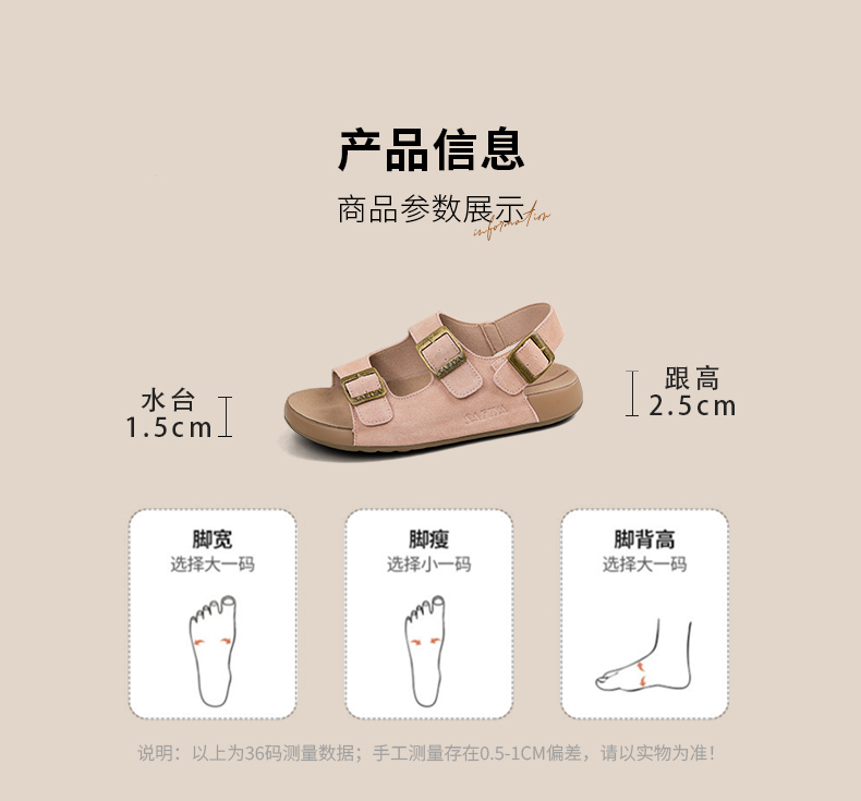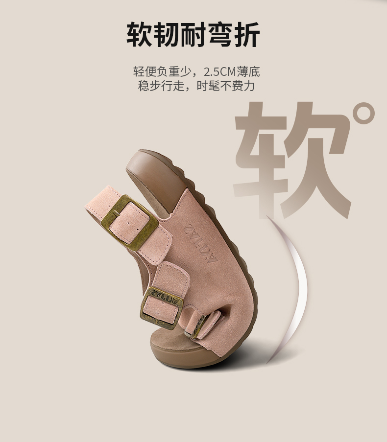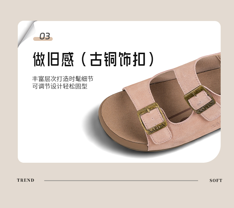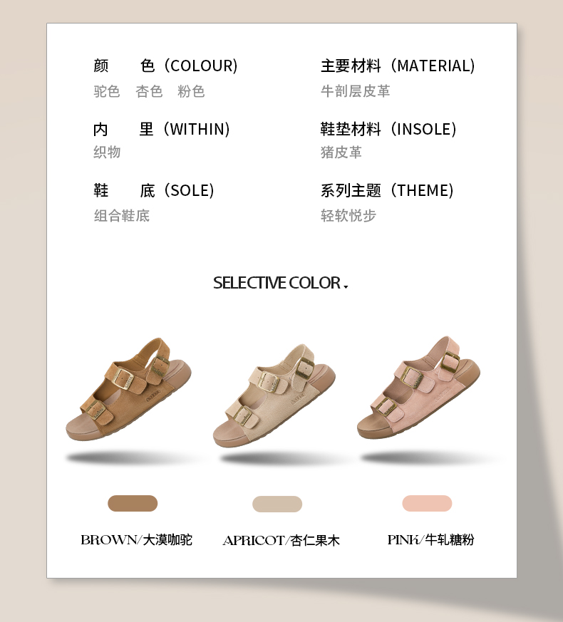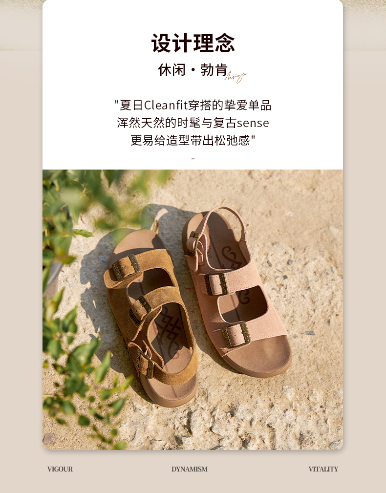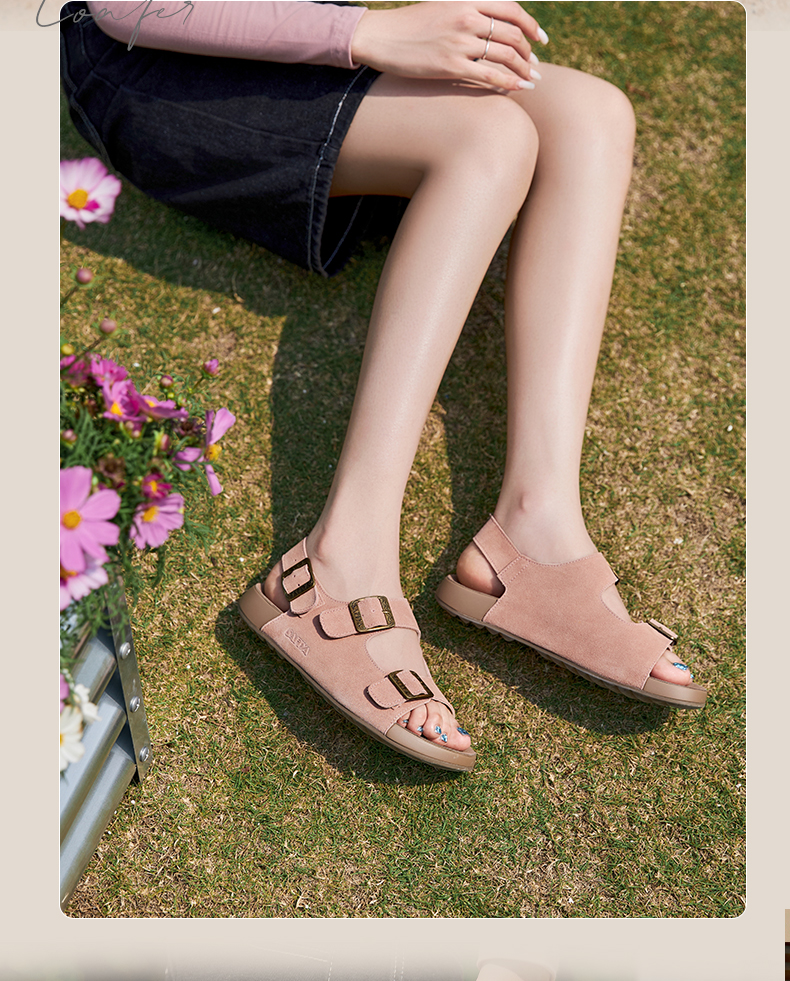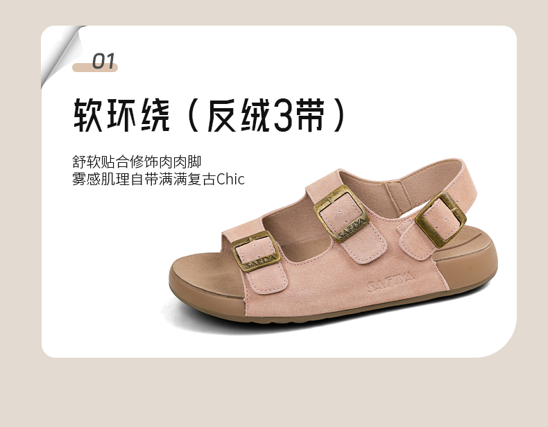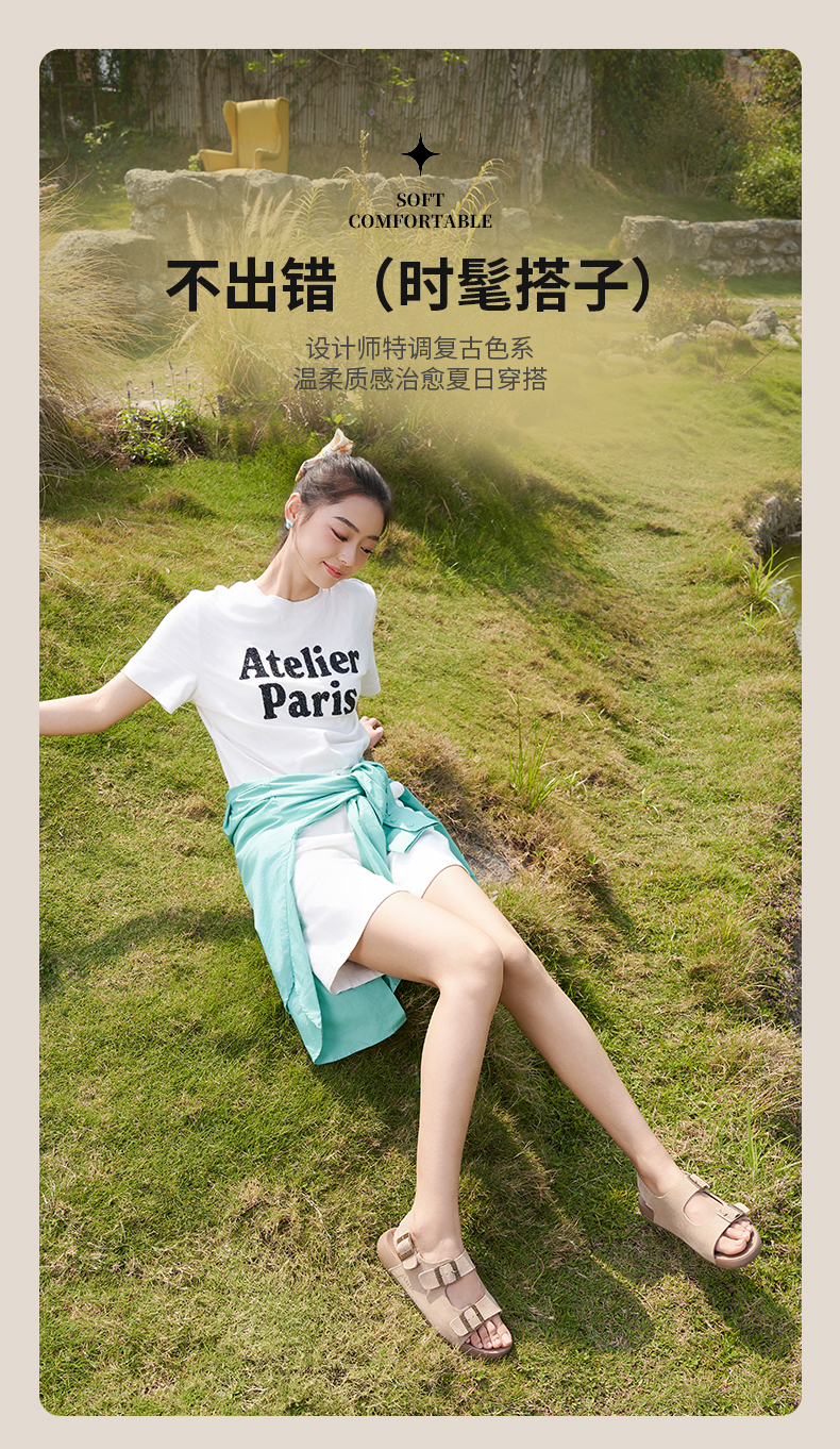 Safiya/索菲娅2025夏季外穿舒适平底休闲复古搭扣露趾勃肯凉拖SFD2115356