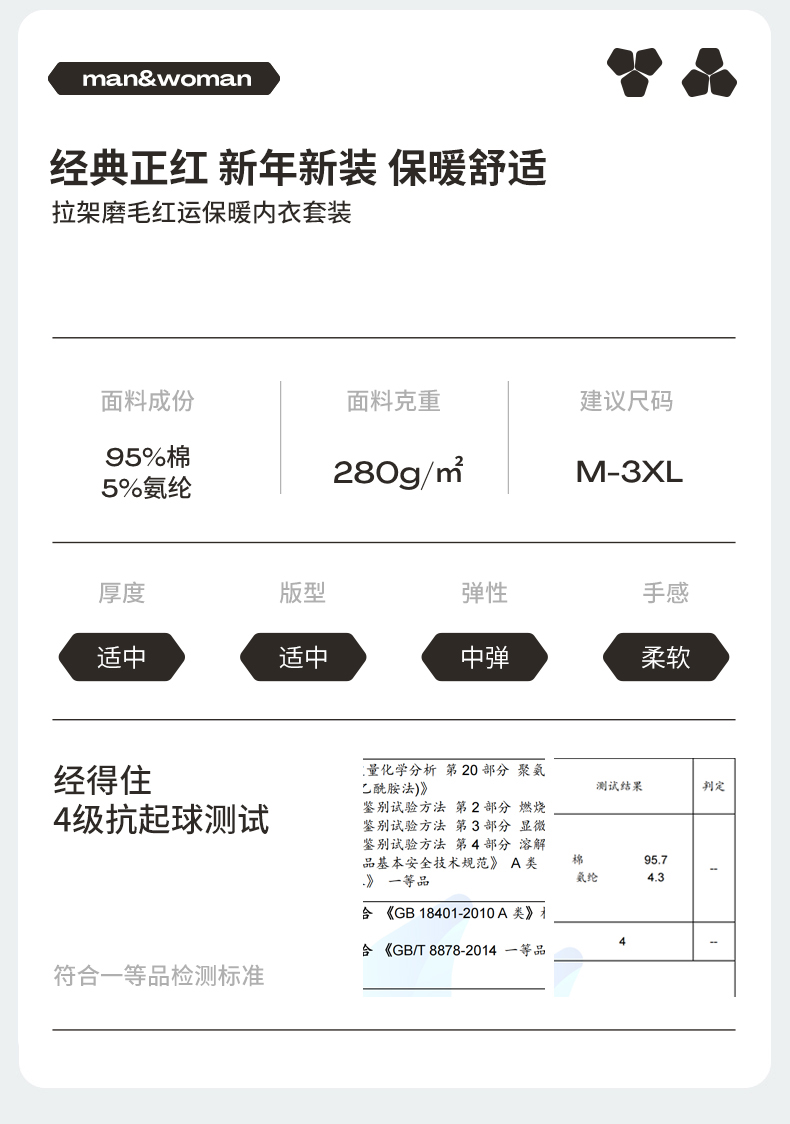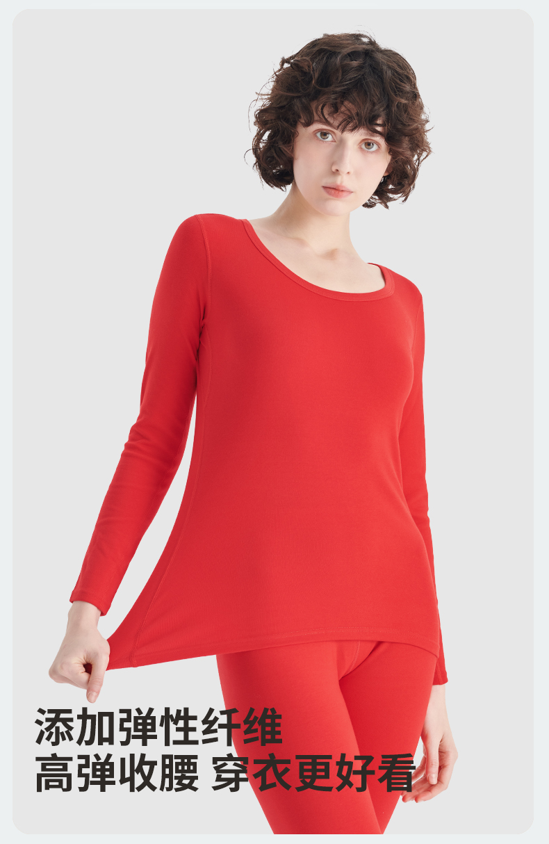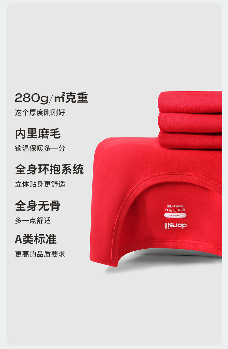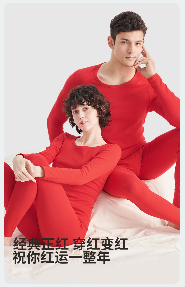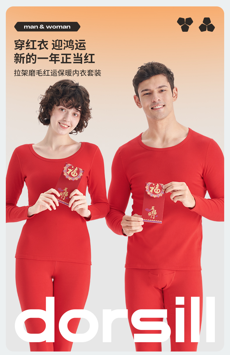 【280g拉架磨毛】朵熙儿男女士新年红保暖内衣套装本命年青少年秋衣裤