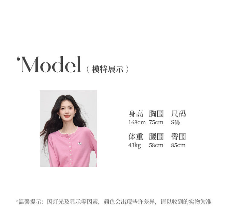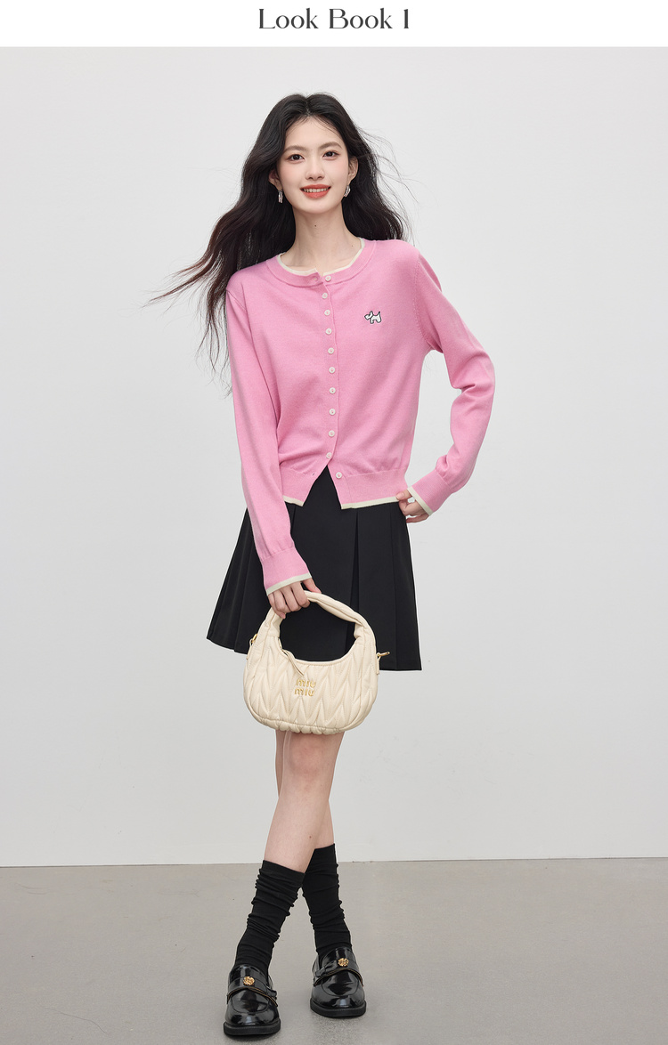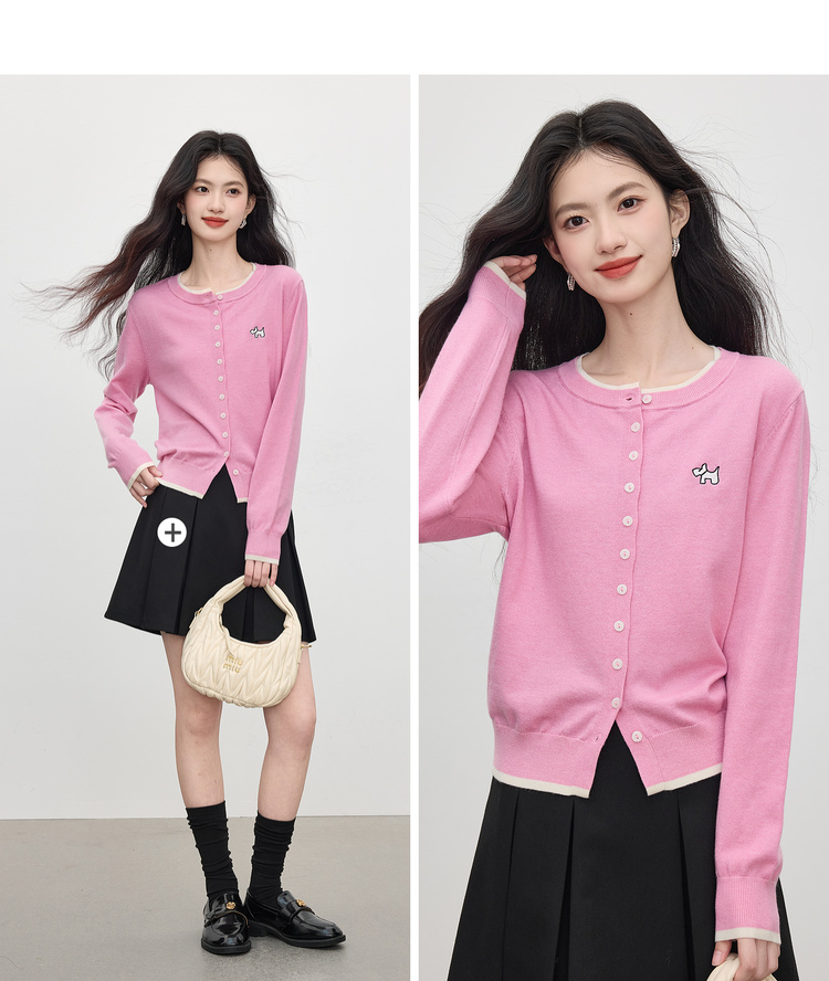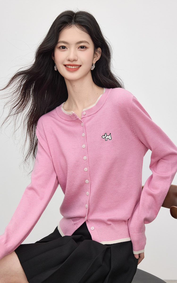 【五折购】熙世界假两件粉色针织衫女2025新款开秋穿搭刺绣减龄圆领开衫上衣