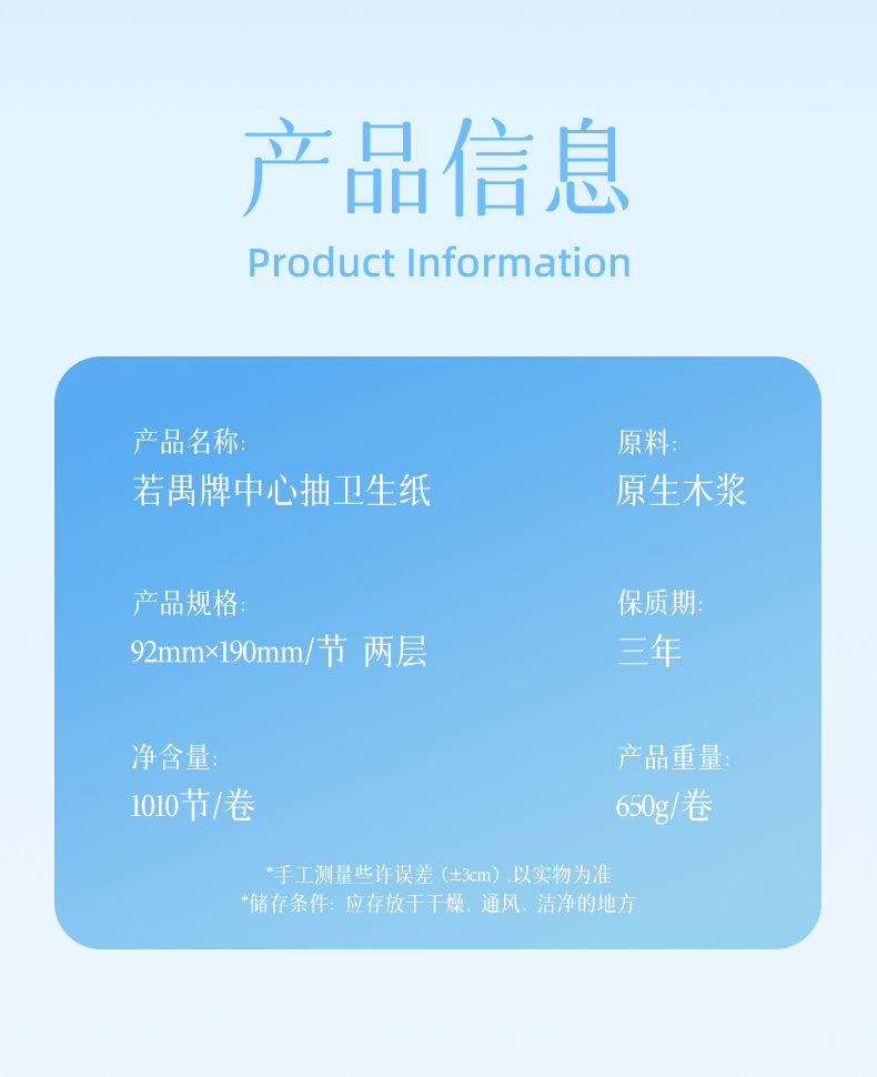 若禺商用中心抽大卷纸大盘纸2层650克/卷珍宝纸原生木浆100节/卷1件12卷RZ006