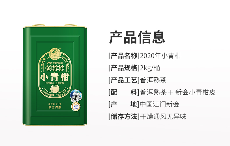 澜沧古茶2020特别纪念版茶妈妈小青柑陈皮普洱茶2000g