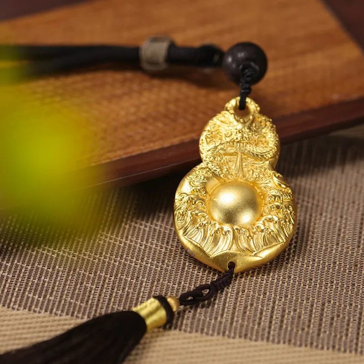 该挂件,以龙的形象设计而成,一龙戏珠的嬉戏神态跃然其上,祥云环绕,海水翻腾。寓意着祥瑞再现,乘风破浪,百财聚来。