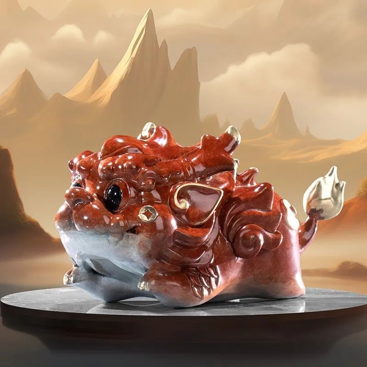 新品中有一个重磅的摆件,叫“钱龙进宝”,它有大号和小号。
