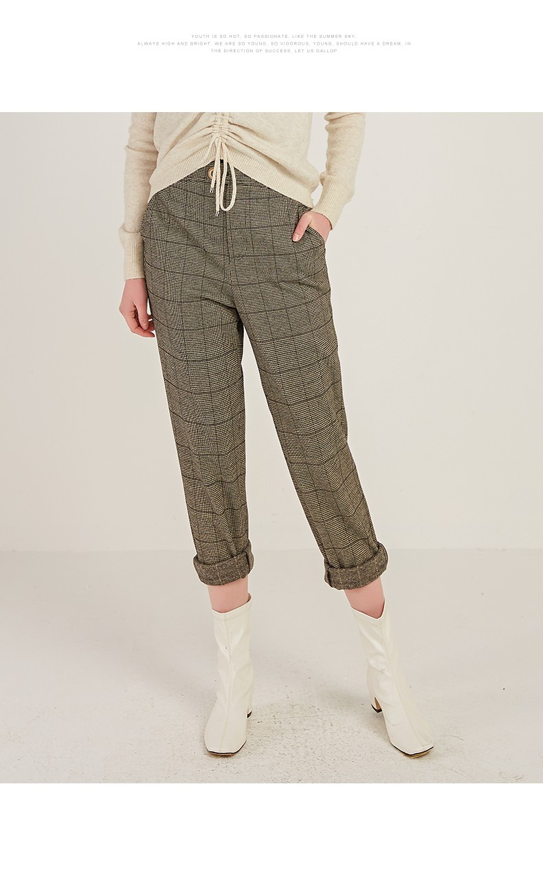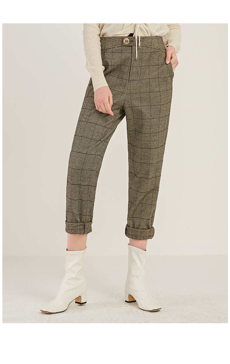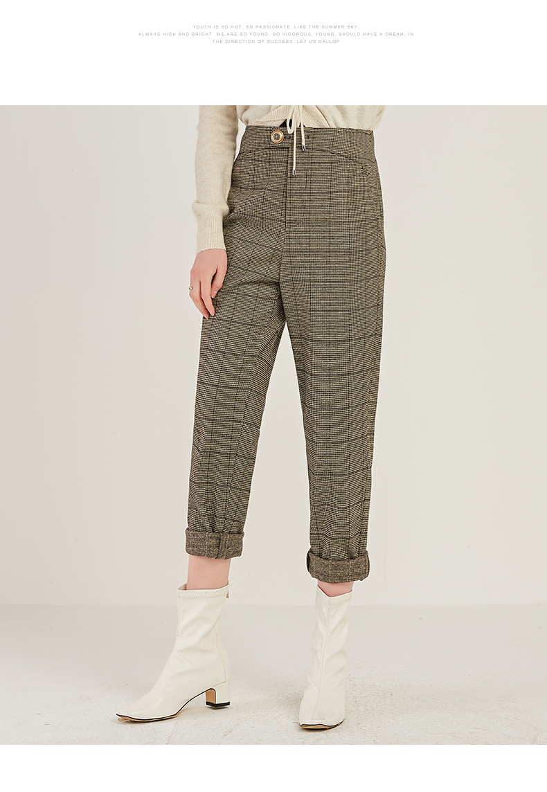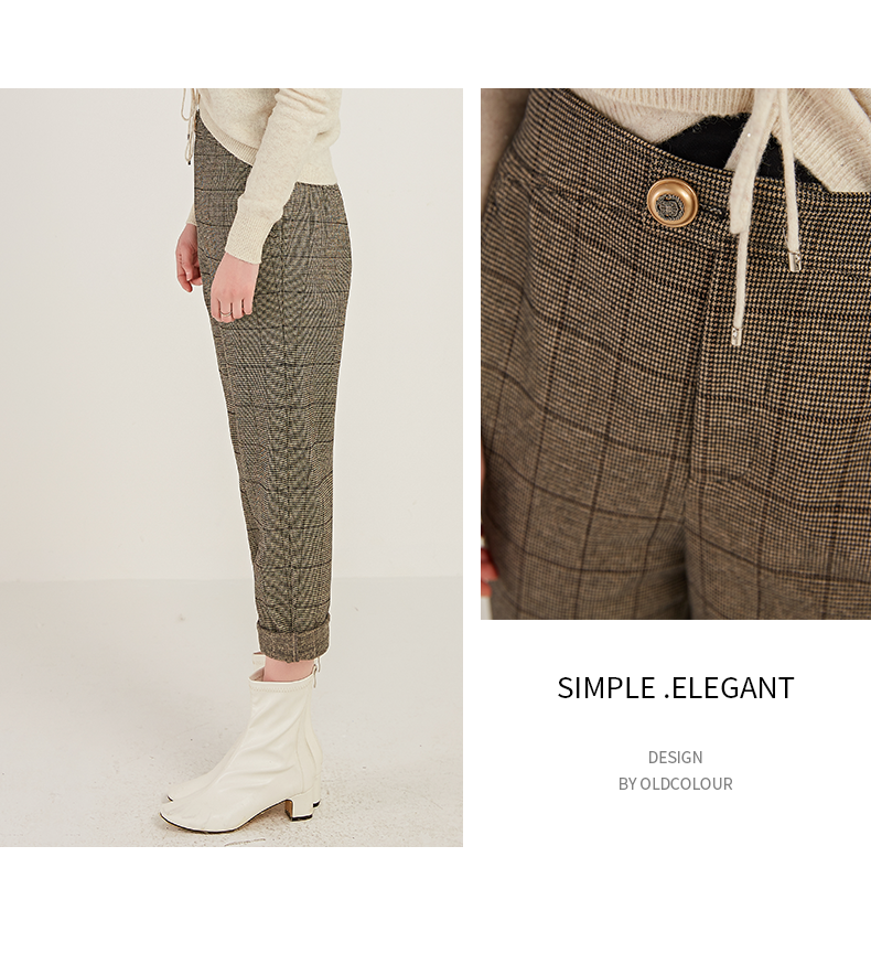 oldcolour商场同款时尚气质高腰显瘦格子休闲裤M41073180