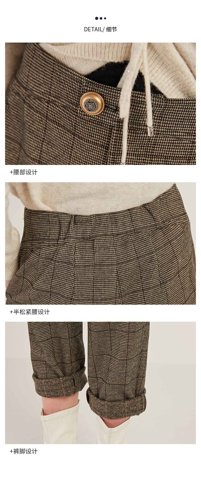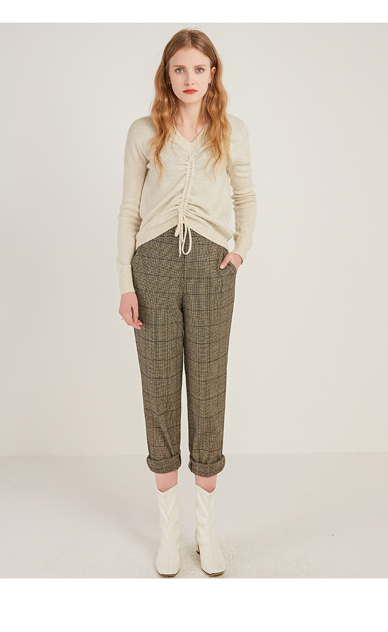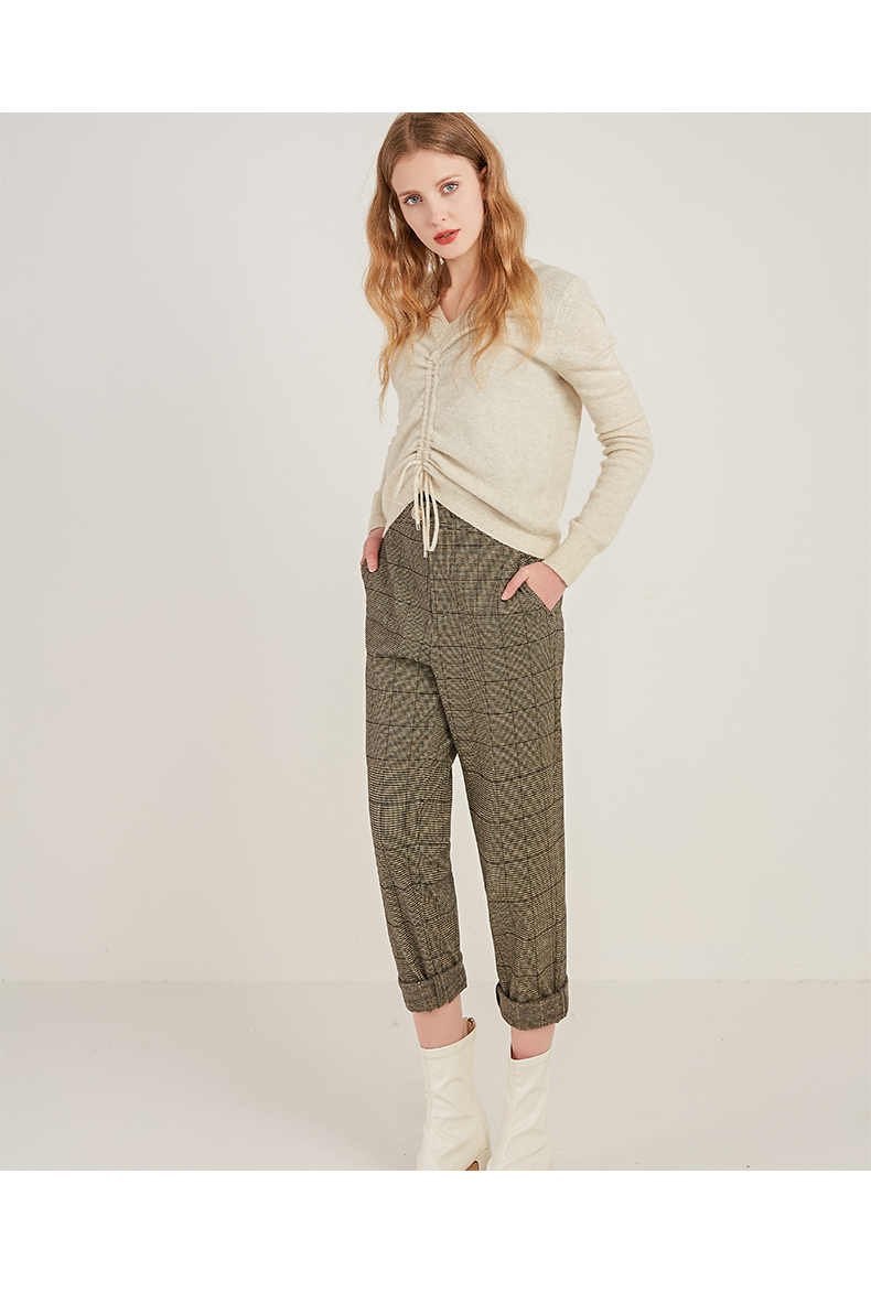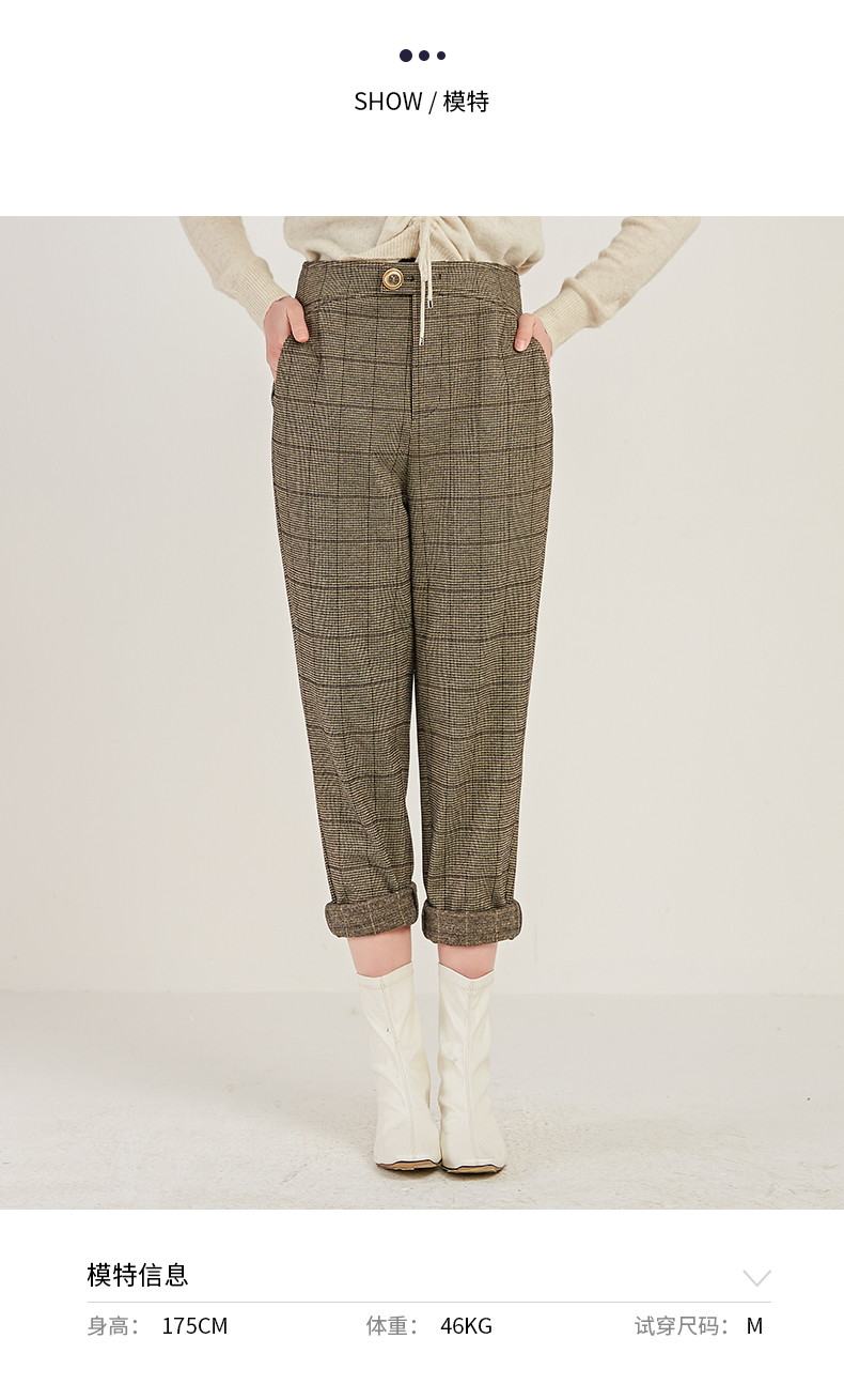 oldcolour商场同款时尚气质高腰显瘦格子休闲裤M41073180