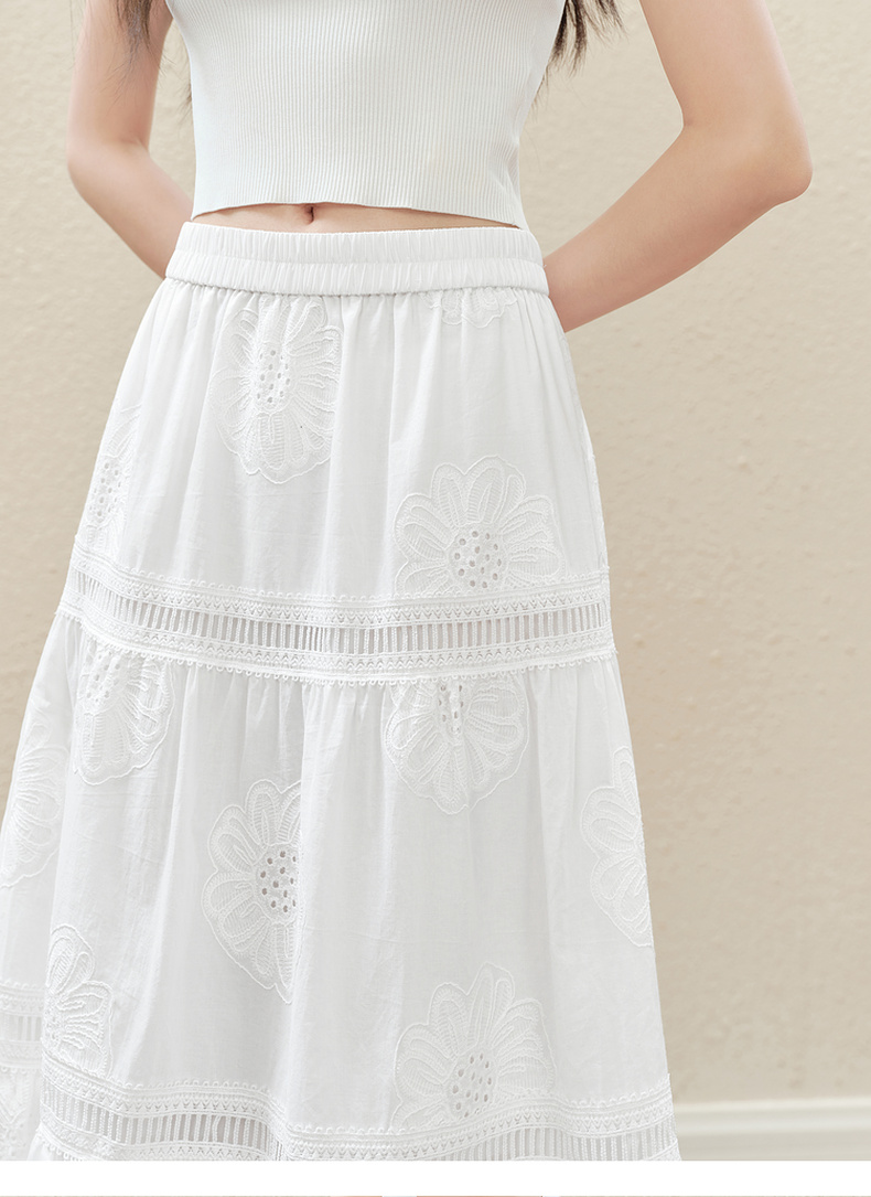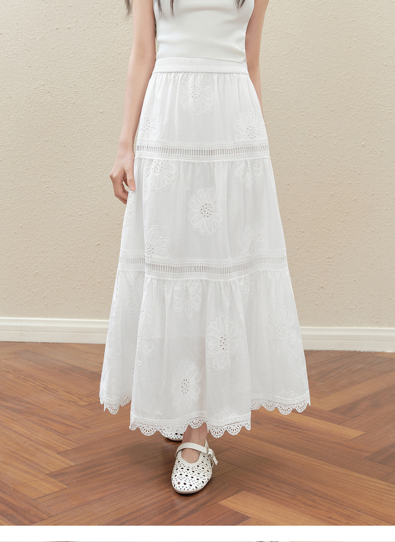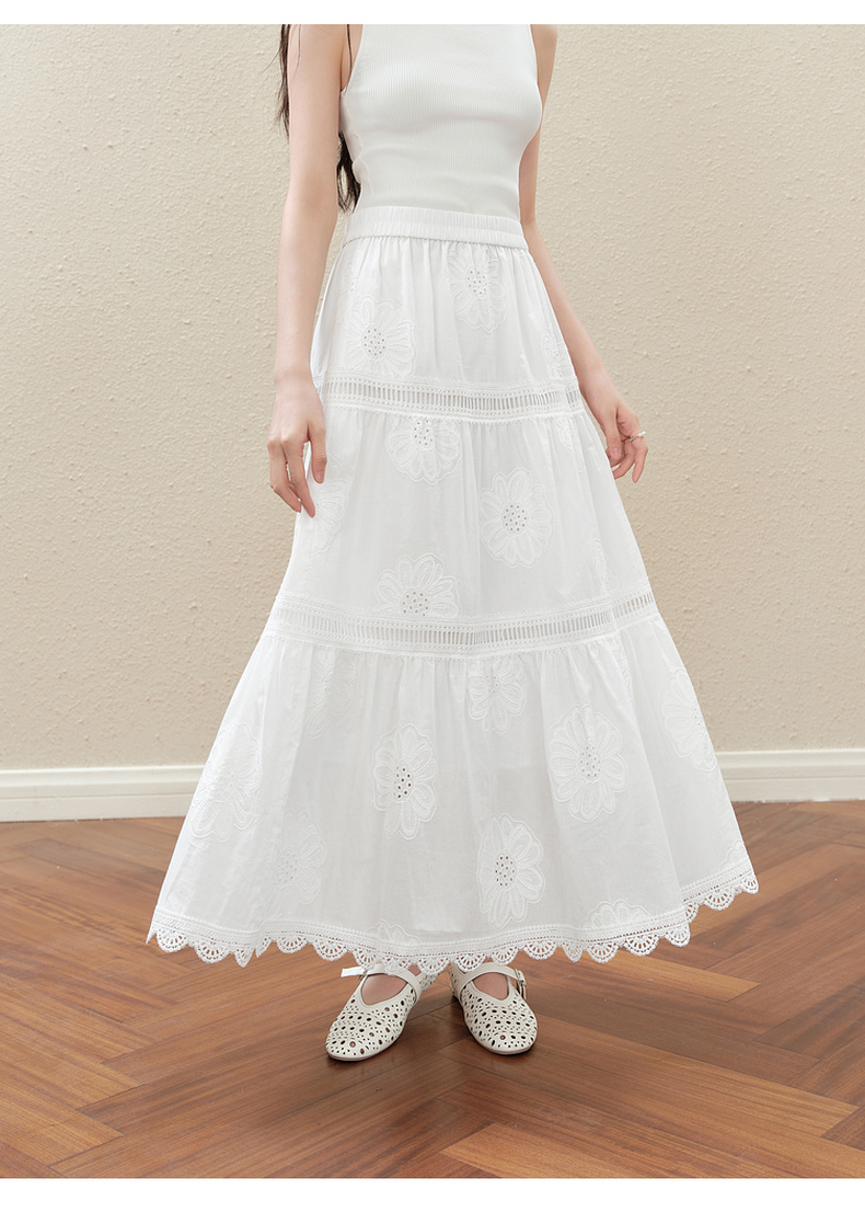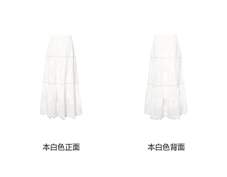 【严选】诗凡黎设计感镂空花边半身裙2025秋新款高腰显瘦轻盈A字仙女长裙7G7340631