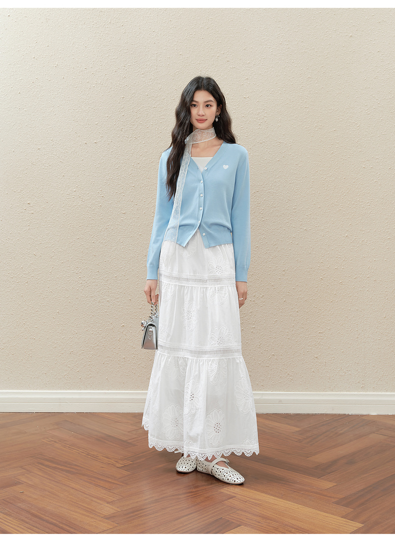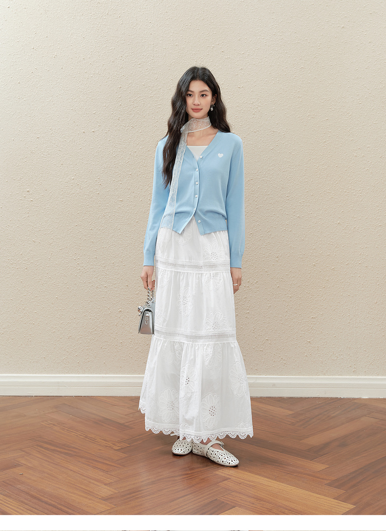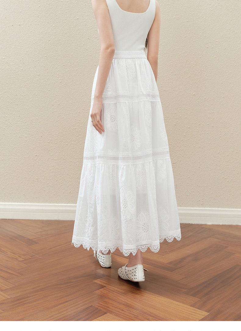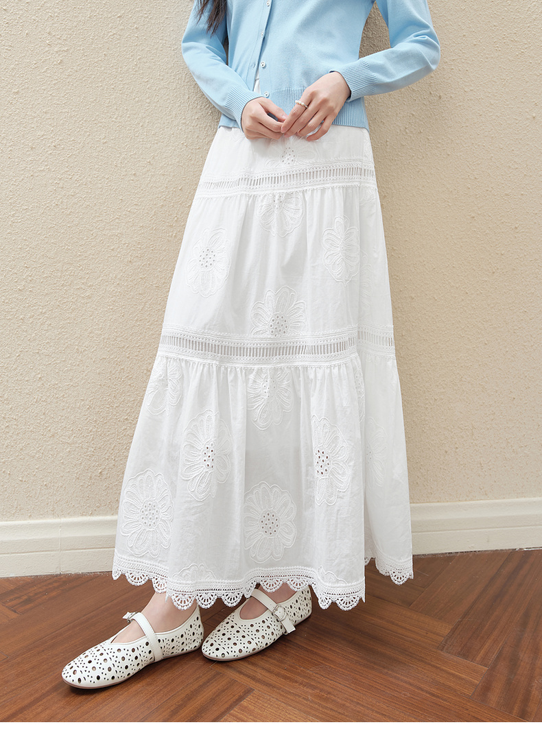 【严选】诗凡黎设计感镂空花边半身裙2025秋新款高腰显瘦轻盈A字仙女长裙7G7340631