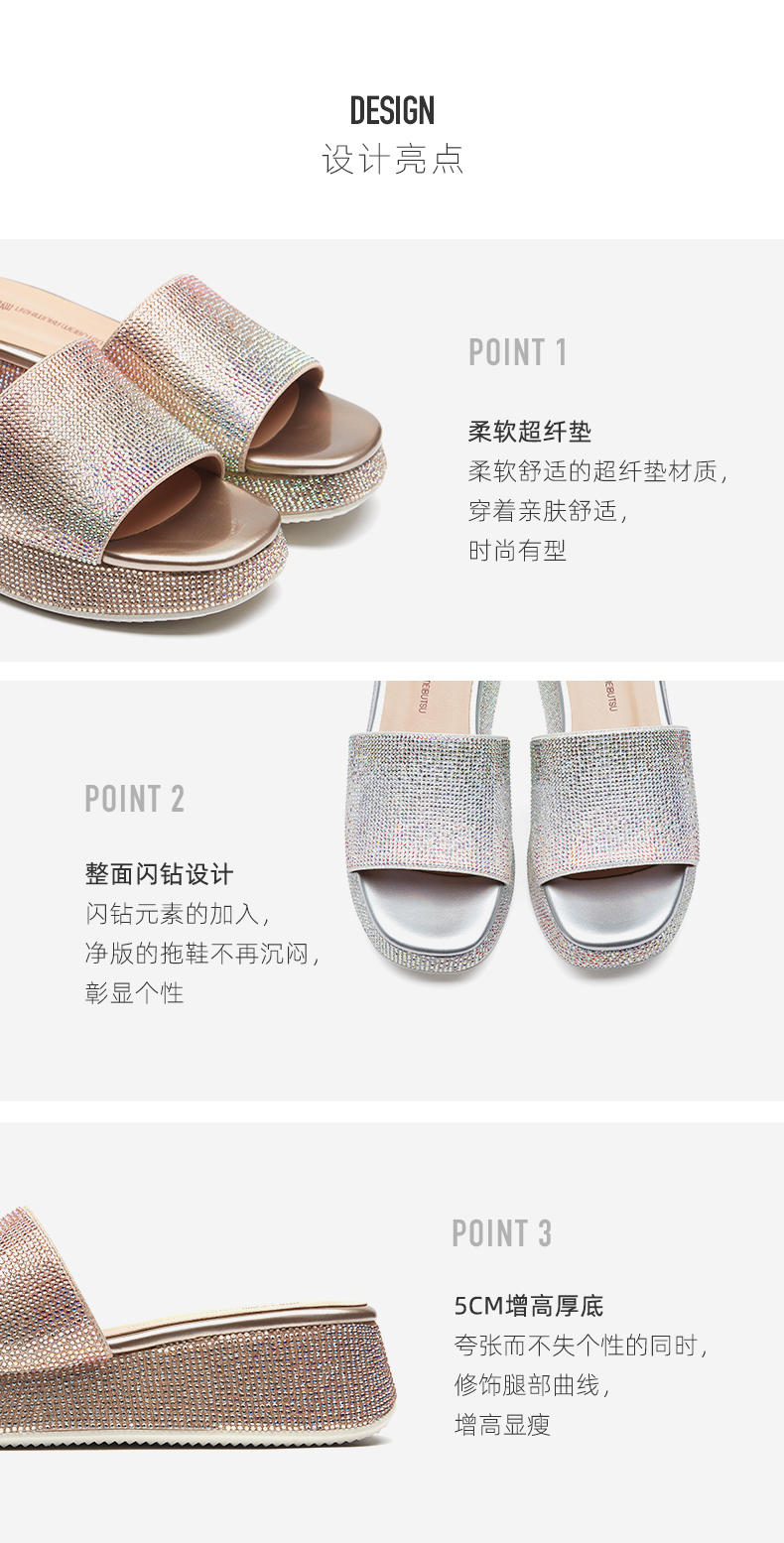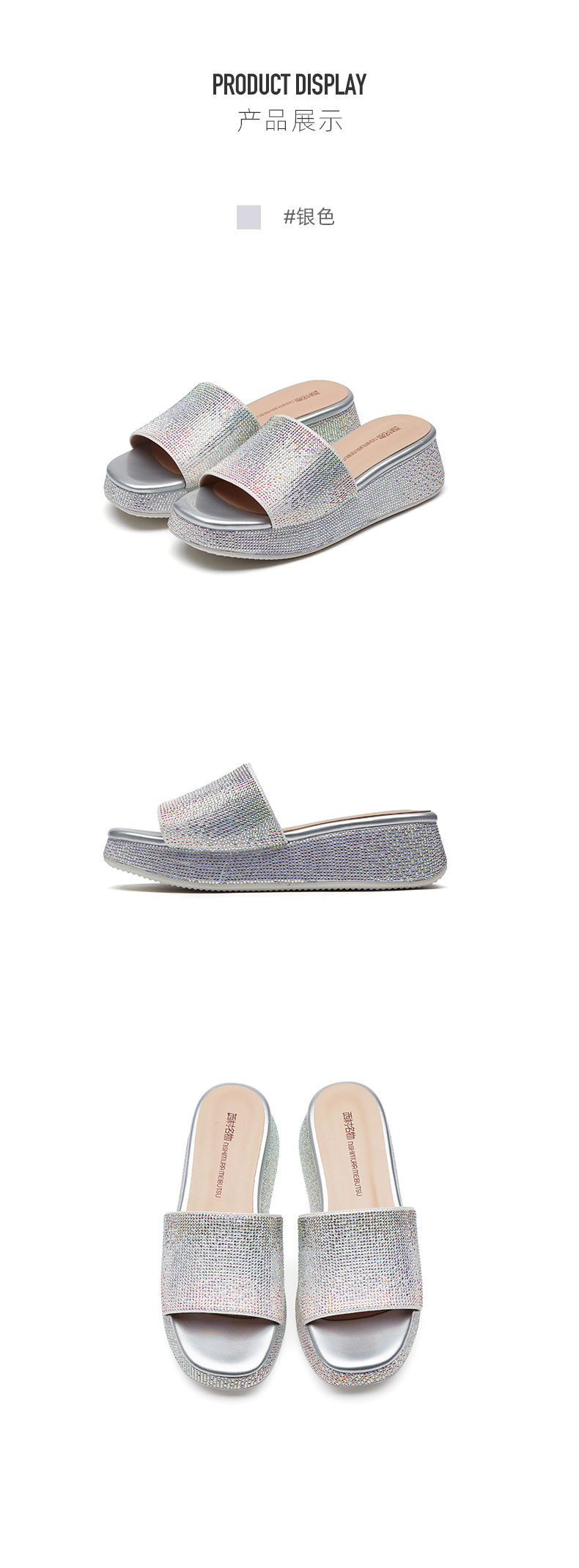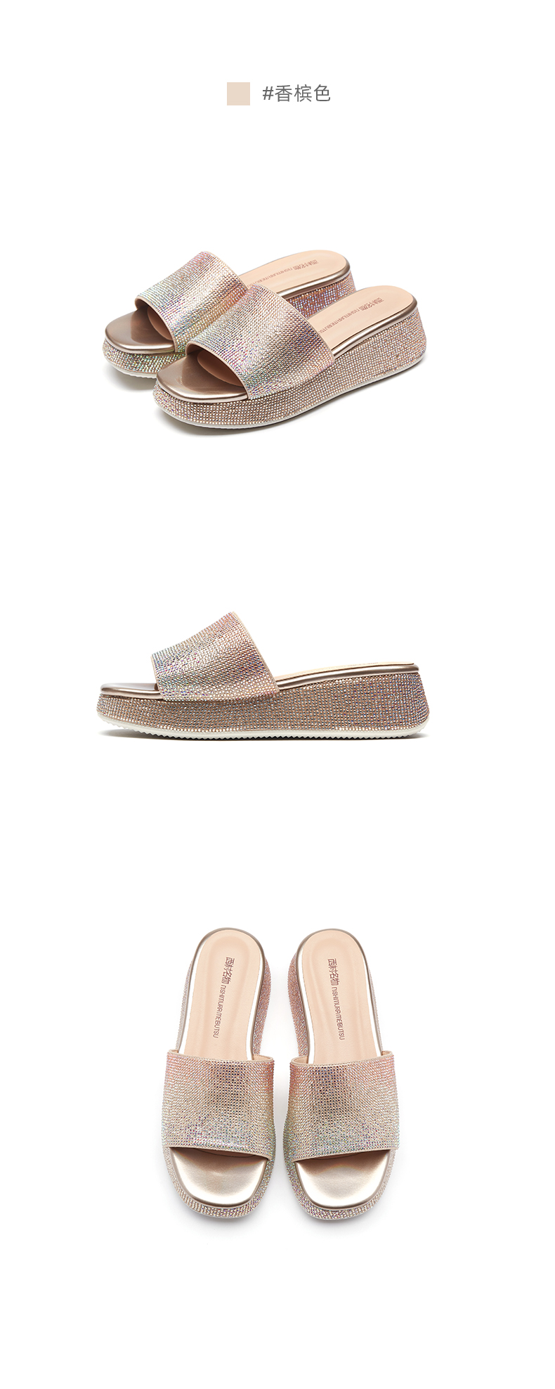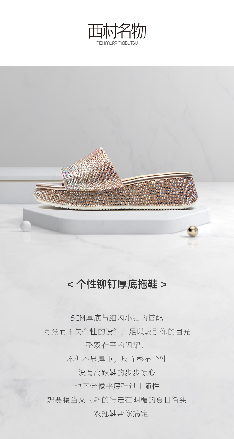西村名物2021夏季新款凉拖女外穿中跟厚底坡跟拖鞋女夏凉鞋23901