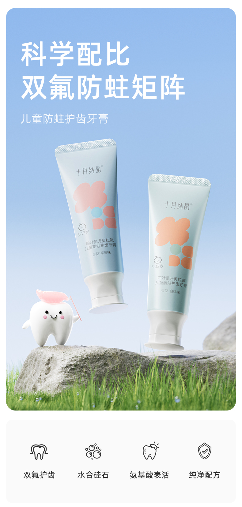儿童牙膏3-6岁-12岁含氟防蛀牙固齿换牙期奥拉氟宝宝专用