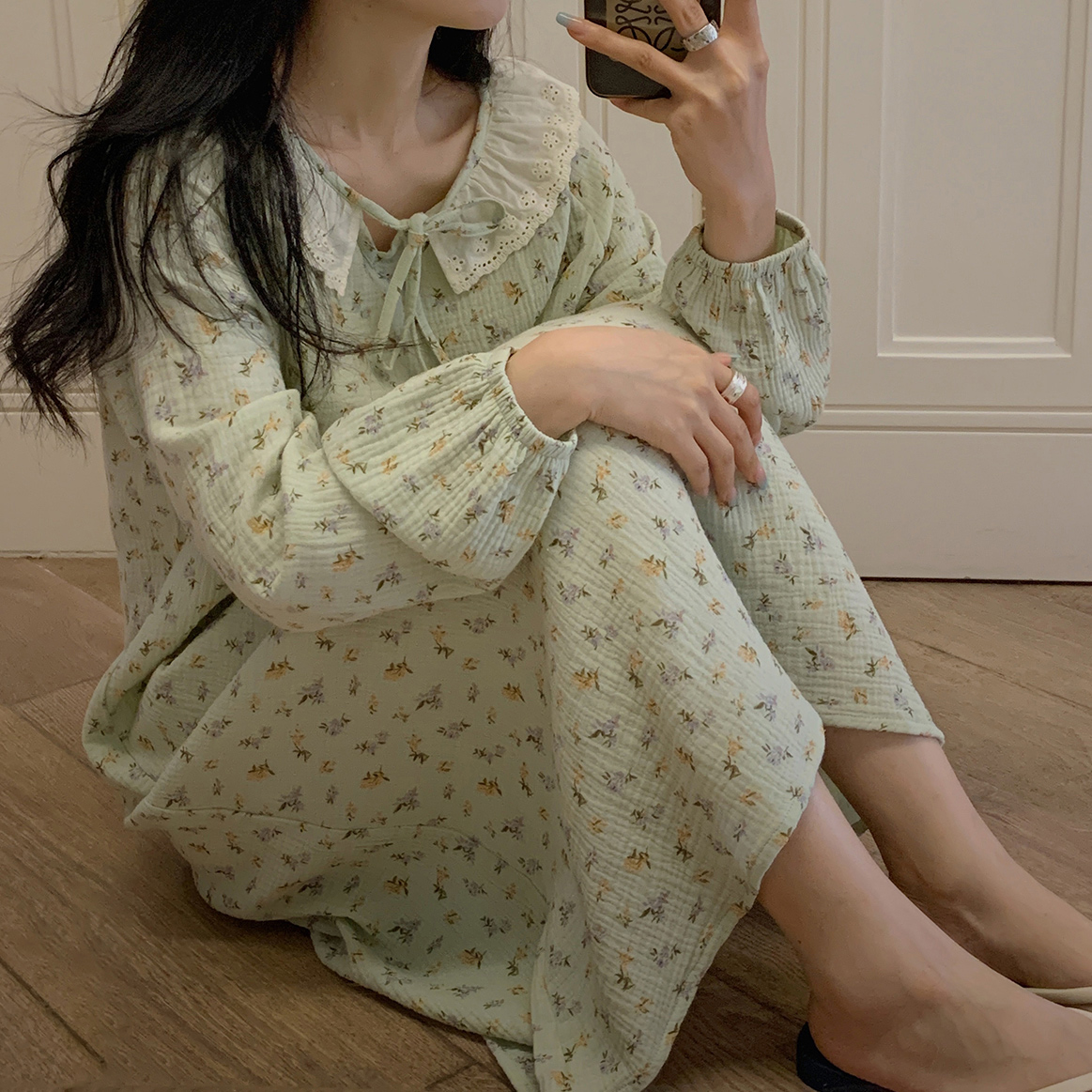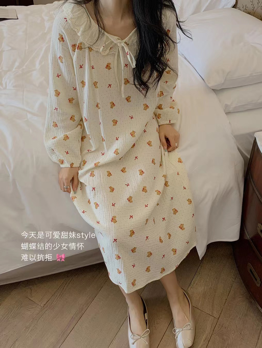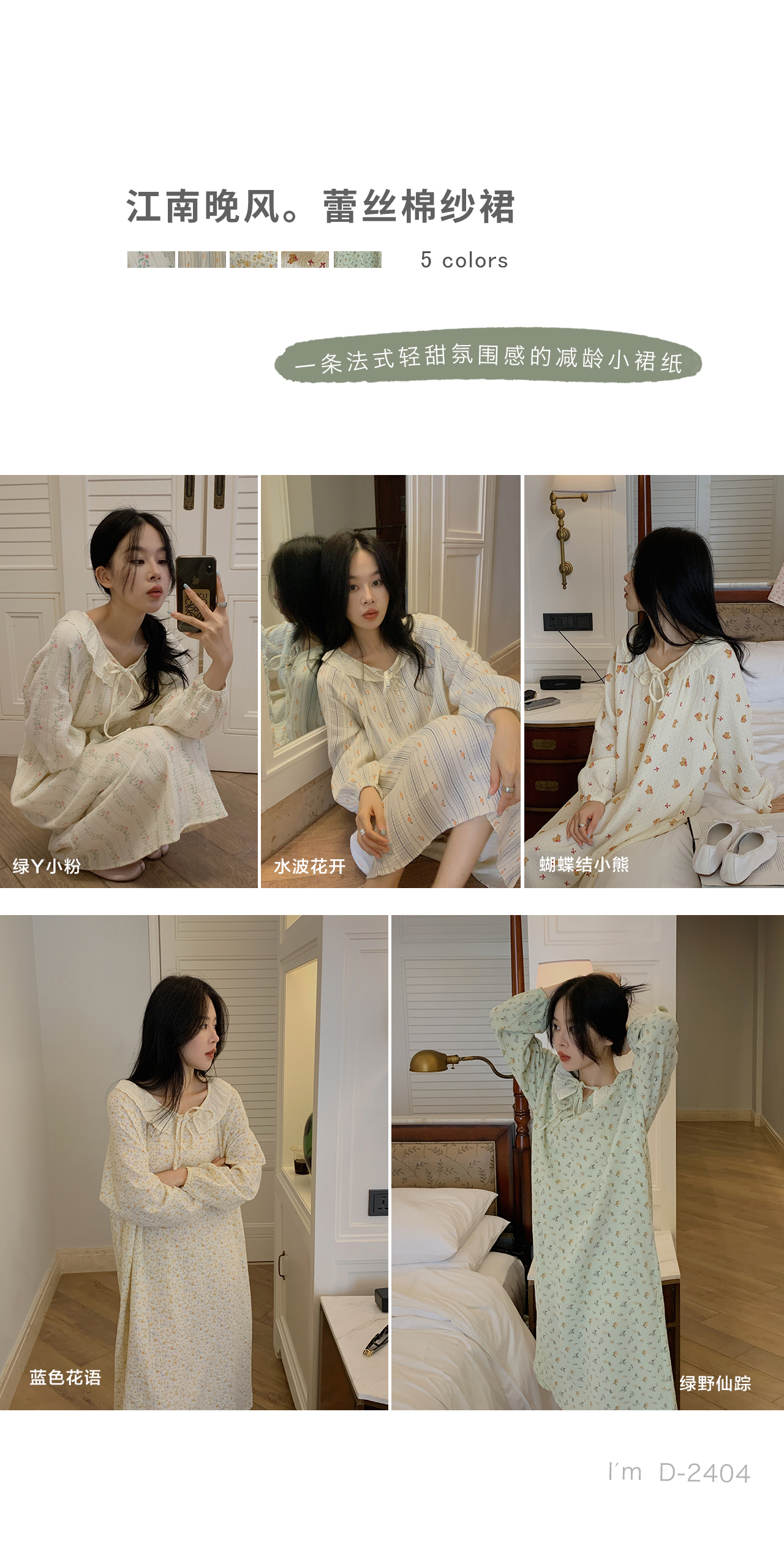 老米优品/ 3-5天! 美哭了!!100%双层婴儿棉《江南晚风。蕾丝棉纱裙》清甜少女氛围感 美宅小裙子 Q240328A