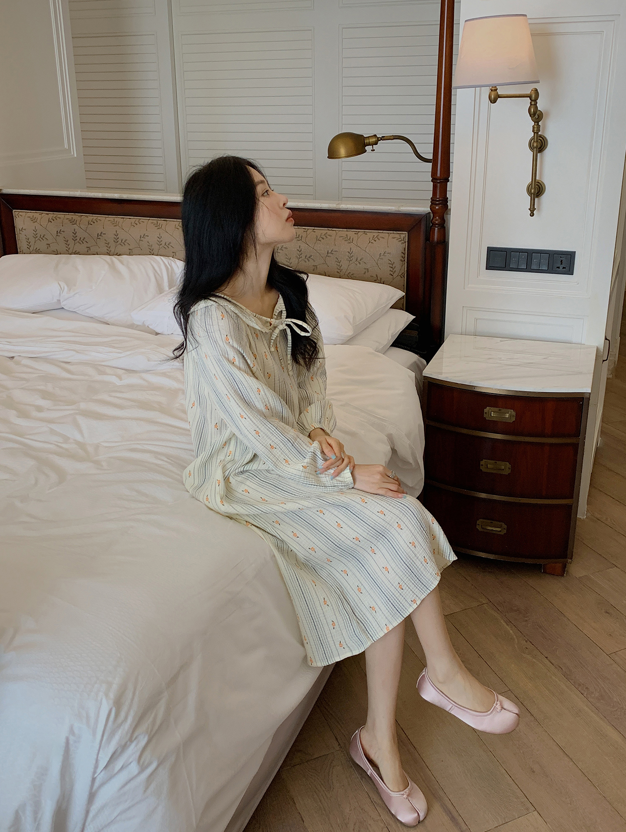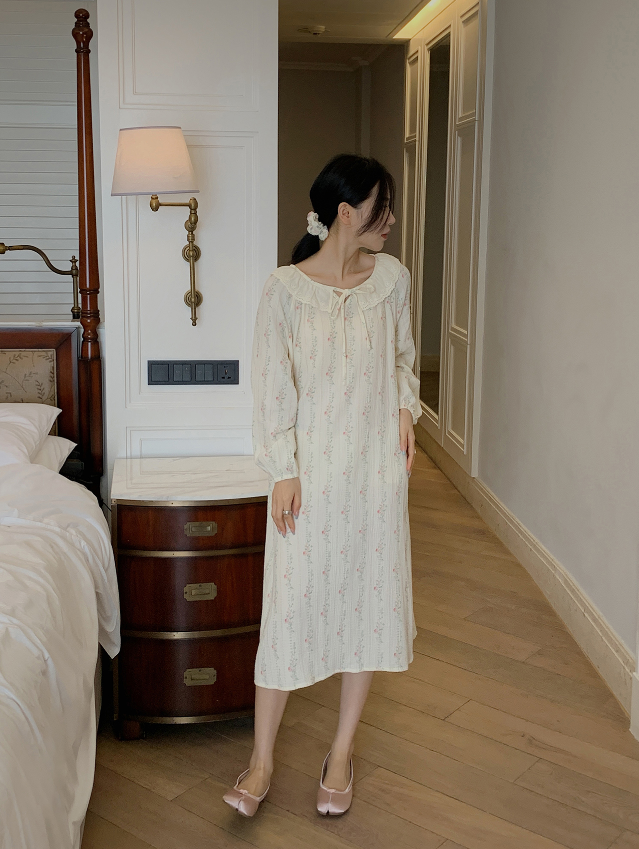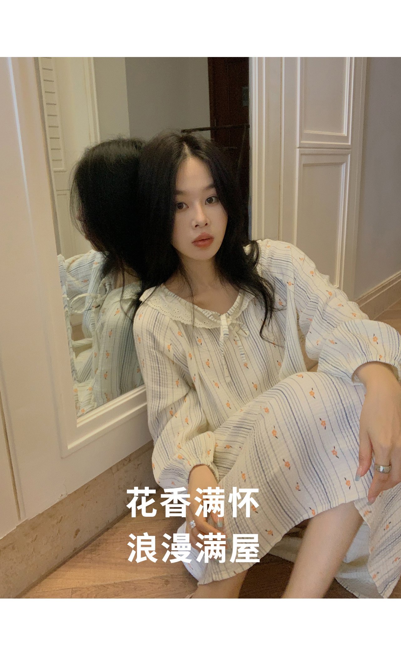 老米优品/ 3-5天! 美哭了!!100%双层婴儿棉《江南晚风。蕾丝棉纱裙》清甜少女氛围感 美宅小裙子 Q240328A