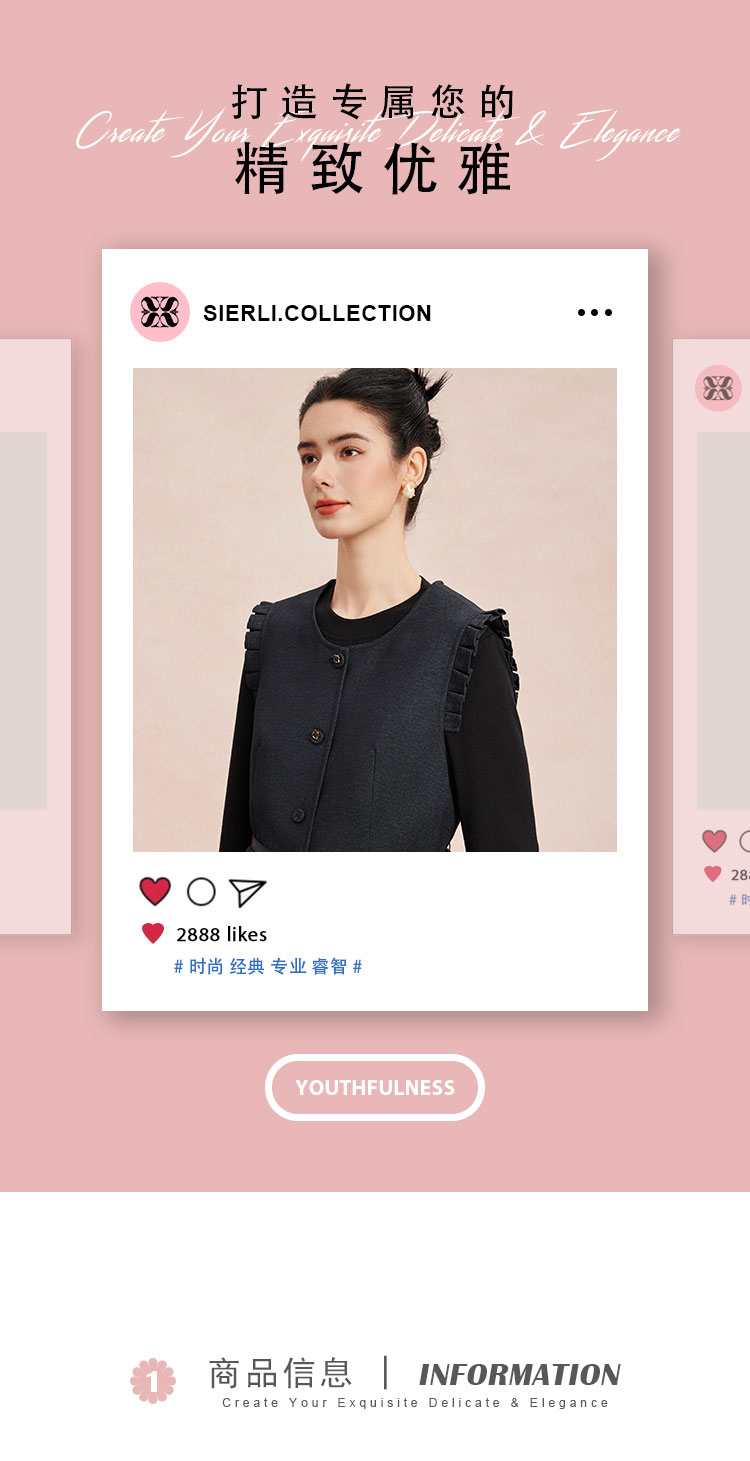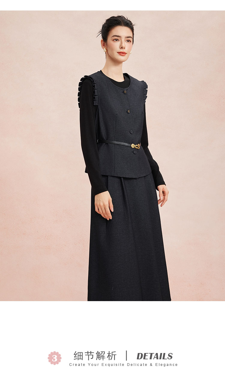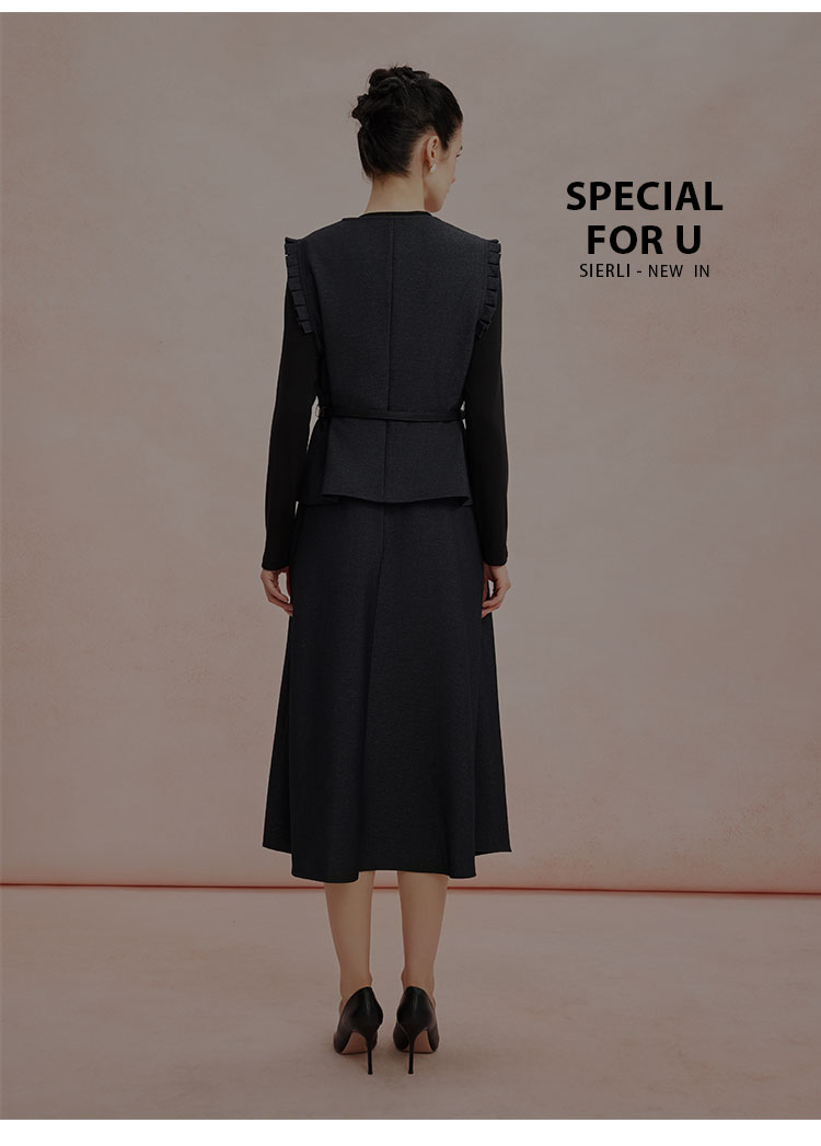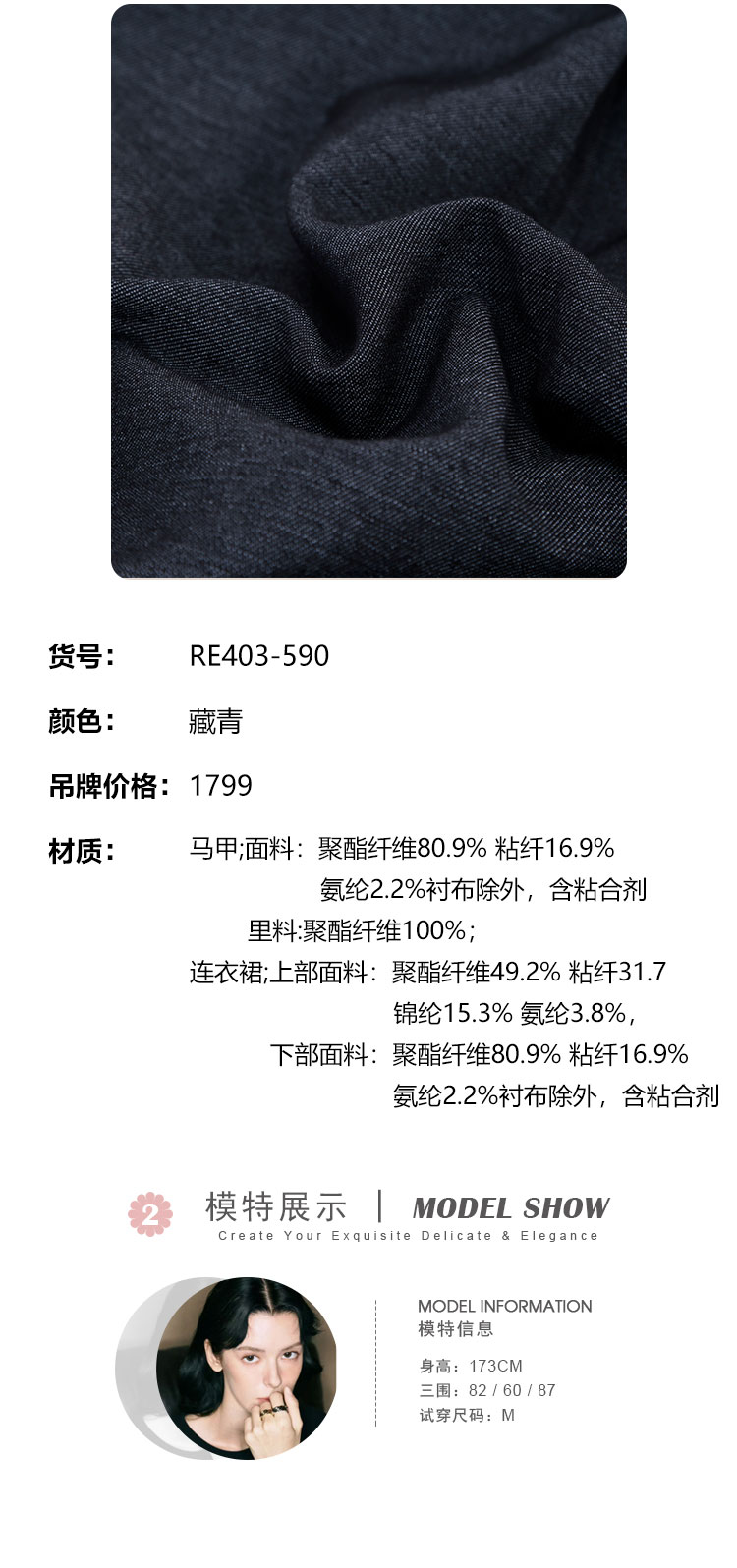 RE403斯尔丽26新款气质小香风圆领马甲搭配A型裙摆连衣裙免搭配套装