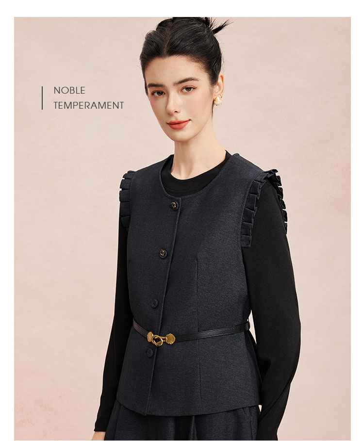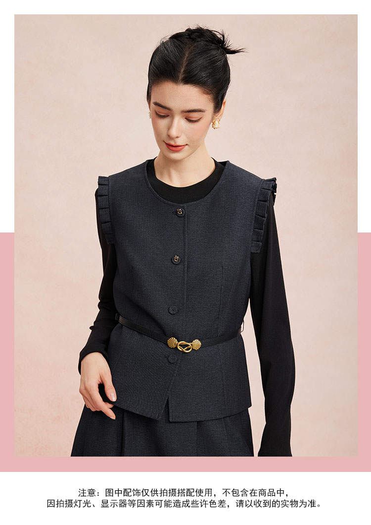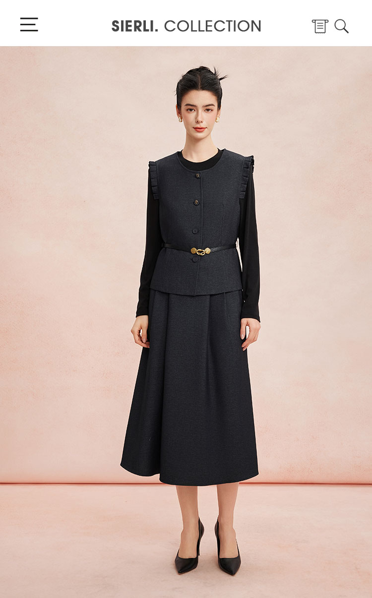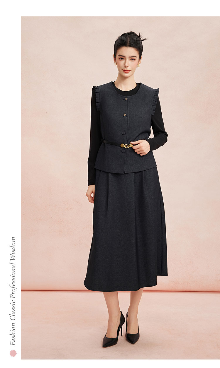 RE403斯尔丽26新款气质小香风圆领马甲搭配A型裙摆连衣裙免搭配套装