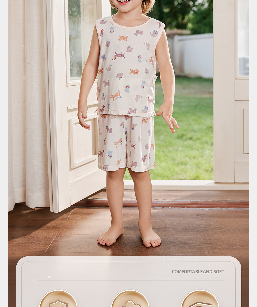 英氏儿童家居服夏季透气凉爽男童背心裤子2025新款YLPAJ2R001A YLTBJ2R002A YLTBJ2R001A YLCCJ2R001A