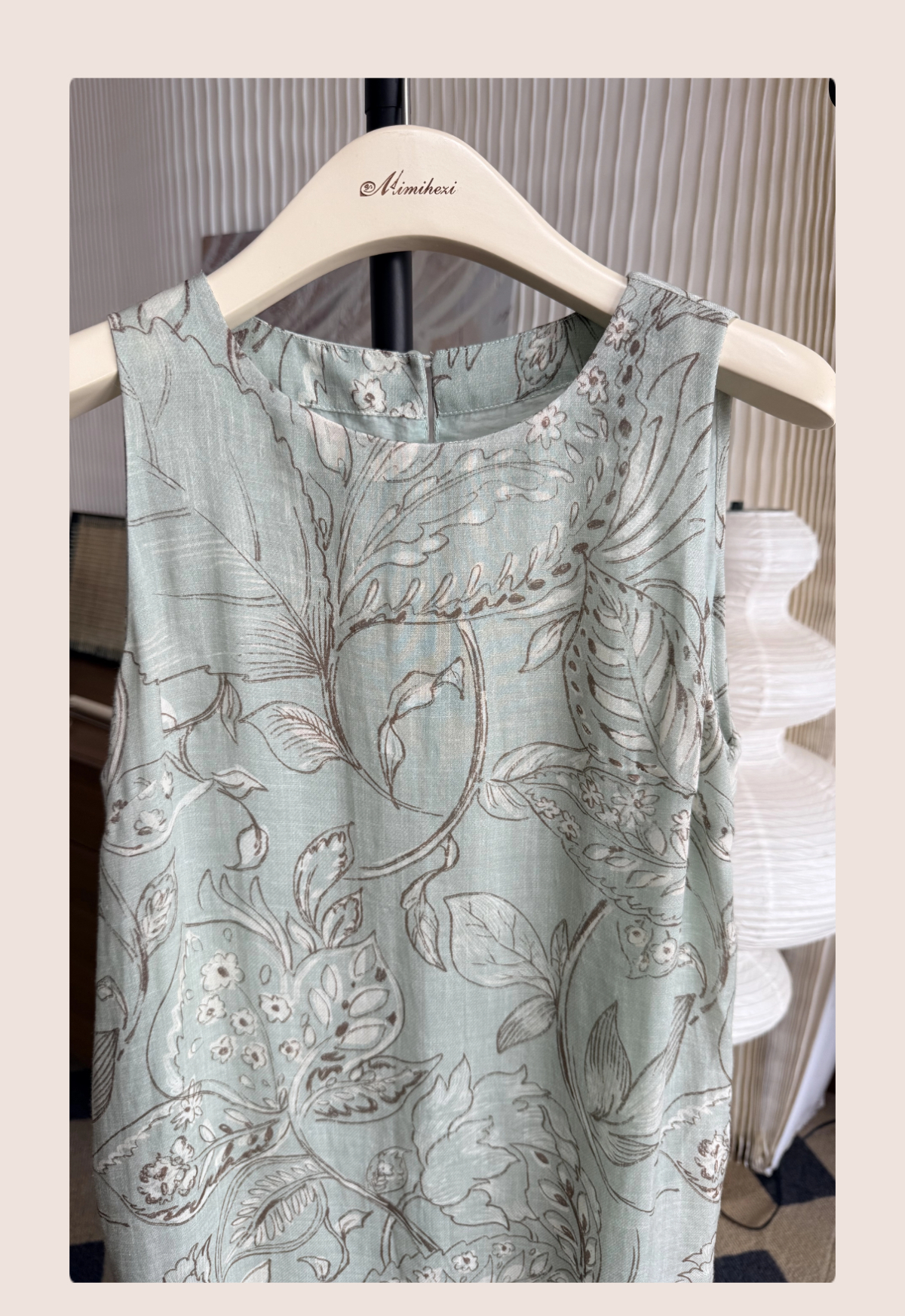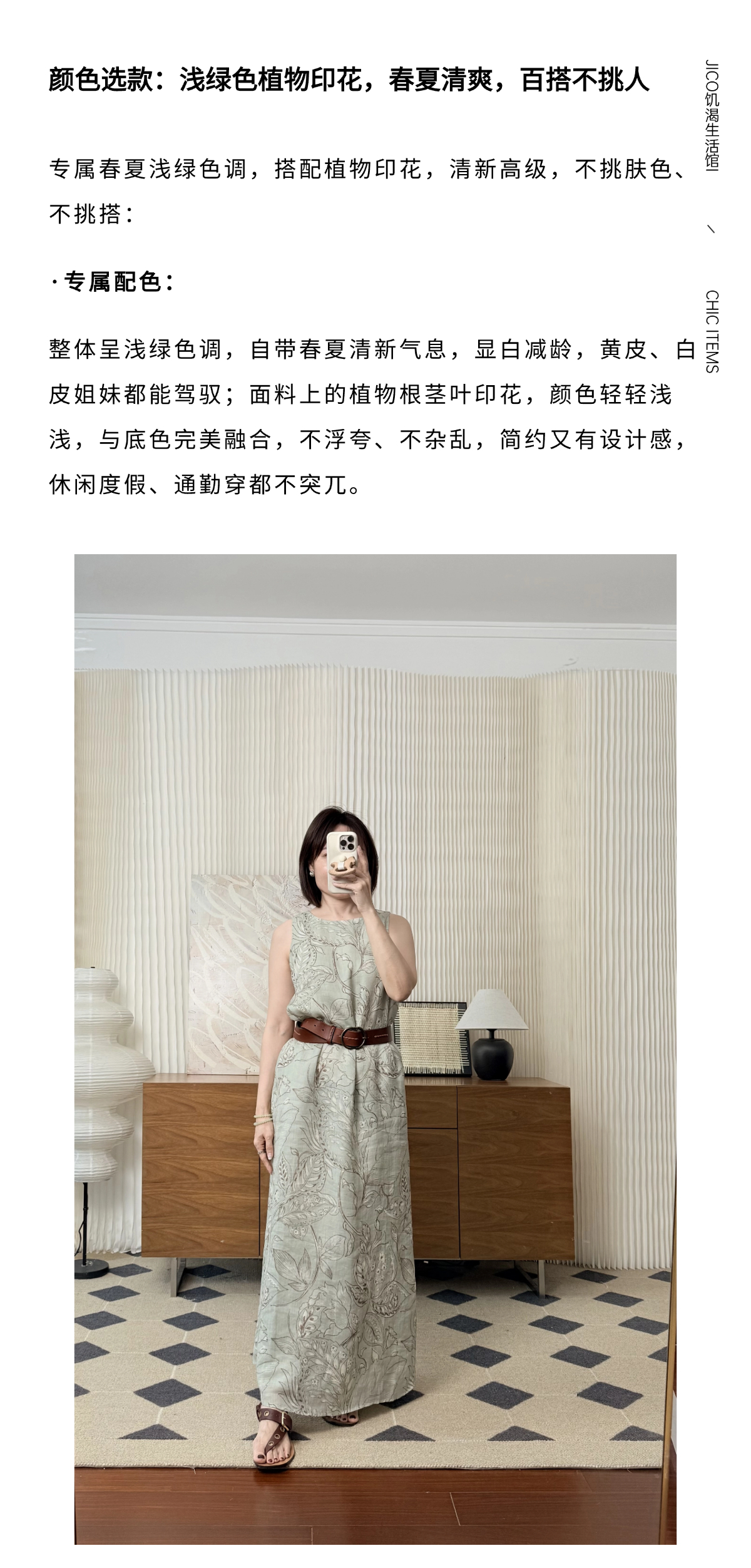 万物生长 苎麻莱赛混纺 超轻盈H型one-piece背心连衣裙 巨显白的粉绿色 南法度假和日常通勤都可