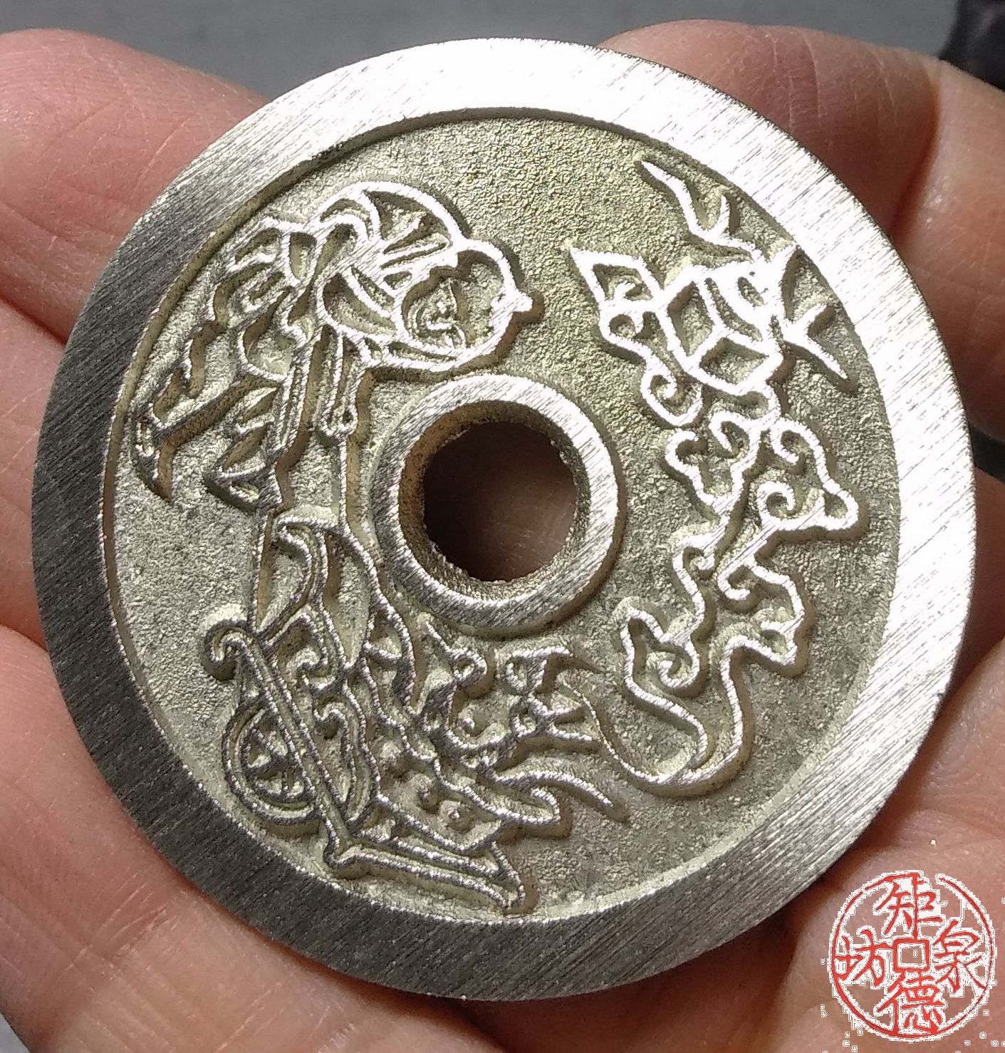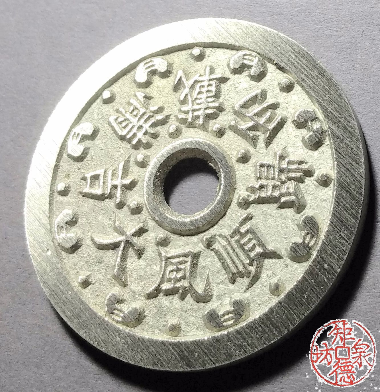 为了尽量还原古代钱币的文字神韵与时代铸造特征,每一枚都进行手工修刀、打磨。会有打磨痕迹、刻刀痕迹,铸造气孔或者微小沙眼,这正是手工与机器制作的区别,并非瑕疵。