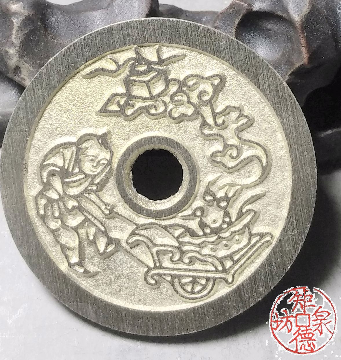 纯铜古法母钱翻砂铸造而成,容易上包浆。可用于文房镇纸、茶宠、杯子托、文玩垫、手把件……