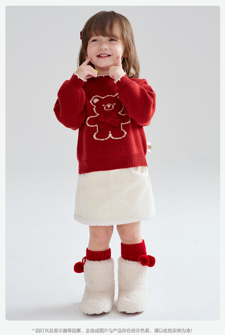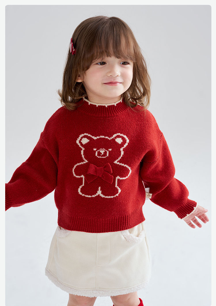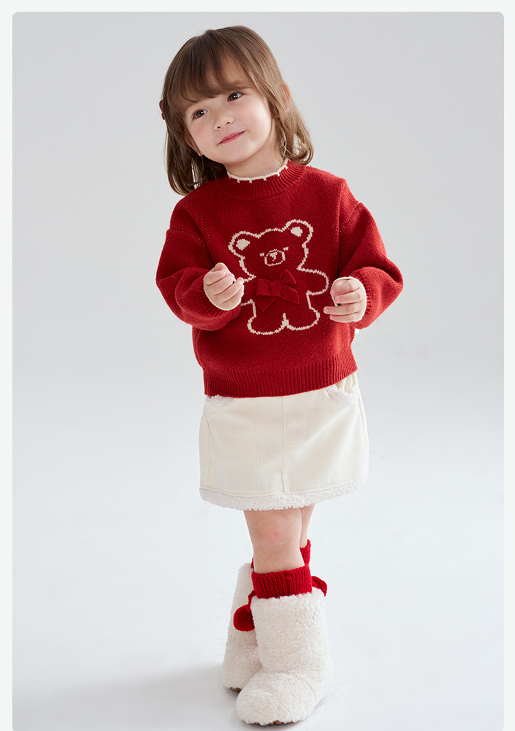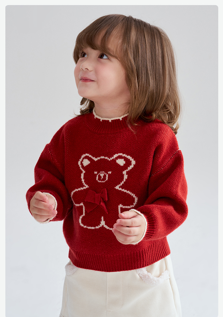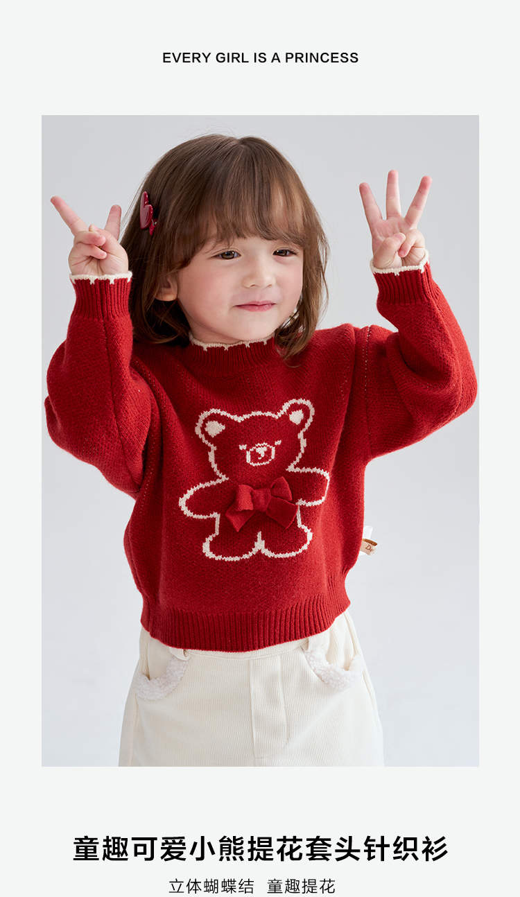 笛莎Deesha 2025冬季女童童趣可爱小熊提花套头针织衫
