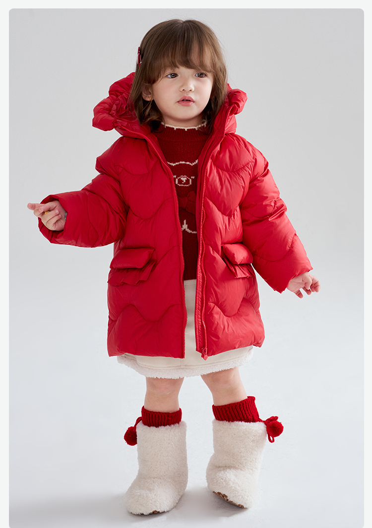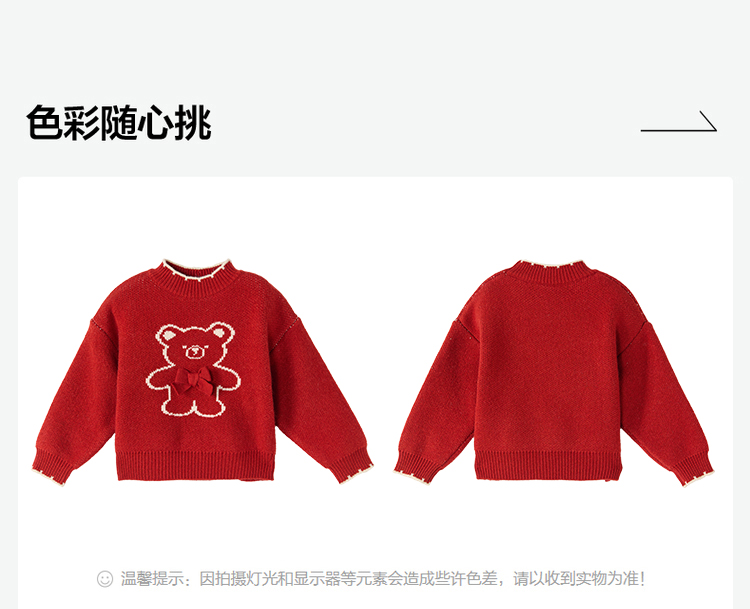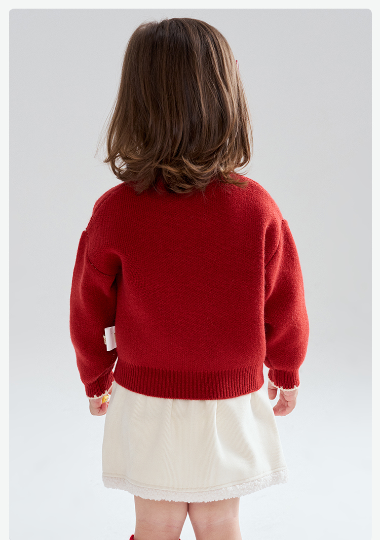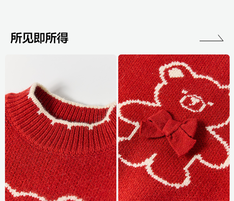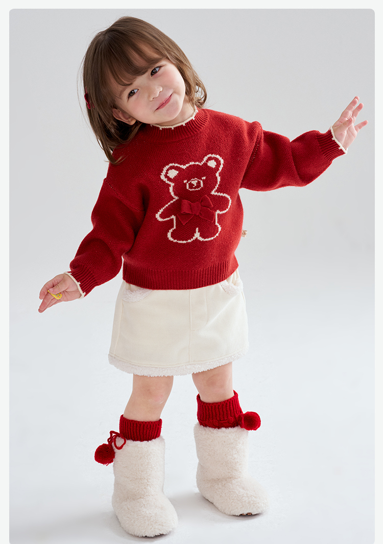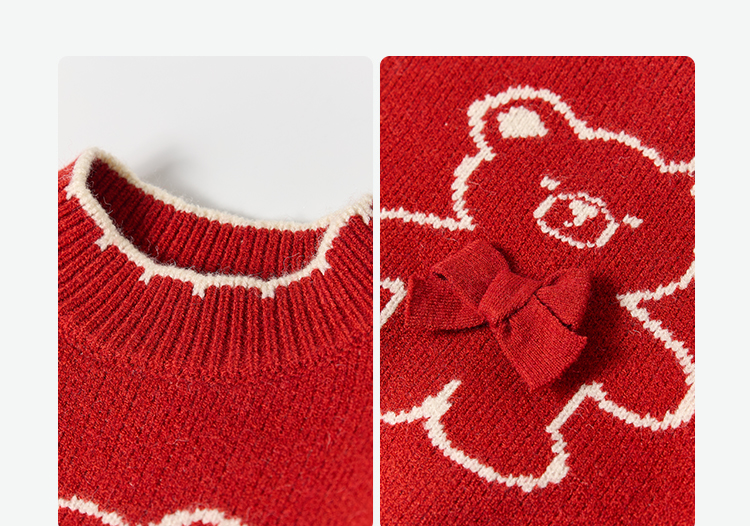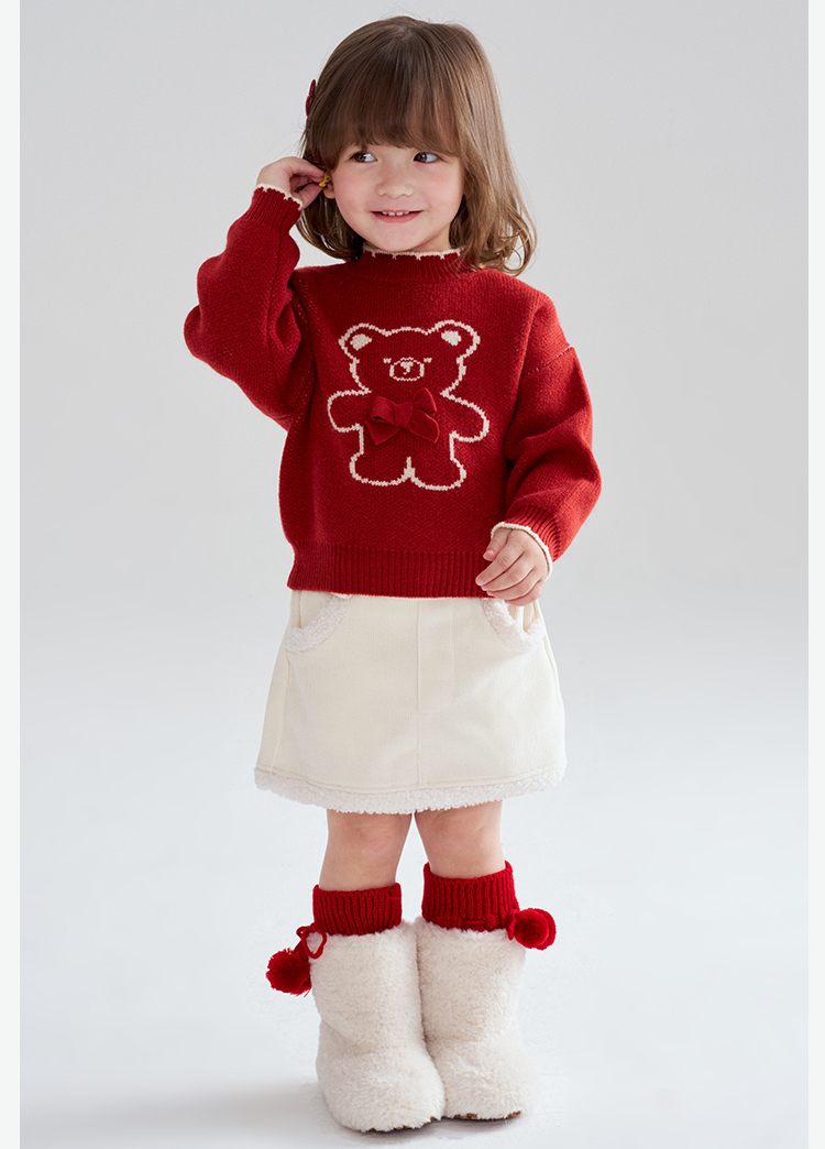 笛莎Deesha 2025冬季女童童趣可爱小熊提花套头针织衫