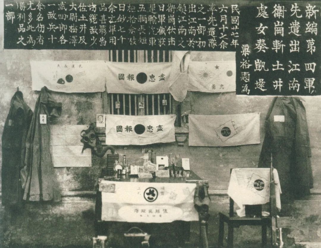 1938年春,日军占领了华中广大地区。新四军遵照中共中央关于向苏浙皖边挺进,放手发动群众,开展抗日游击战争,创建以茅山为中心的苏南抗日根据地的指示精神,组成新四军先遣支队,先期开赴苏南敌后,根据中央指示破坏京沪下蜀铁路,韦岗战斗的胜利,鼓舞了苏南军民的抗日斗志,扩大了新四军的影响。图为韦岗战斗战利品和粟裕的祝捷诗。