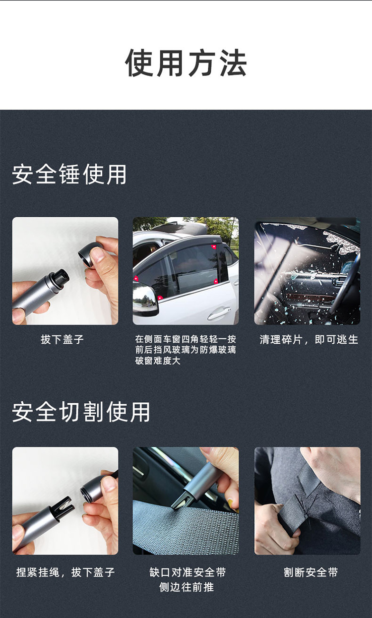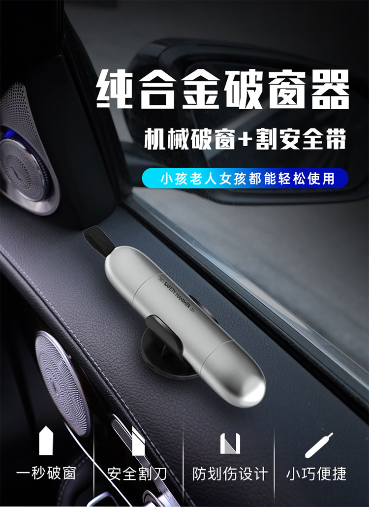【实付满199送钥匙扣】【纯合金安全锤破窗器A2】便携汽车安全锤应急逃生破窗器多功能车载用品