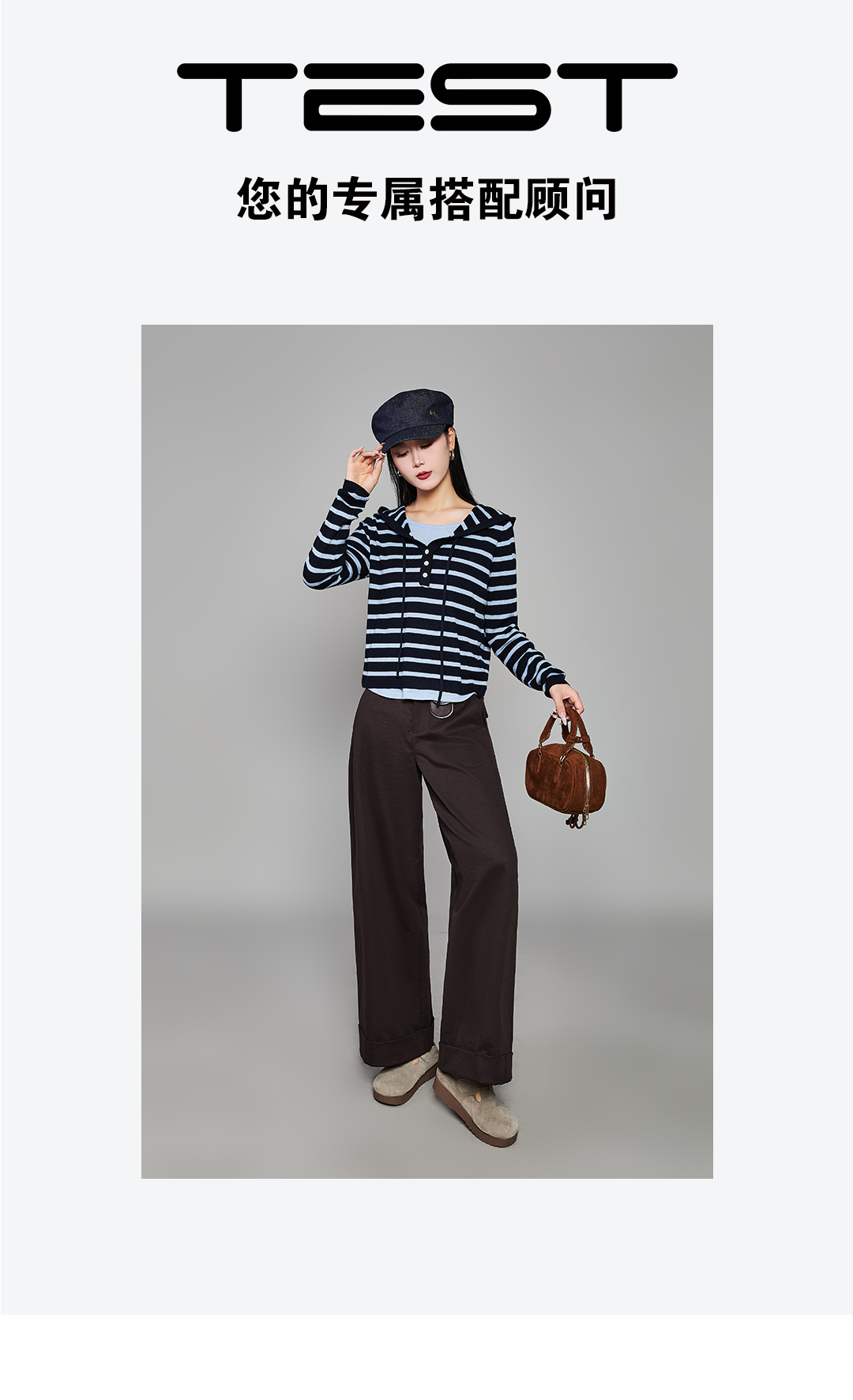 冬上新海军风条纹连帽宽松休闲长袖毛衣1254010 商品图2