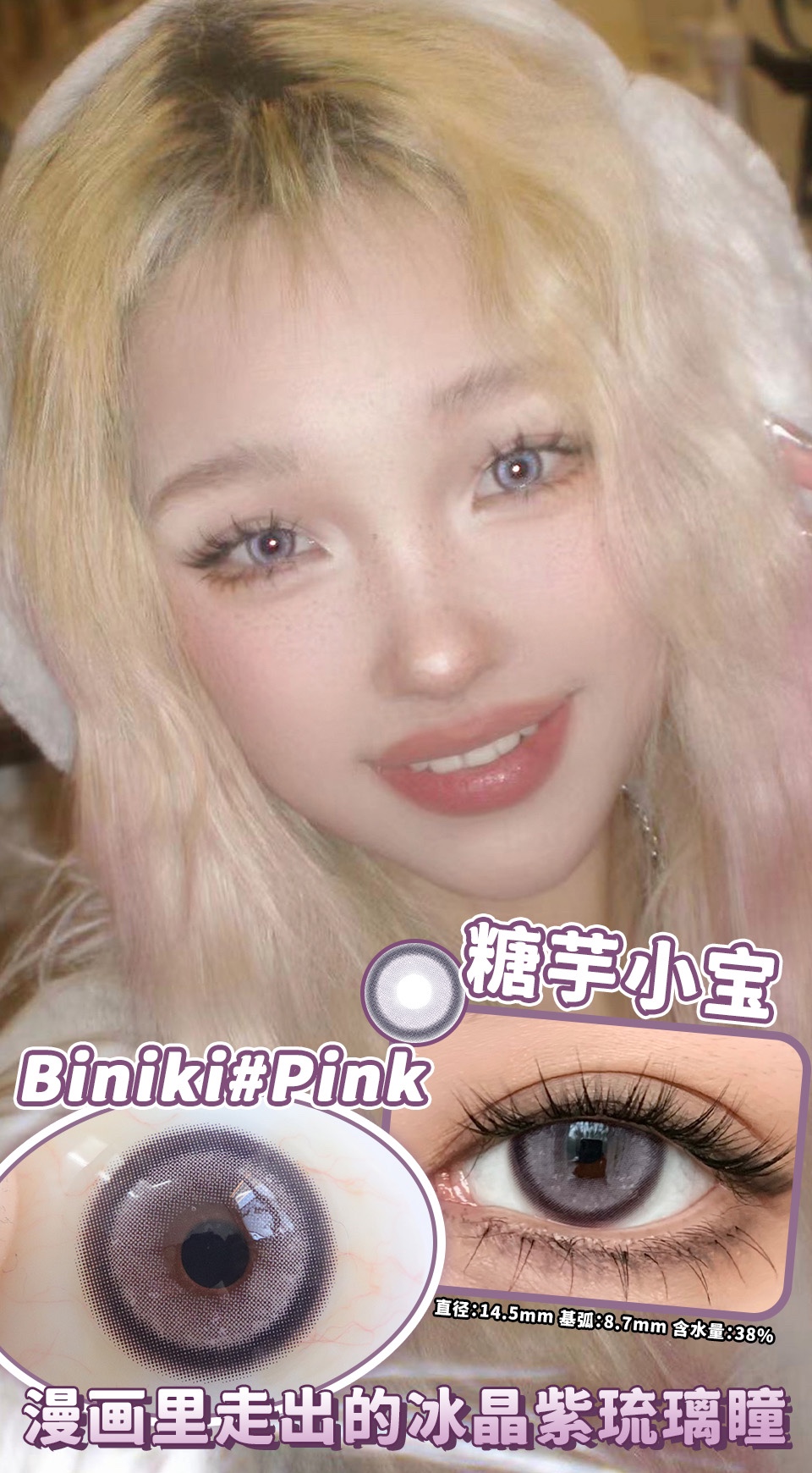 clairecolor 糖芋小宝 紫 14.5mm 年抛 含硅水凝胶