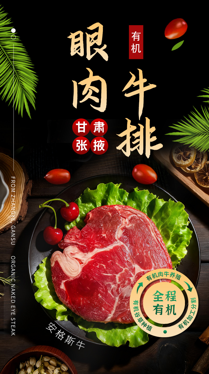 金陇雪 原切牛排 谷饲 国产牛肉生鲜食材 眼肉牛排200g