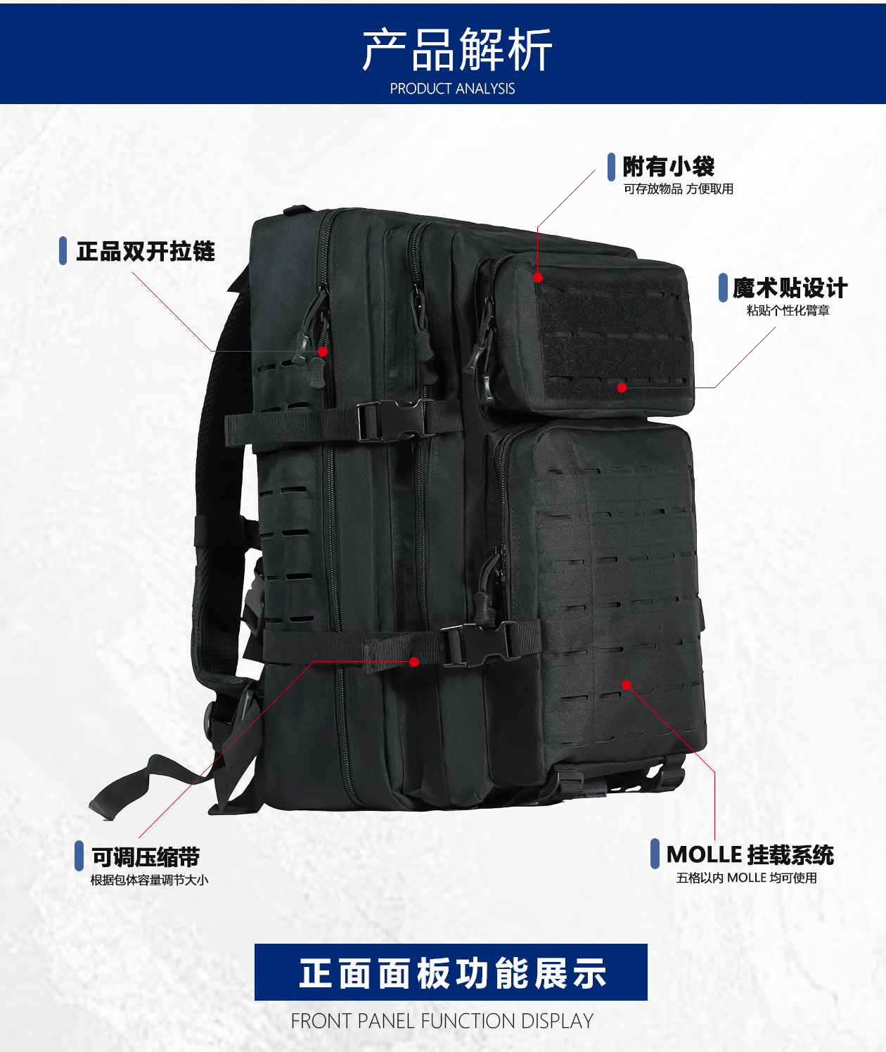 共助通勤双肩包 户外运动多功能双肩旅行包魔术贴