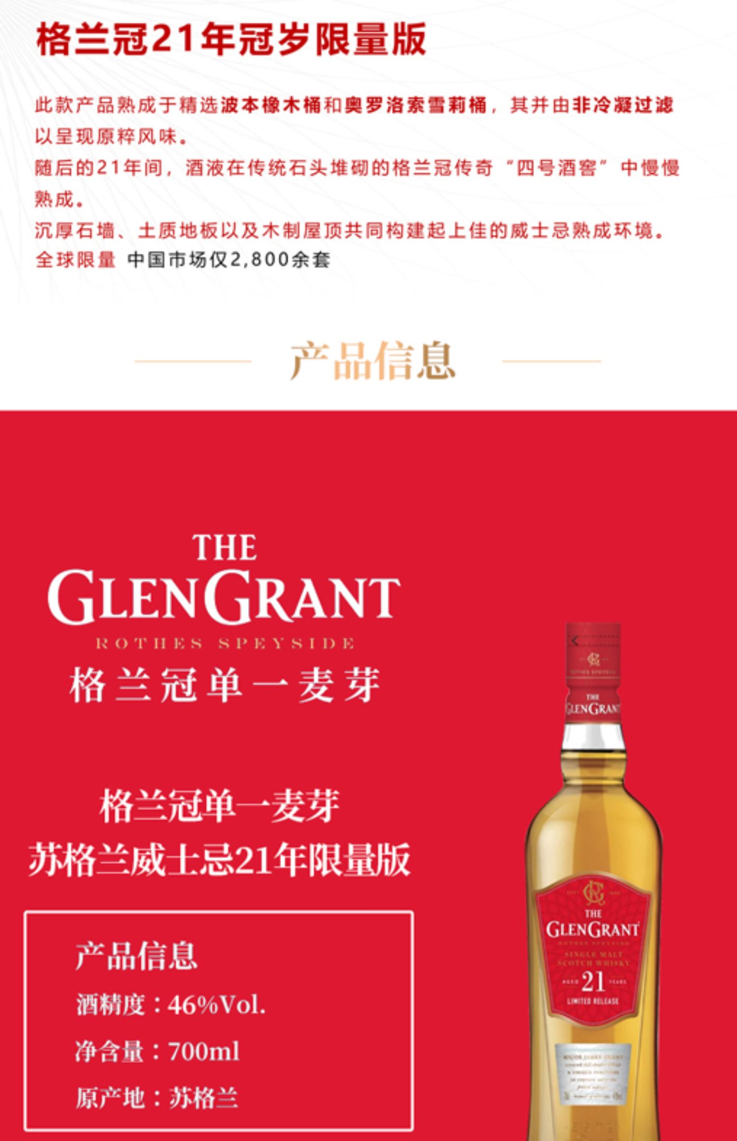 格兰冠(Glengrant)21年单一麦芽苏格兰威士忌(限量版)