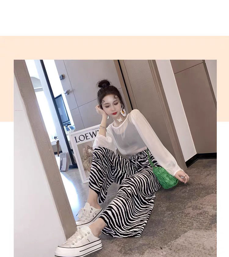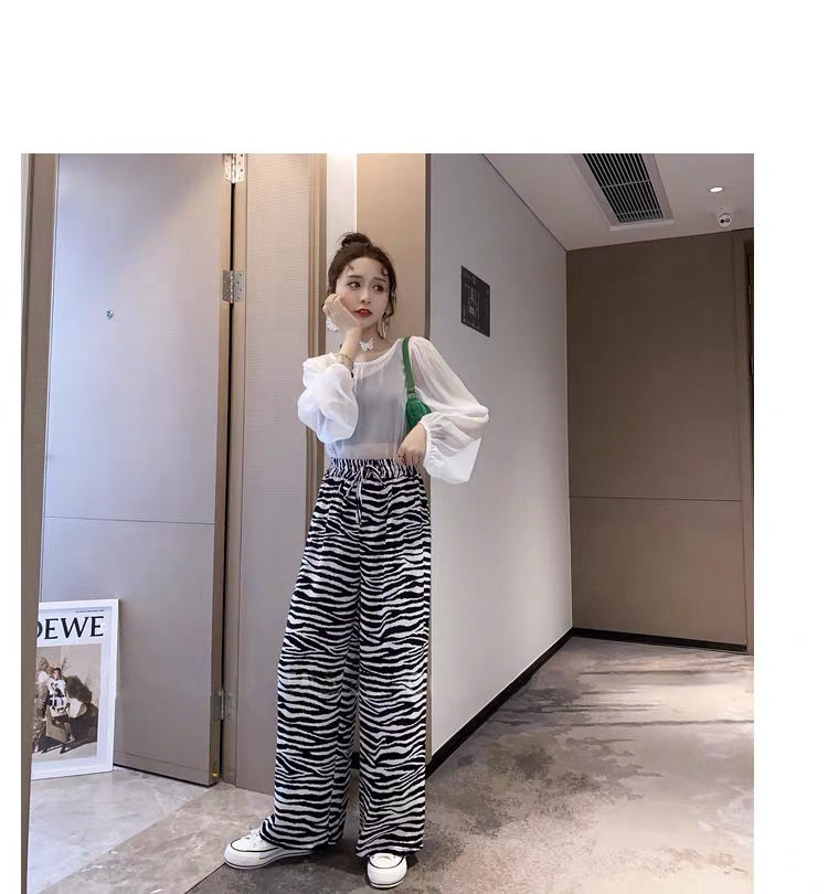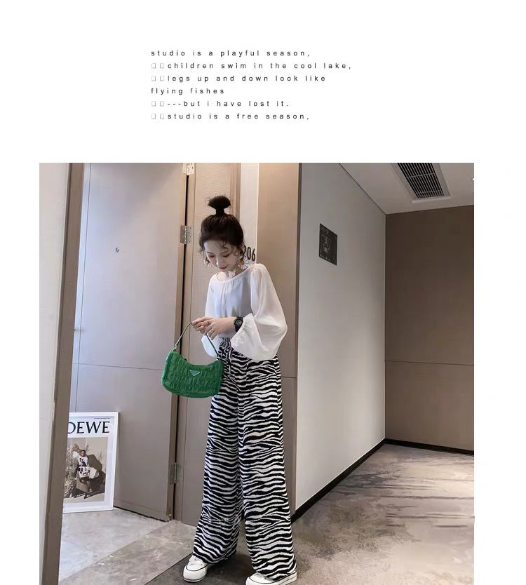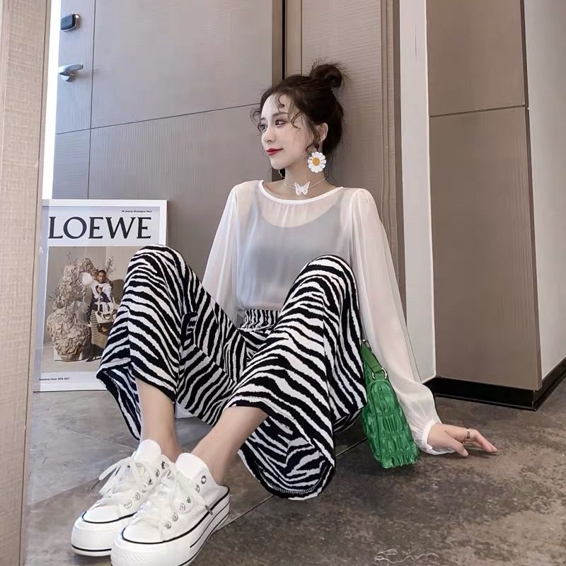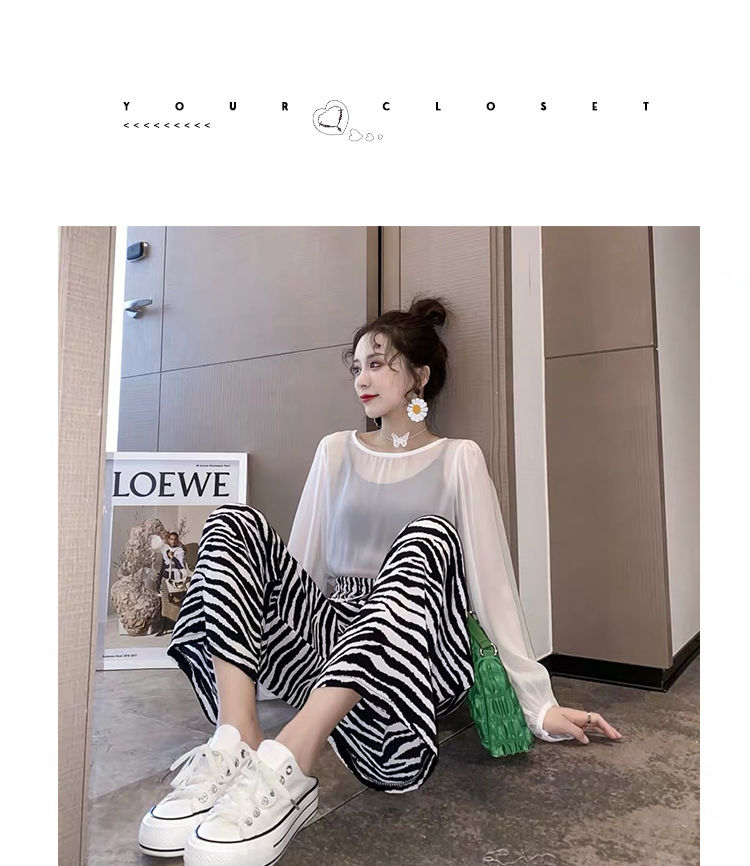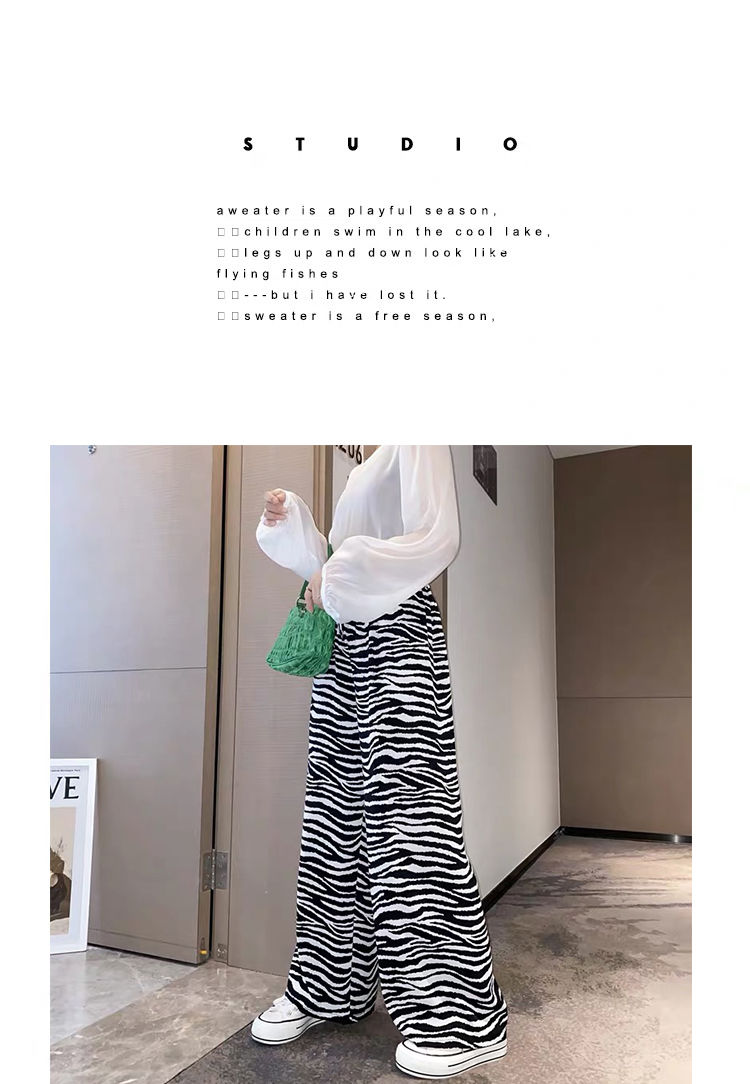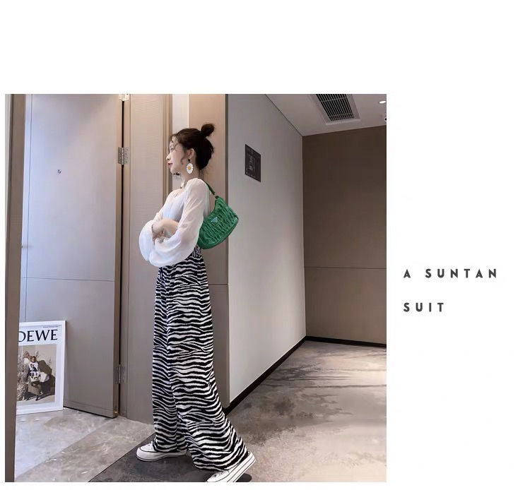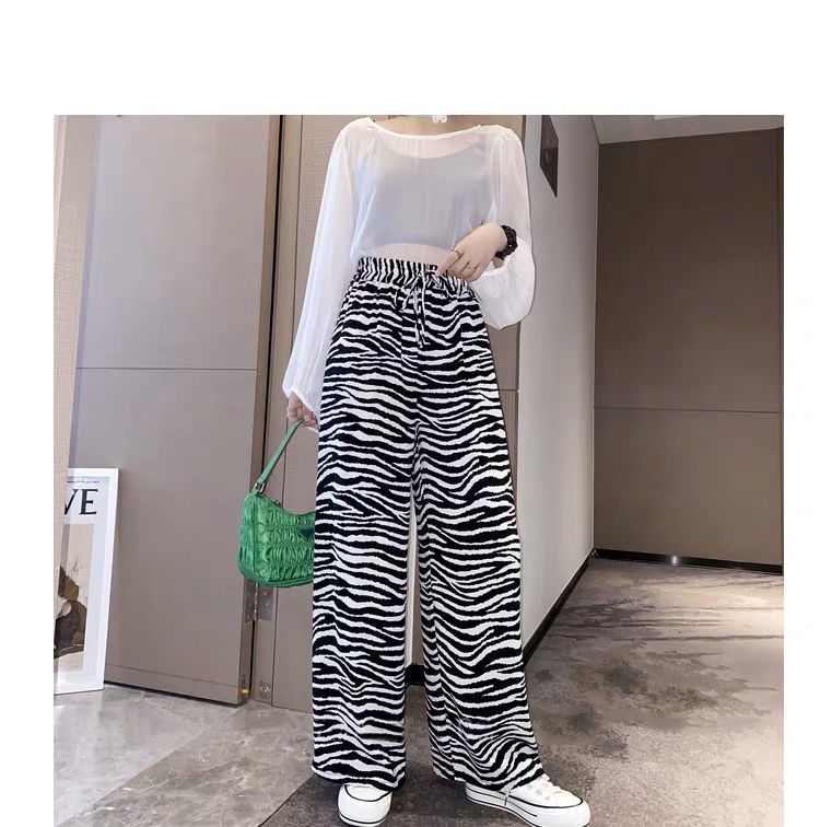 女士阔腿裤夏季薄款高腰垂坠感宽松九分洋气时尚欧美斑马纹小个子