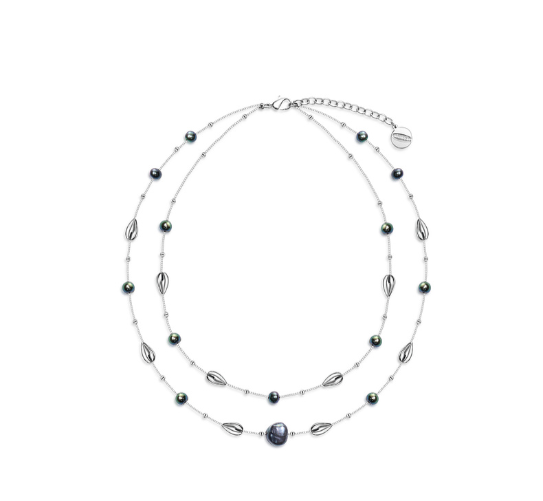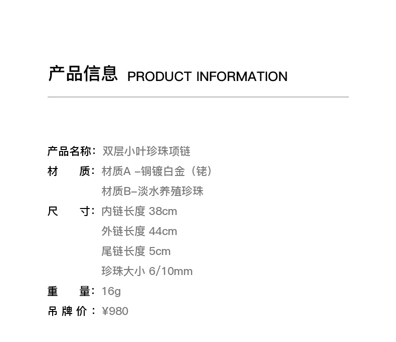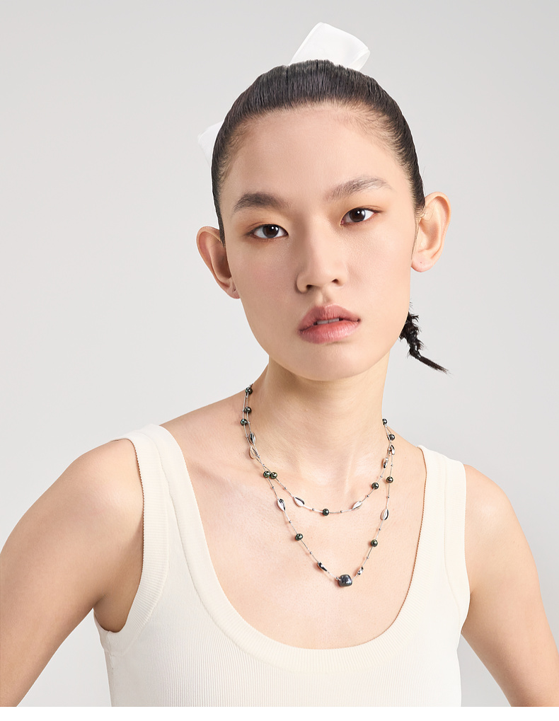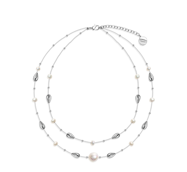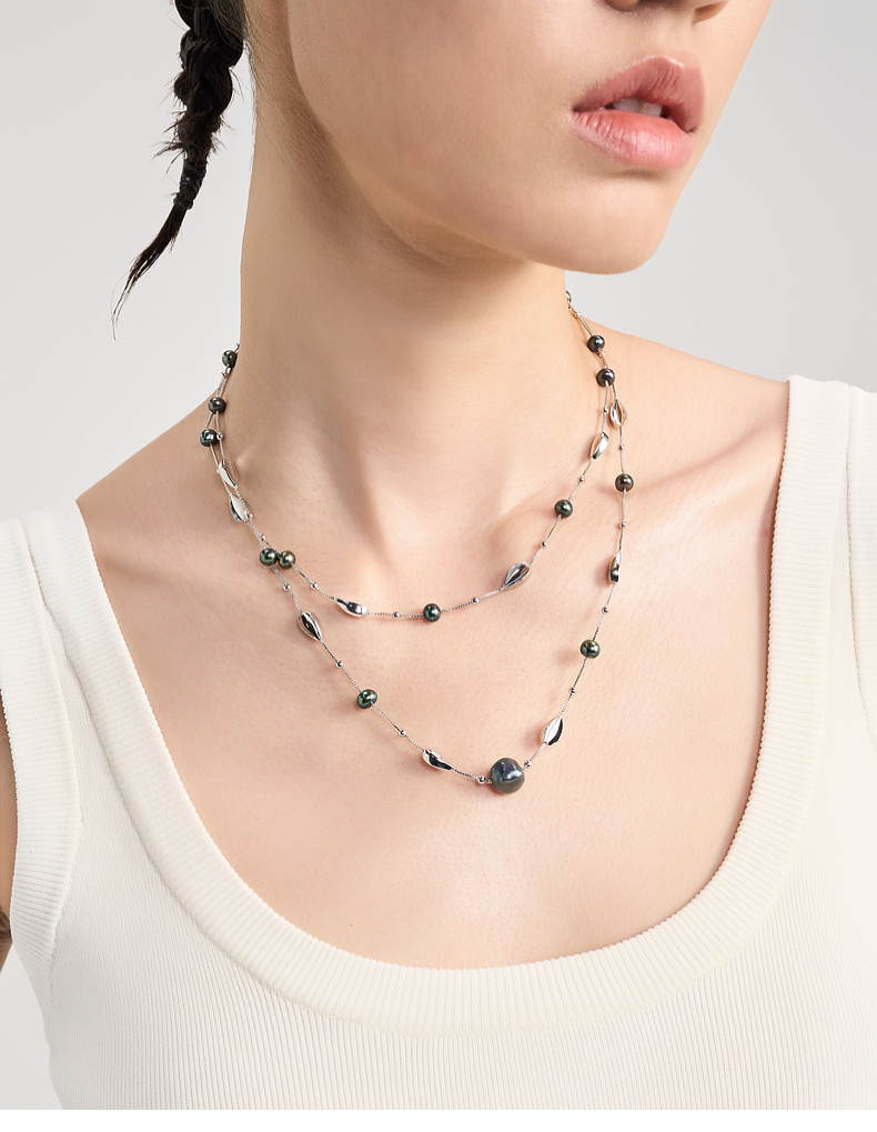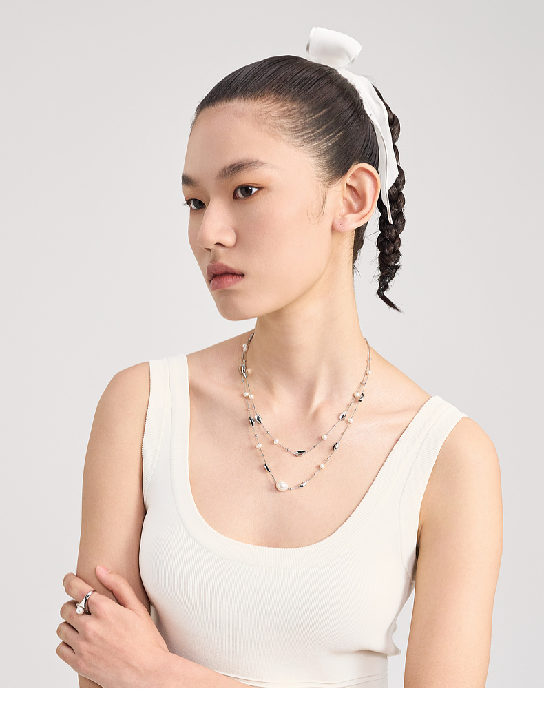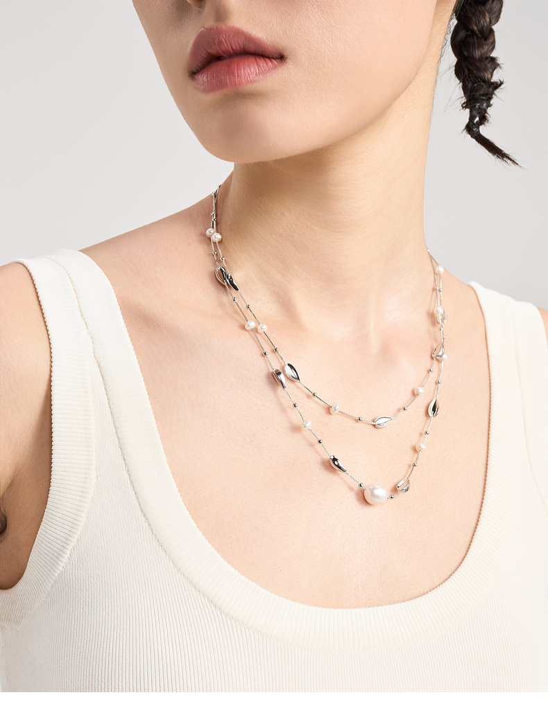 lost in echo2024夏季新款原创双层小叶不规则淡水珍珠项链配饰女