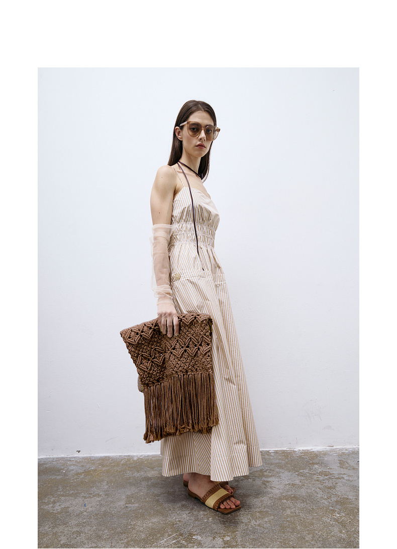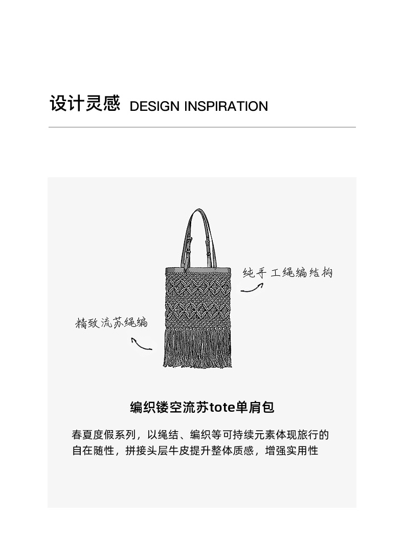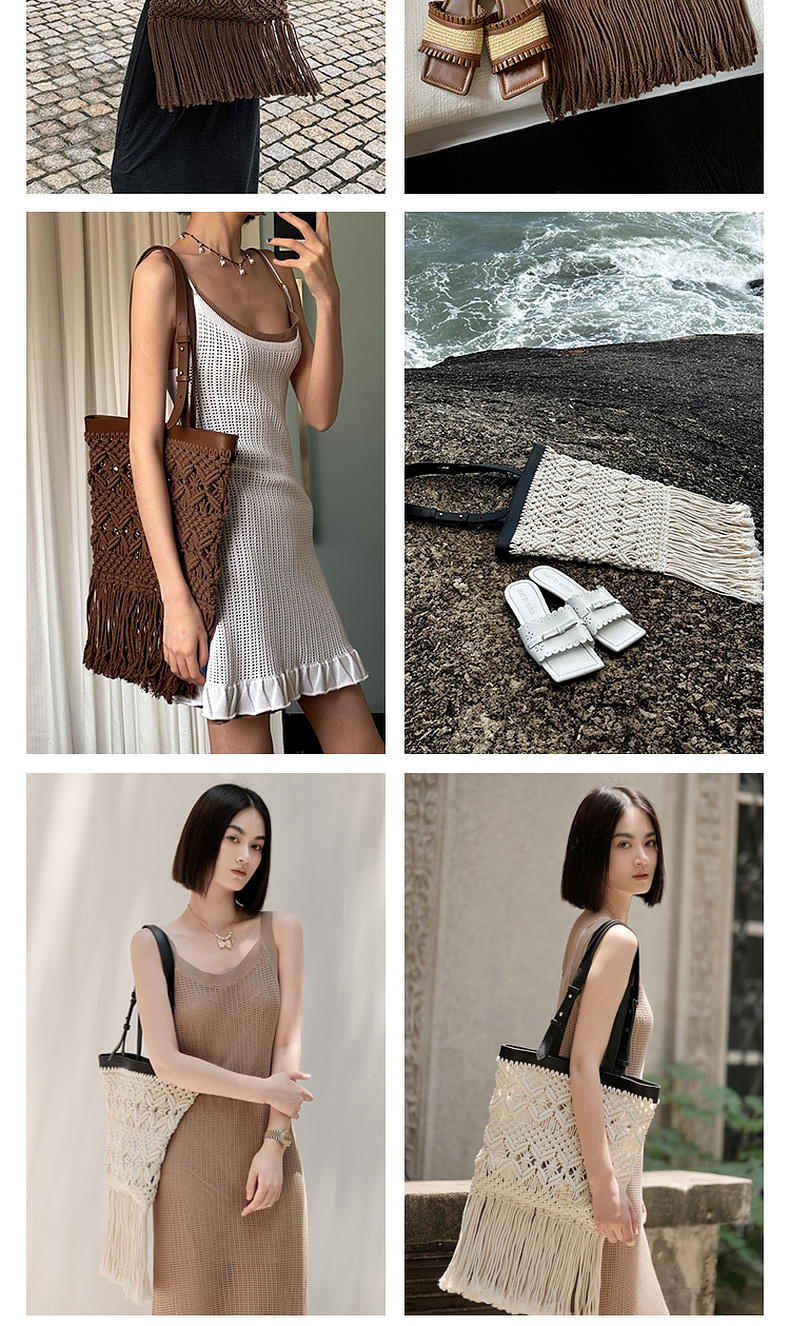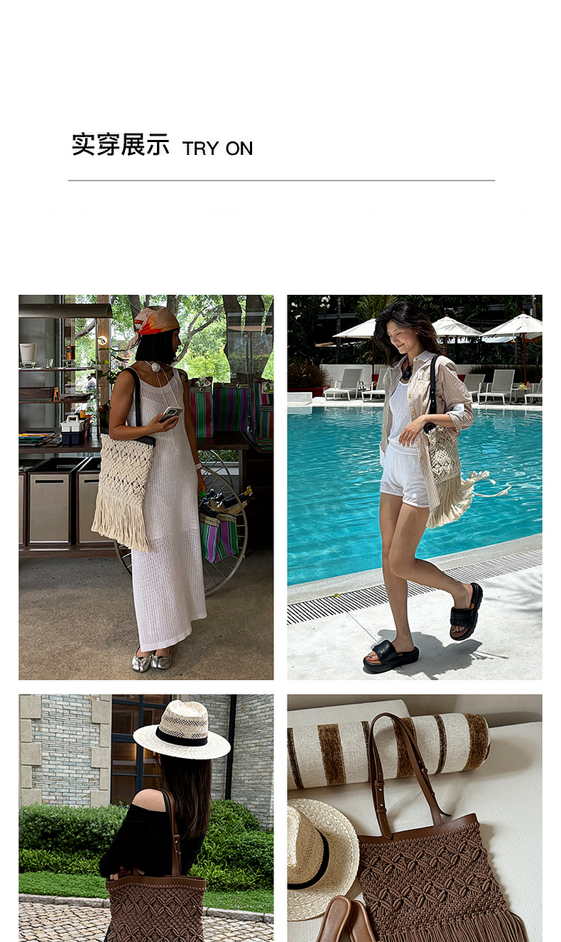 lost in echo2025春夏新款度假风手工编织镂空流苏tote单肩包