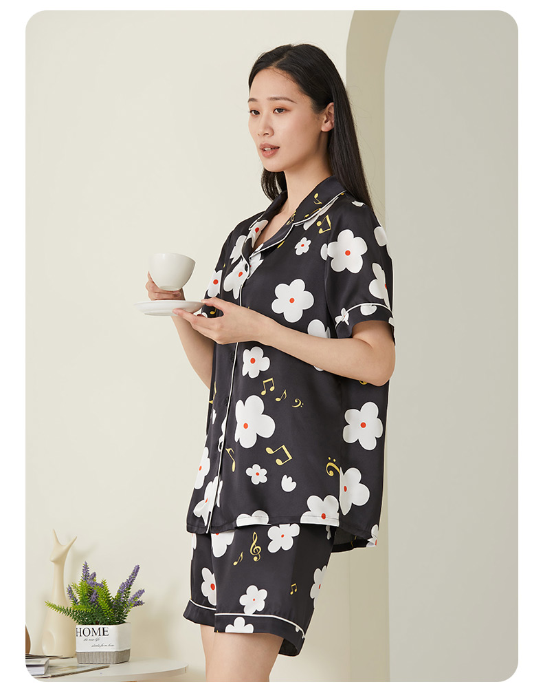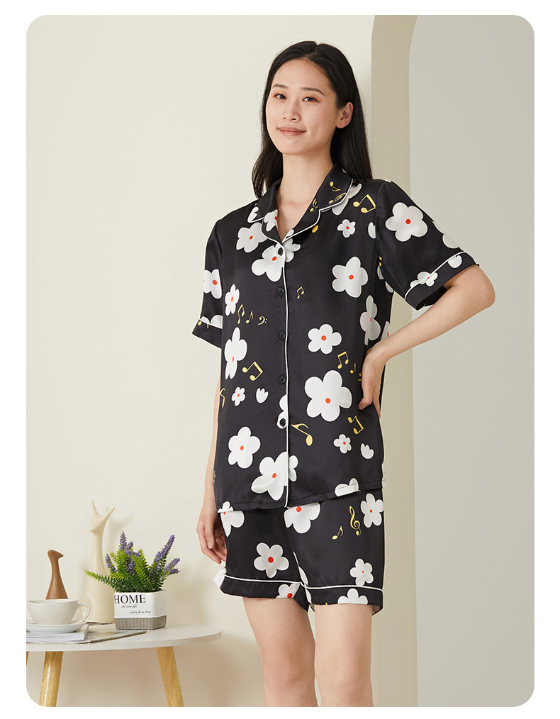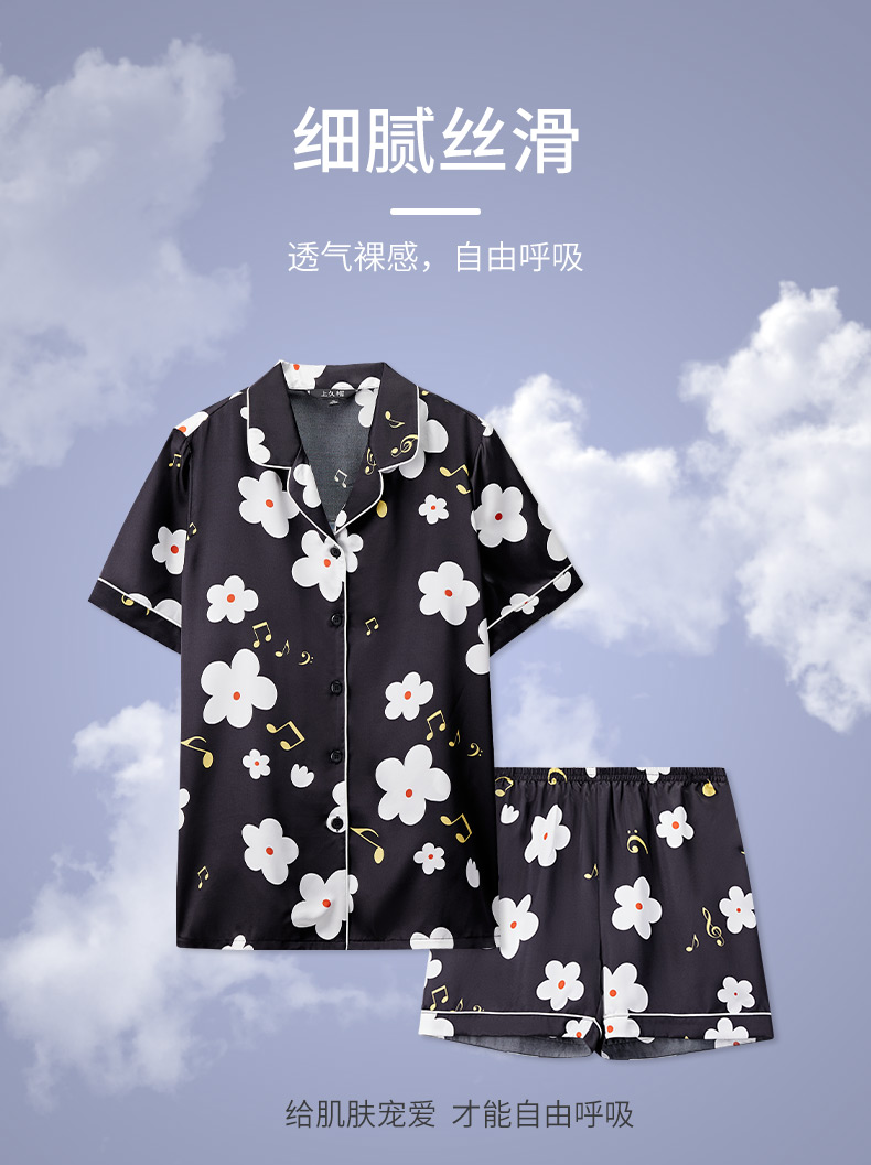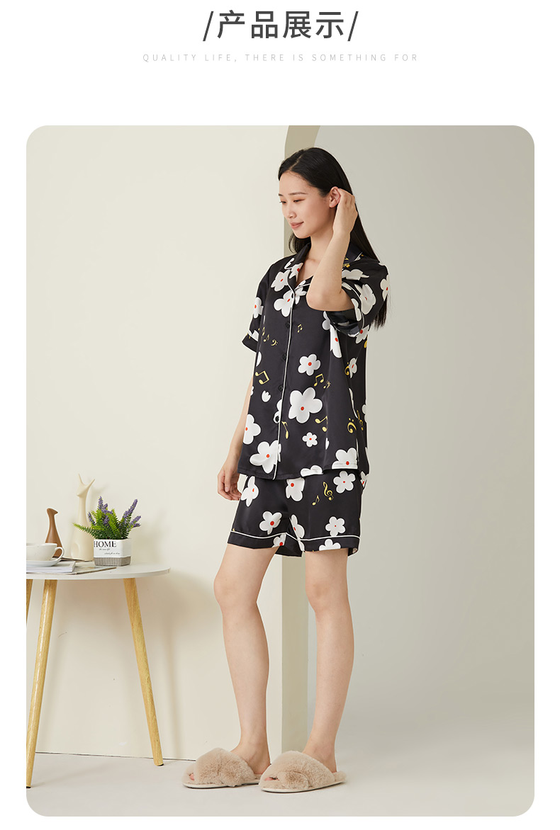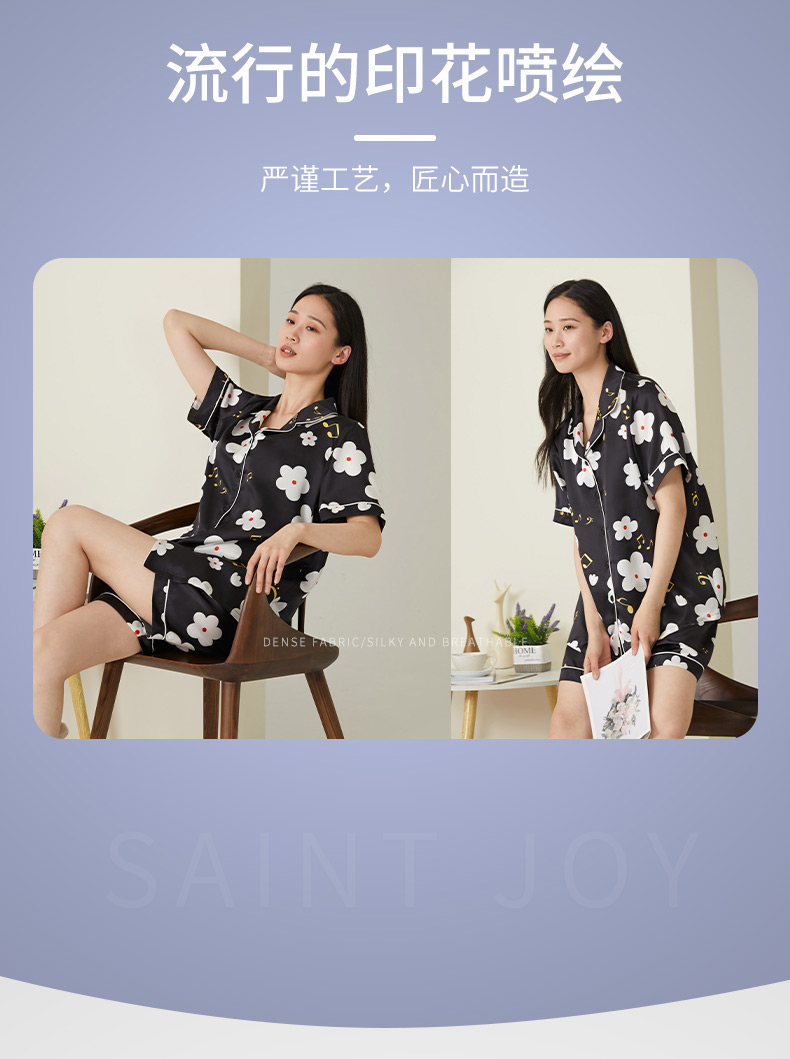 SAINTJOY/上久楷女式黑色印花短袖睡衣套装 JWS21009
