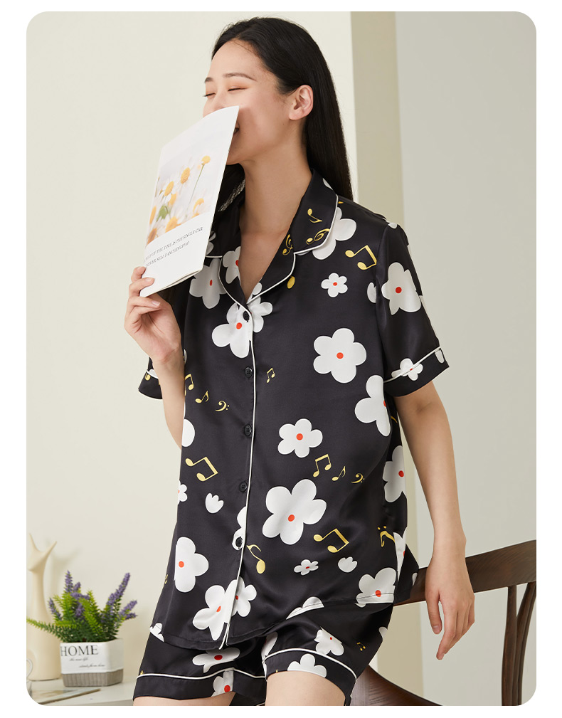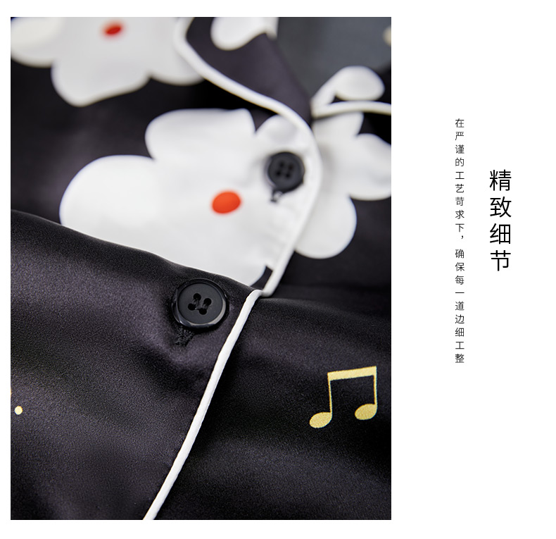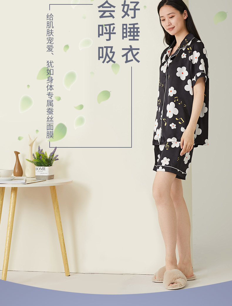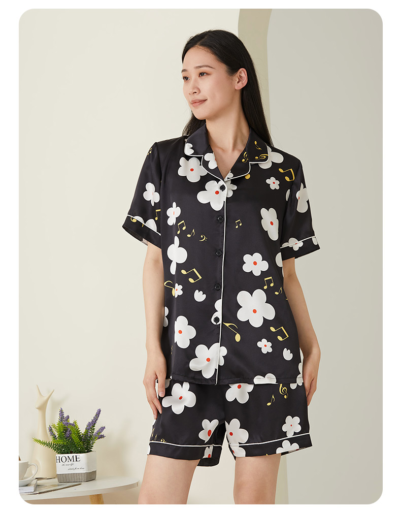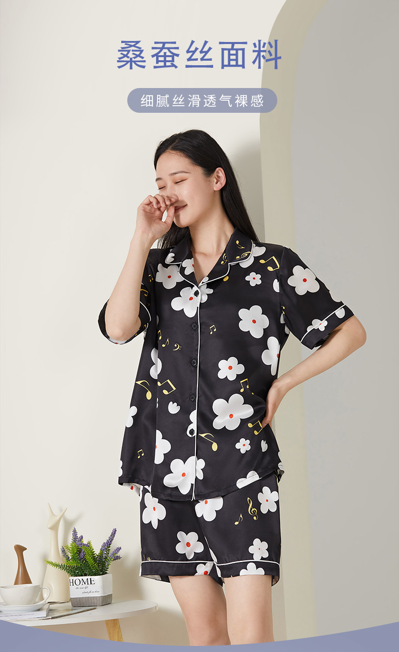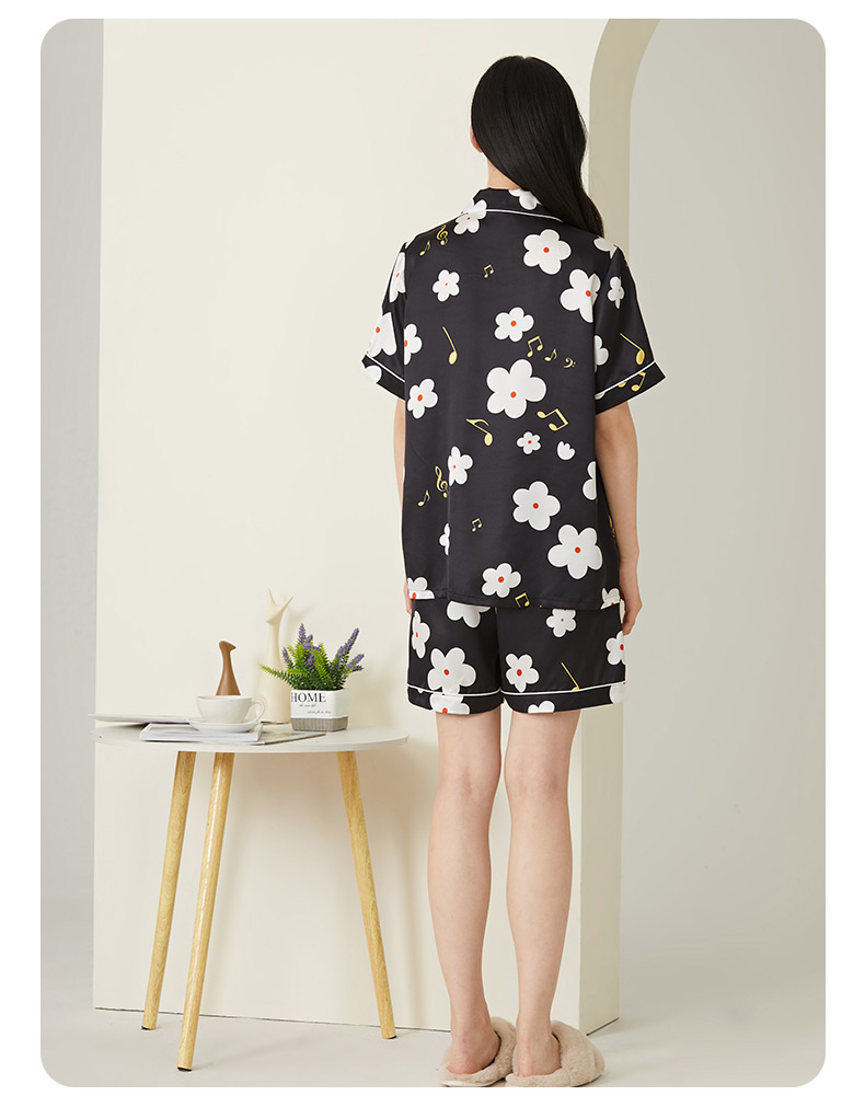 SAINTJOY/上久楷女式黑色印花短袖睡衣套装 JWS21009