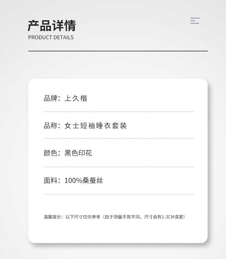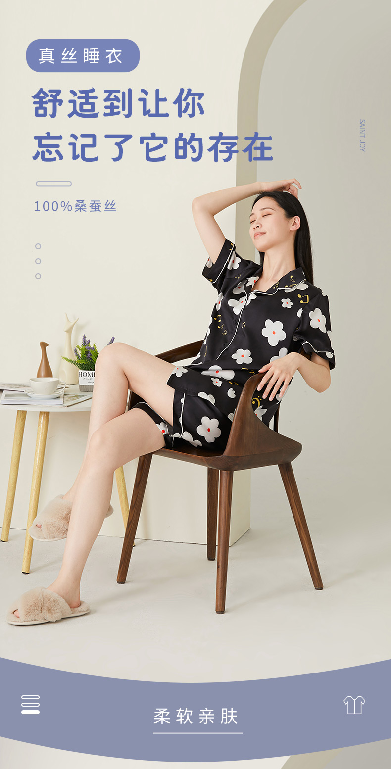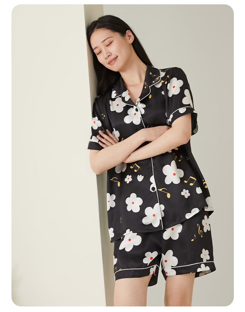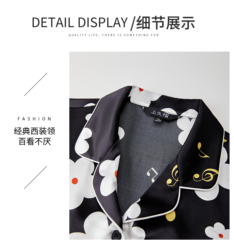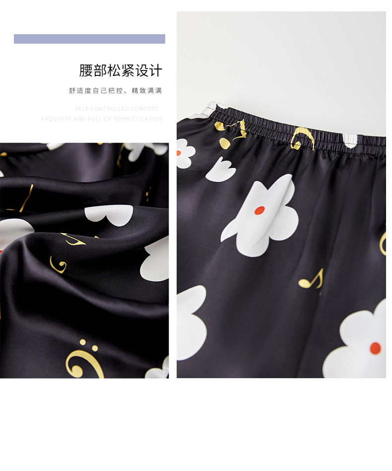 SAINTJOY/上久楷女式黑色印花短袖睡衣套装 JWS21009