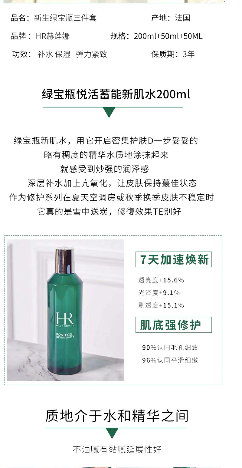 【YZ】HR赫莲娜绿宝瓶三件套新肌水200ml肌源修护精华50ml面霜50g