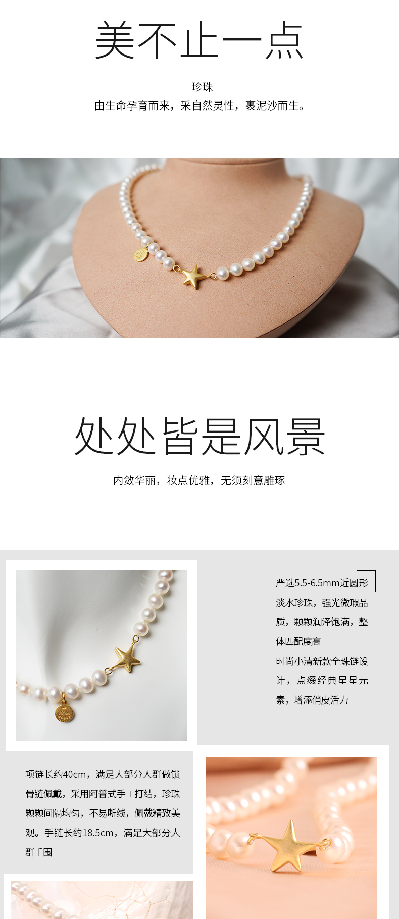 美裕 【星辰大海】淡水珍珠花样链105647+手链105649 5.5-6.5mm白